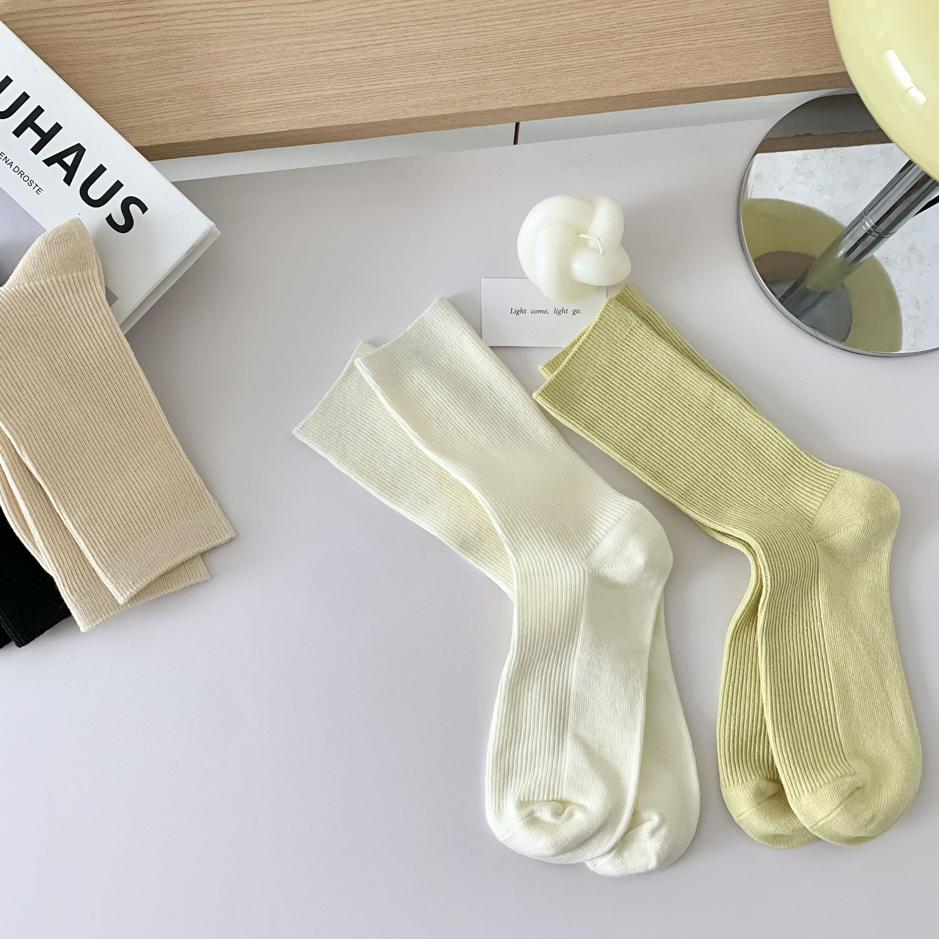 새로운 캔디 컬러 스택 양말 여성용 중간 길이 양말 세로 줄무늬 면 양말 한국 양말 스타일 더블 바늘 양말 여성용 양말스토어 가기