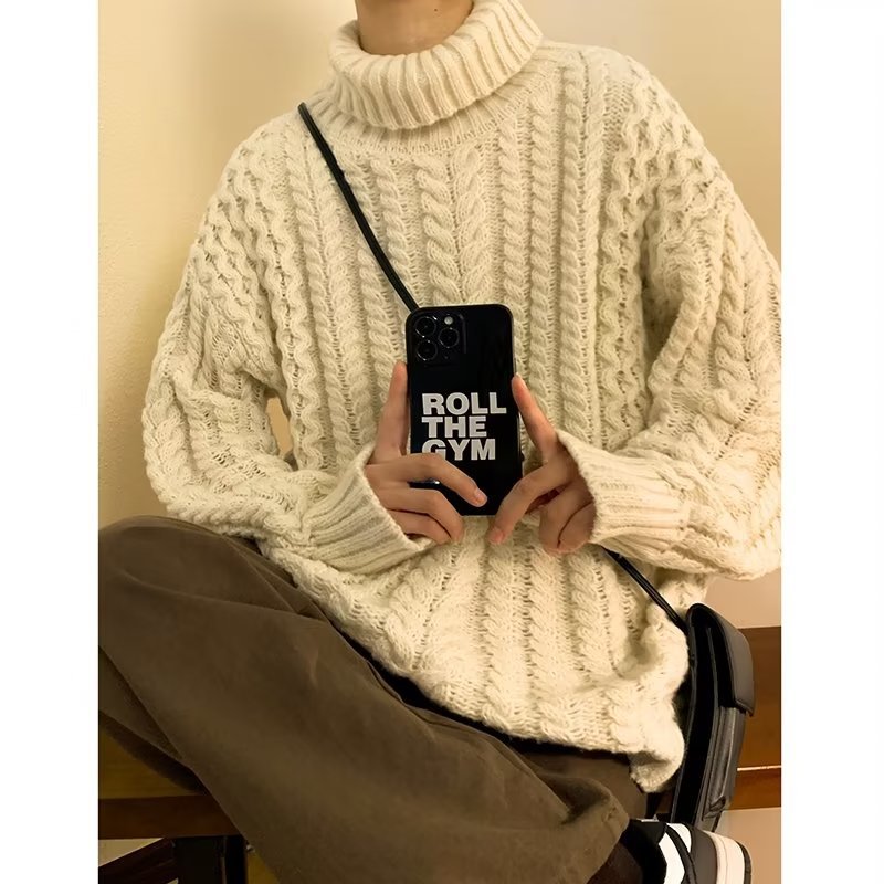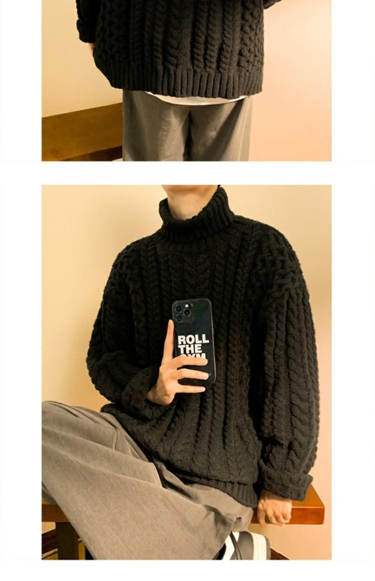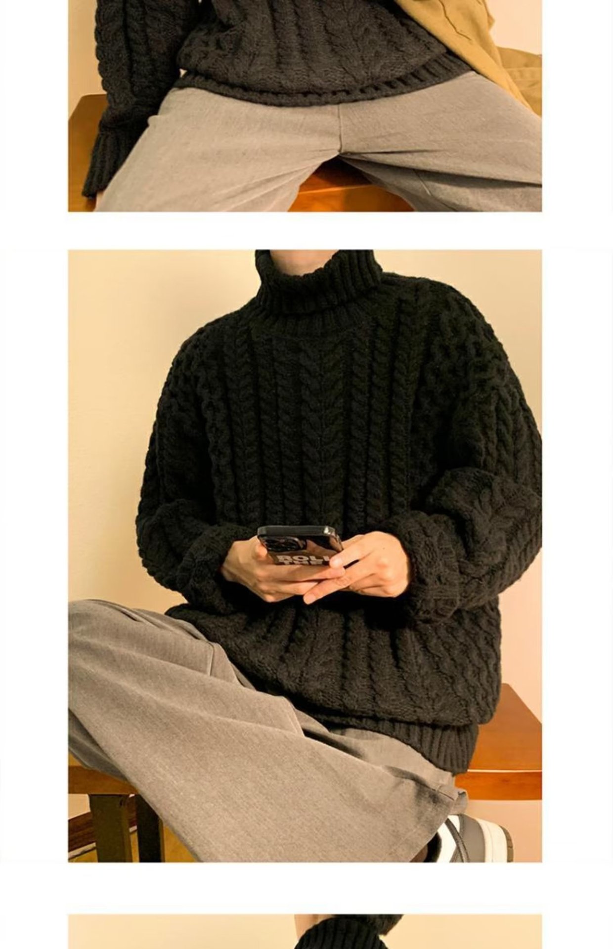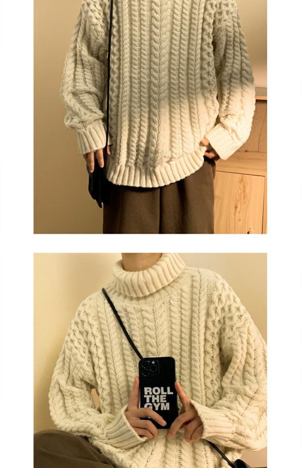가을과 겨울 새로운 복고풍 한국 스타일 다목적 하이 스트리트 라운드 넥 트위스트 스웨터 남성 고급 게으른 스타일 니트 탑