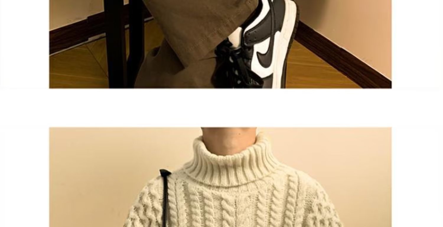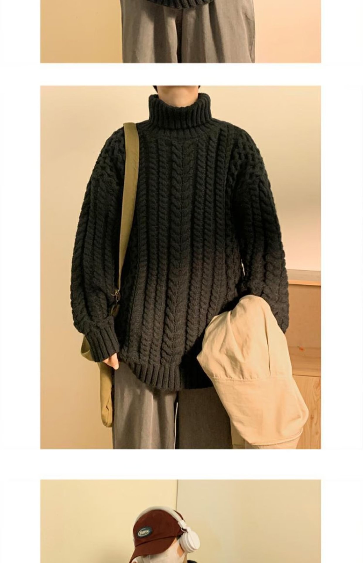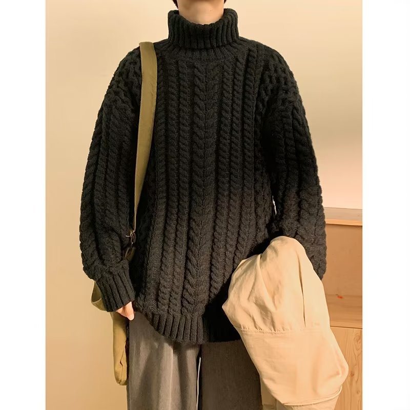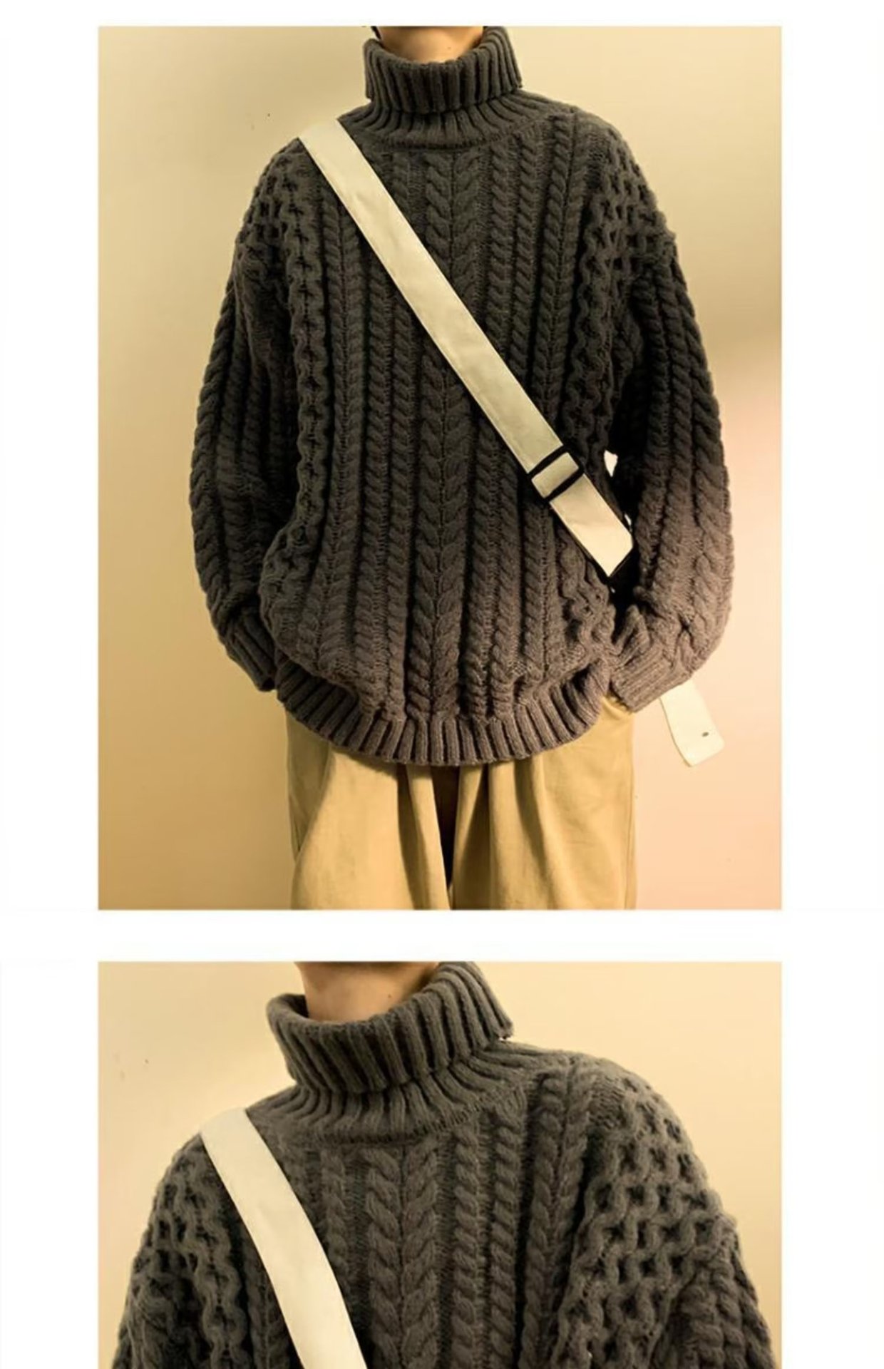 가을과 겨울 새로운 복고풍 한국 스타일 다목적 하이 스트리트 라운드 넥 트위스트 스웨터 남성 고급 게으른 스타일 니트 탑