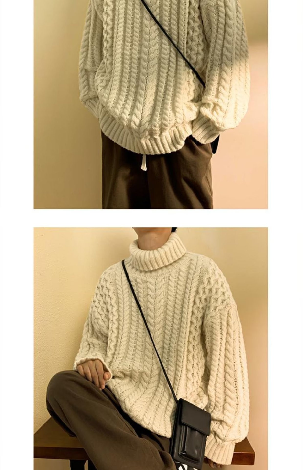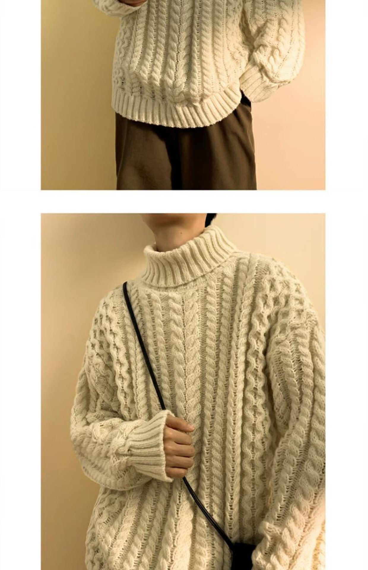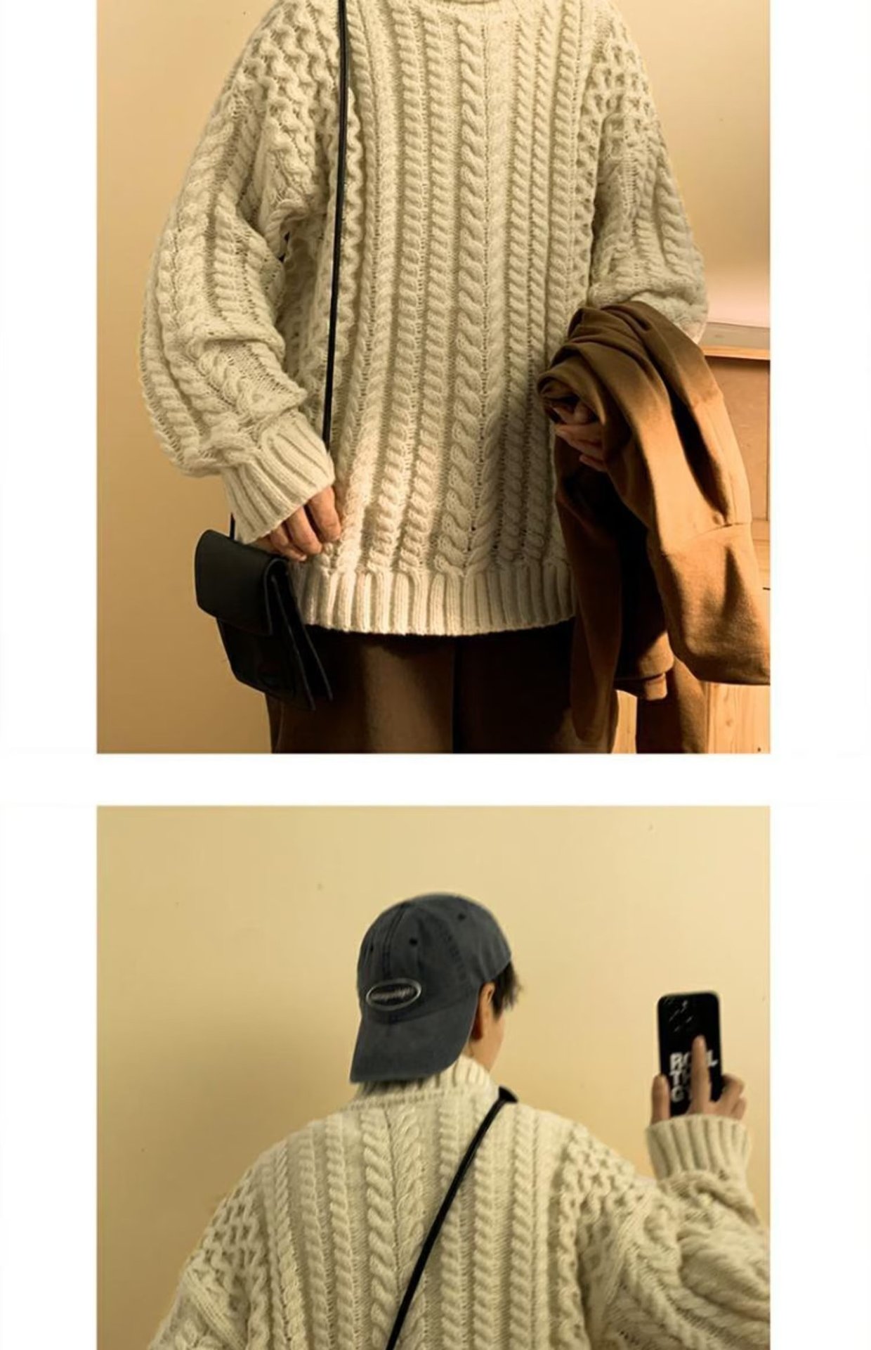 가을과 겨울 새로운 복고풍 한국 스타일 다목적 하이 스트리트 라운드 넥 트위스트 스웨터 남성 고급 게으른 스타일 니트 탑스토어 가기