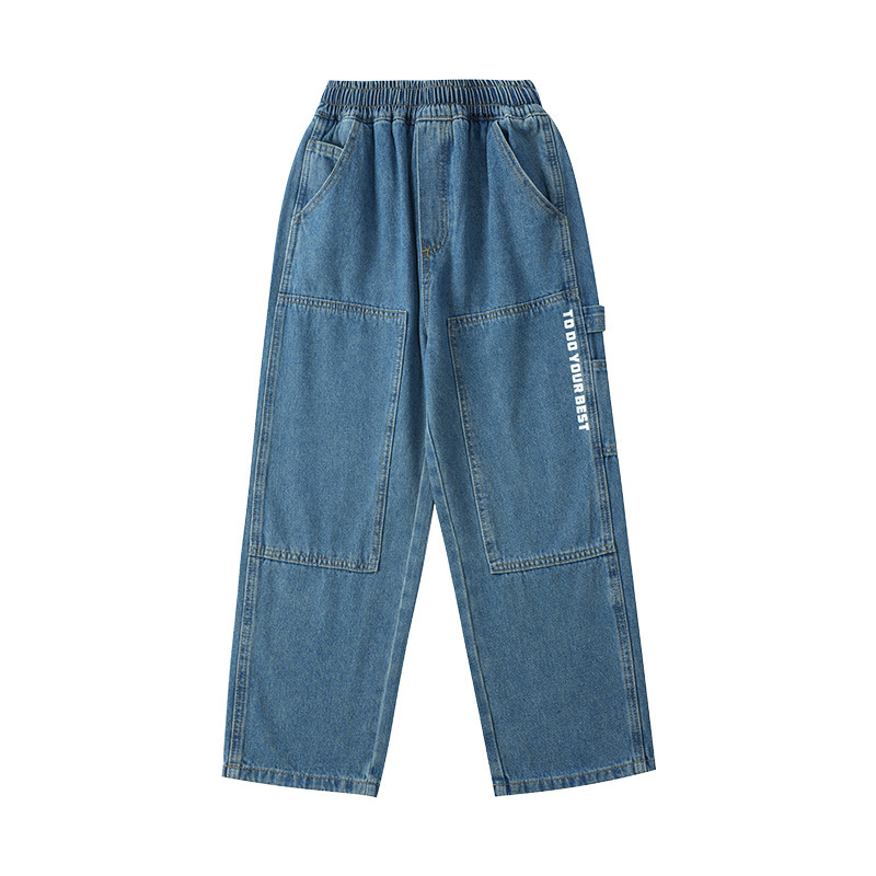 DK 아동복 봄과 가을을 착용 한 소녀와 소년 청바지 트렌디 시원하고 잘 생긴 큰 어린이 느슨한 토르 바지 바지 바지