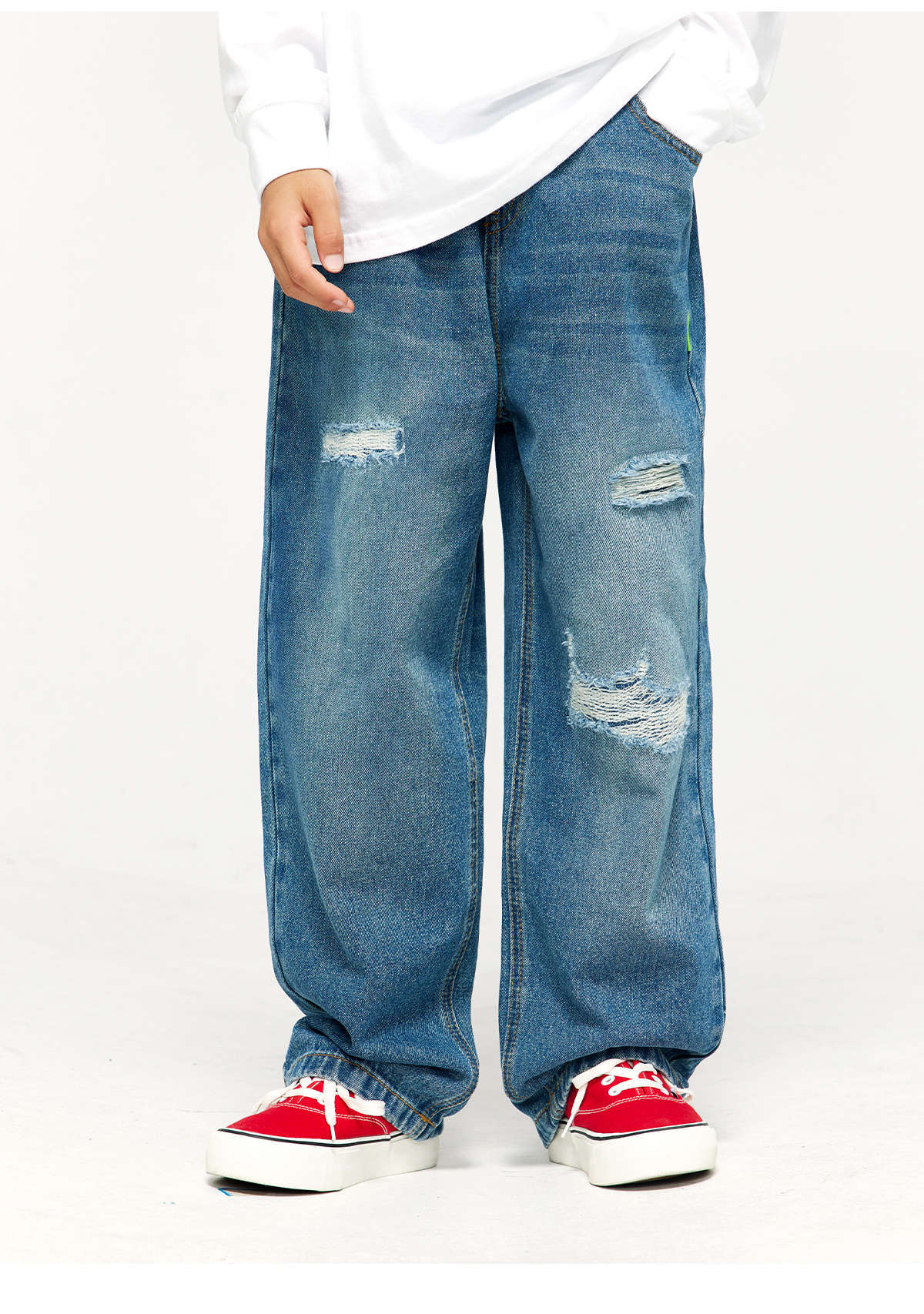 DK 아동복 봄과 가을을 착용 한 소녀와 소년 청바지 트렌디 시원하고 잘 생긴 큰 어린이 느슨한 토르 바지 바지 바지스토어 가기