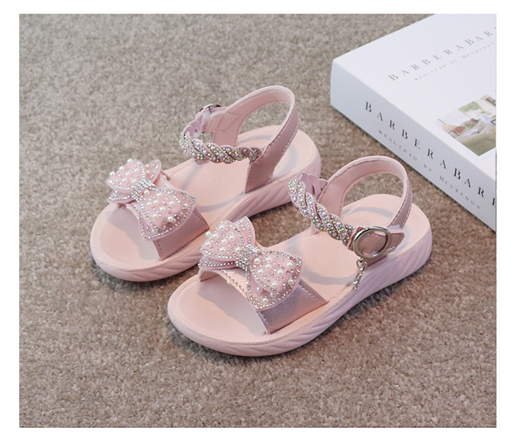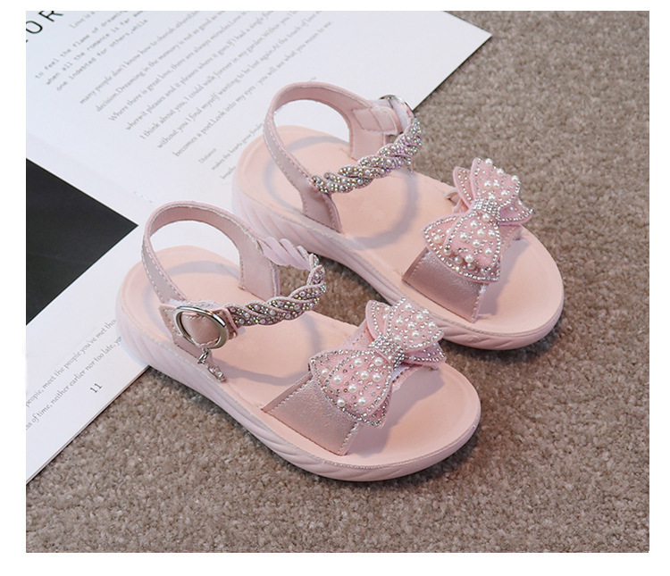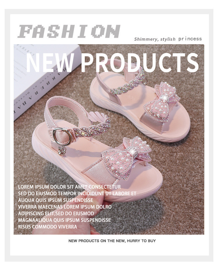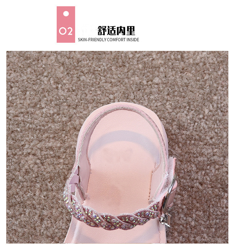 여자 샌들 2025 여름 새로운 공주 신발 라인 석 활 중형 및 대형 어린이 해변 신발 어린 소녀 부드러운 바닥
