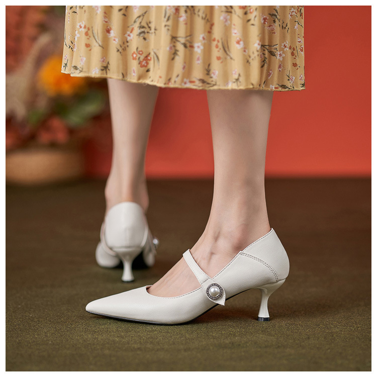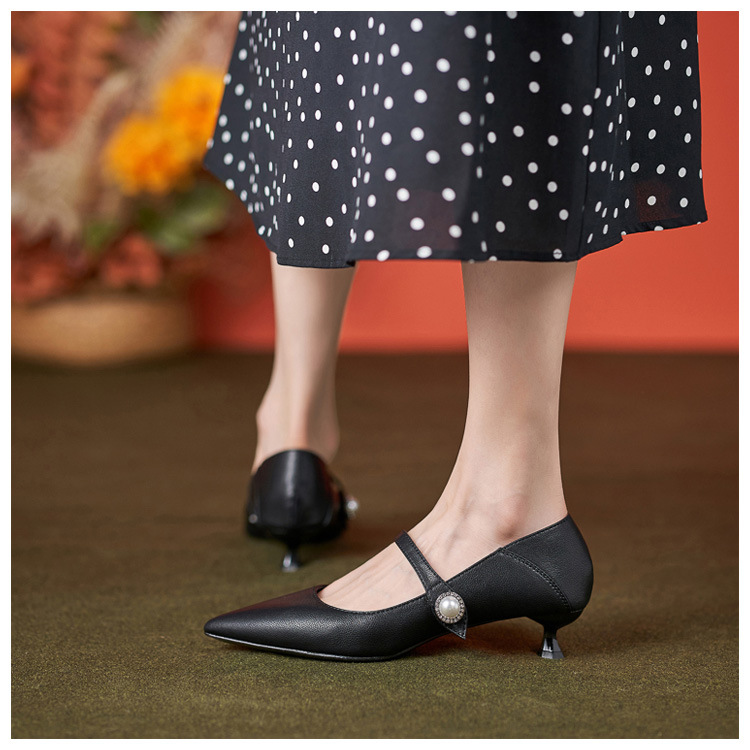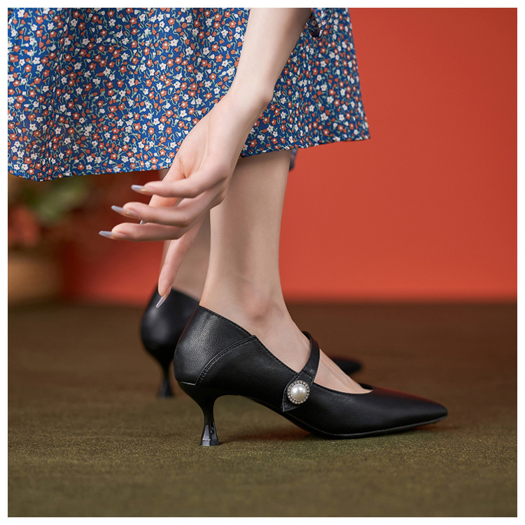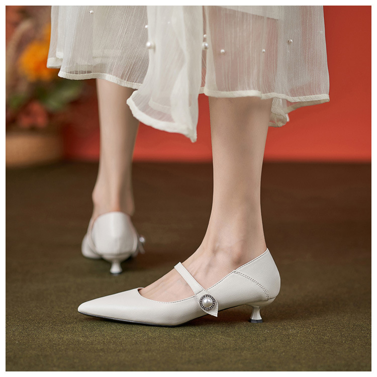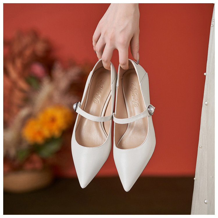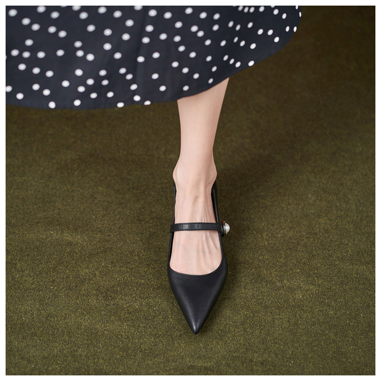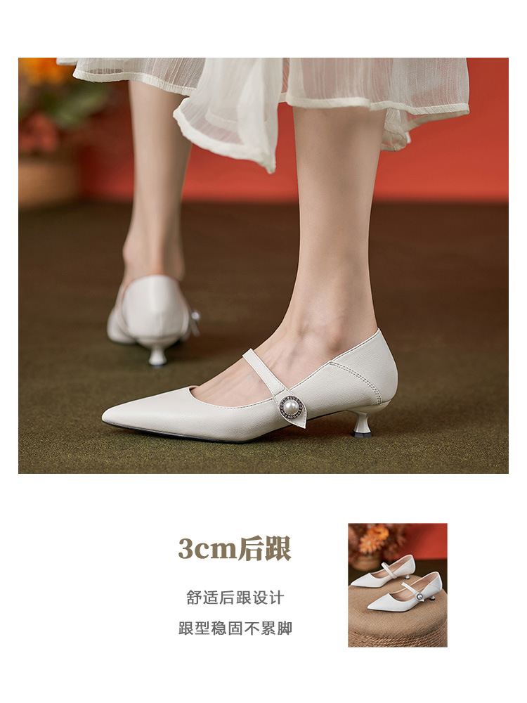 기질 사교계 명사 하이힐 여성 작은 사이즈 313233 부드러운 가죽 진주 로우힐 싱글 슈즈 여성 대형 사이즈 41 ~ 43스토어 가기