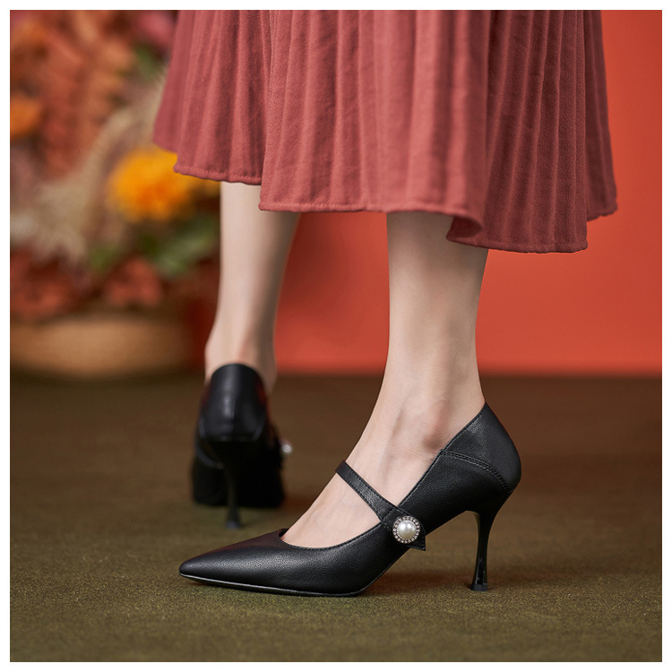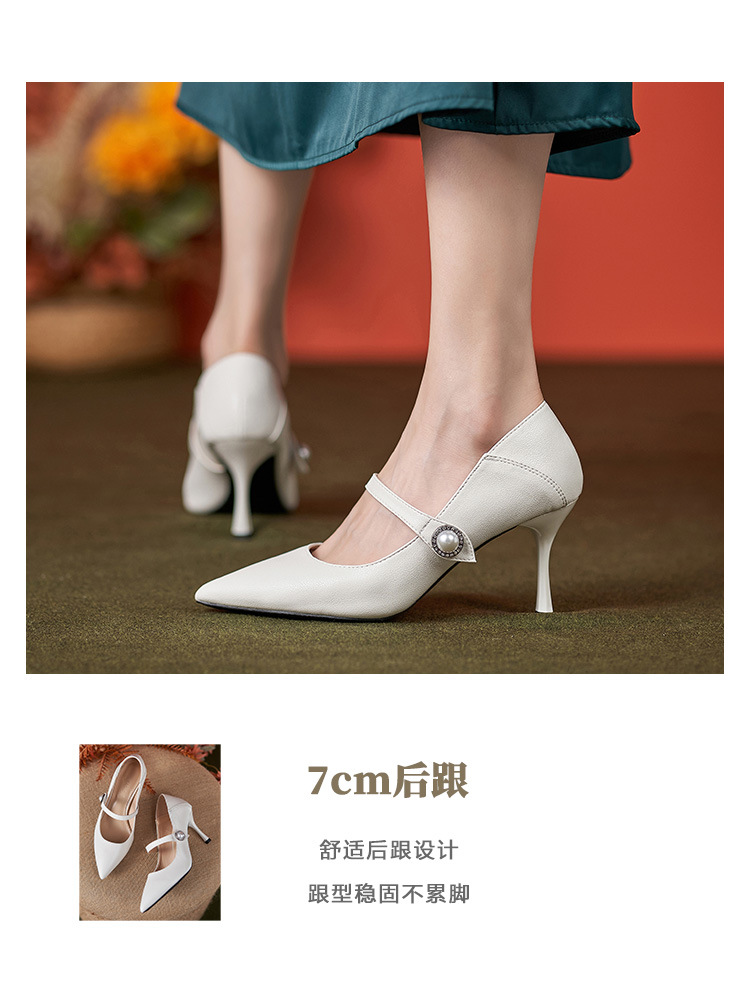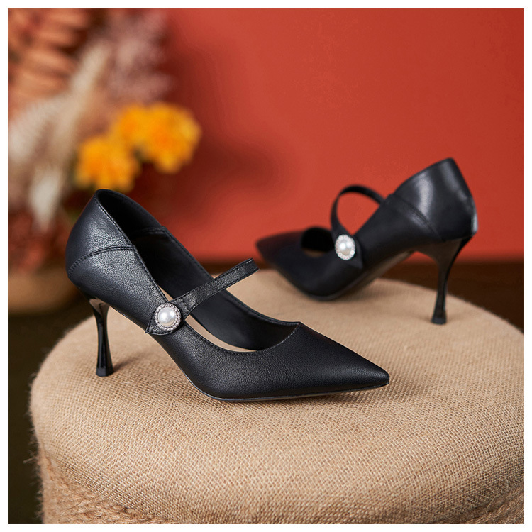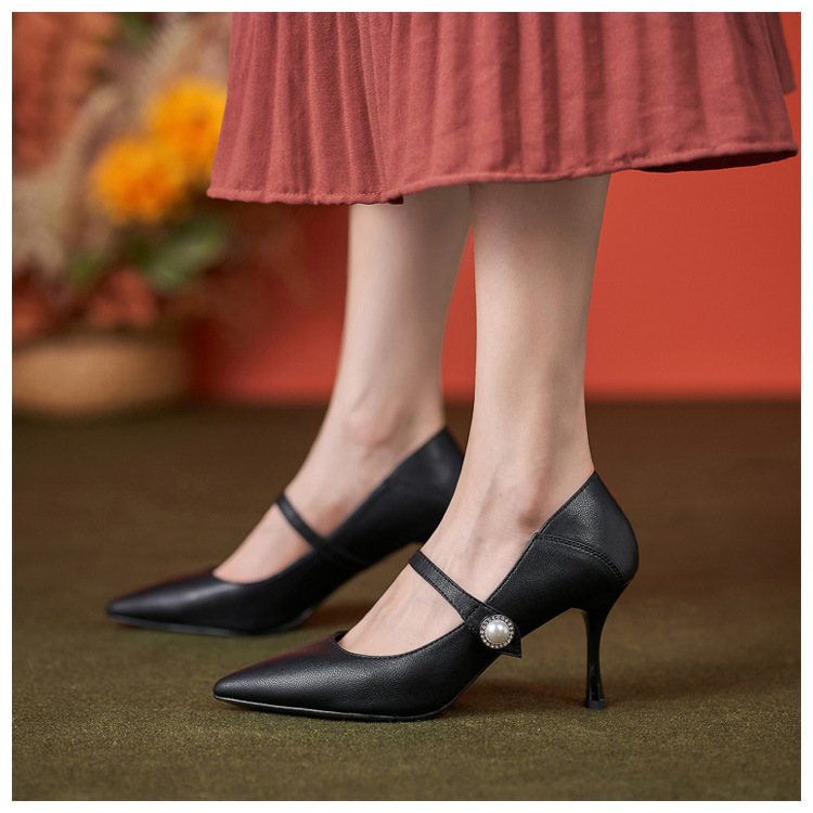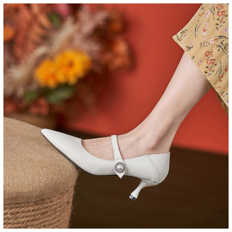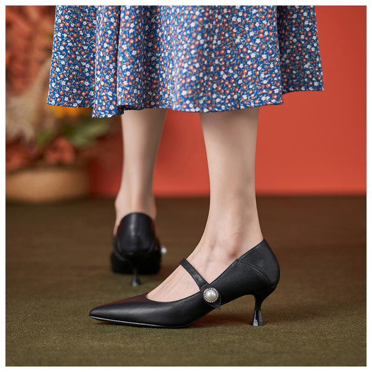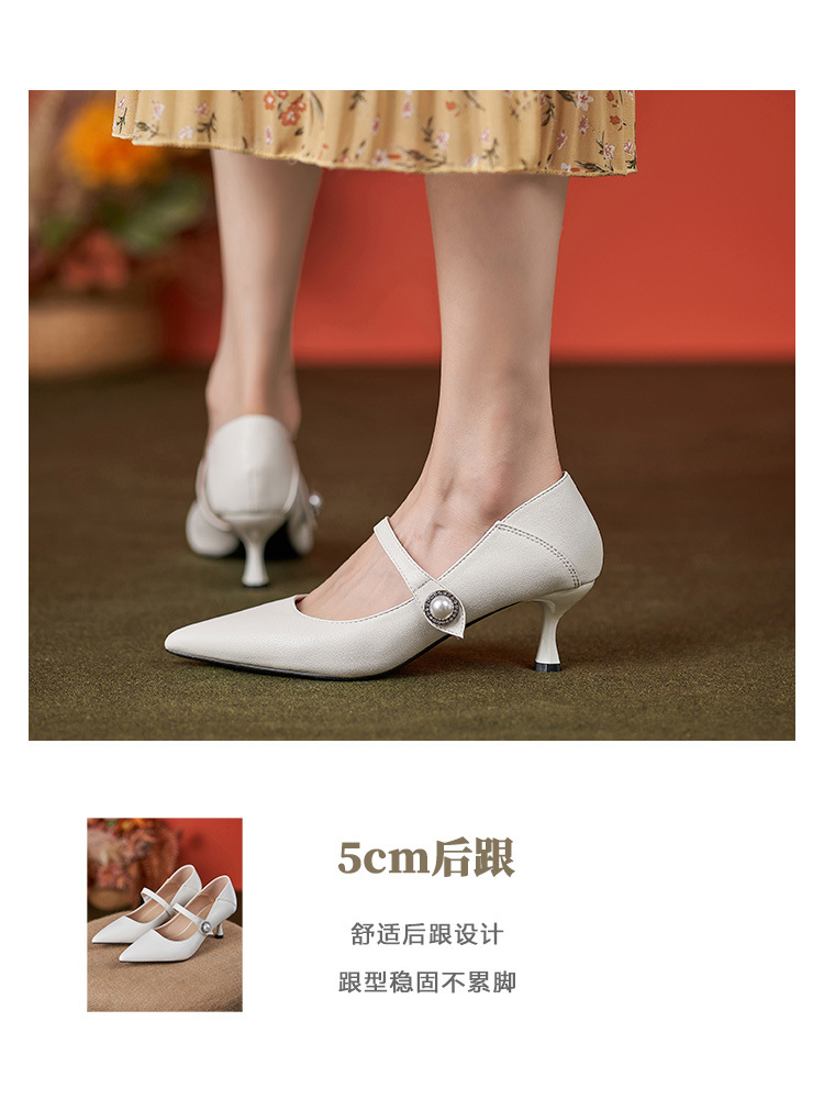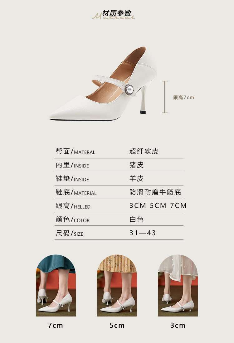 기질 사교계 명사 하이힐 여성 작은 사이즈 313233 부드러운 가죽 진주 로우힐 싱글 슈즈 여성 대형 사이즈 41 ~ 43스토어 가기