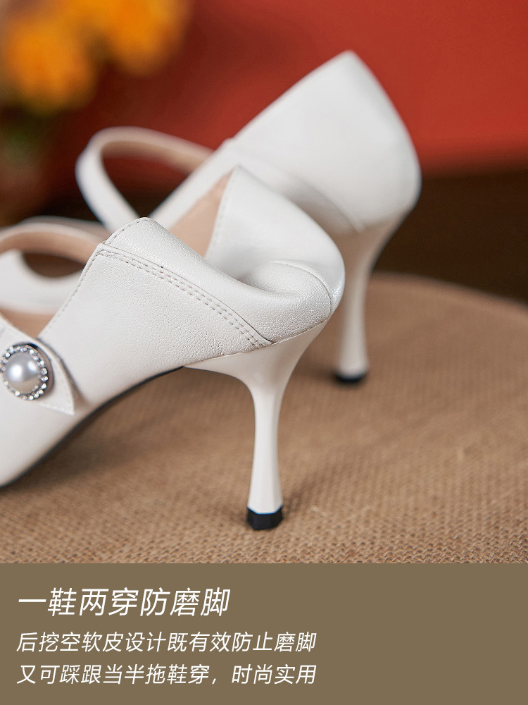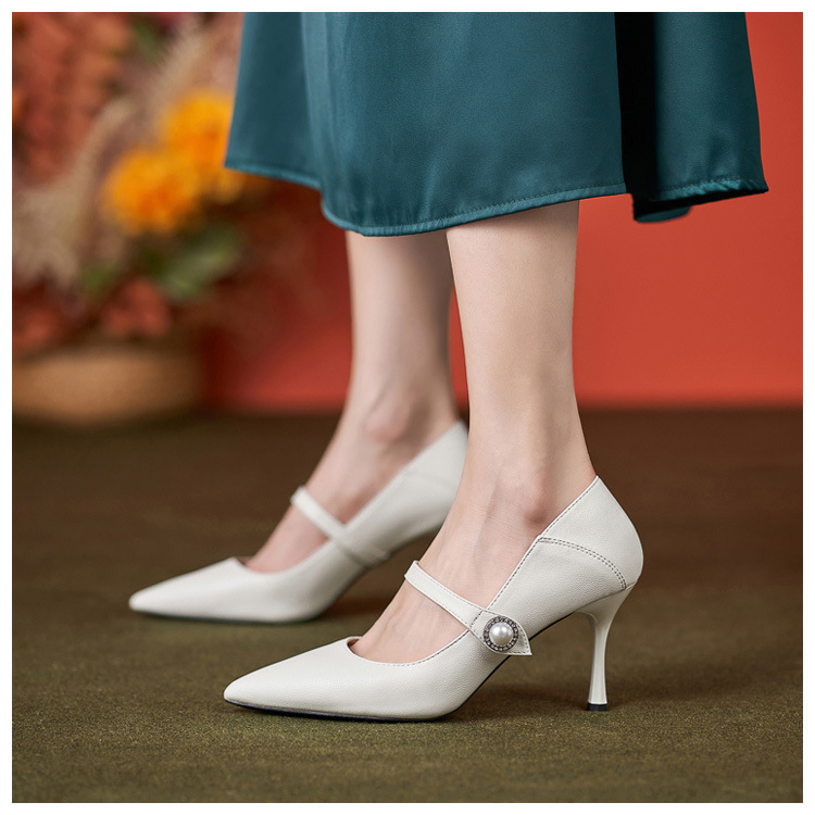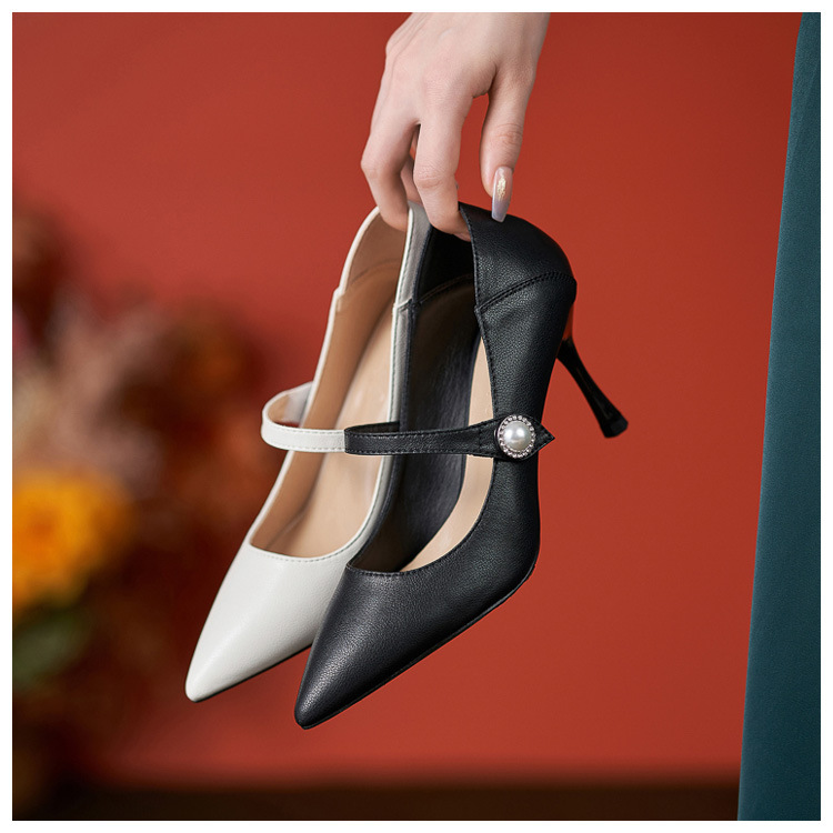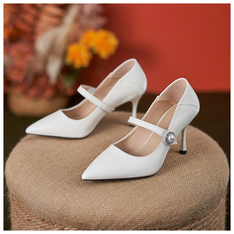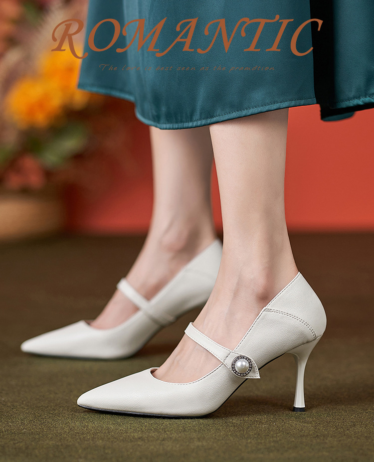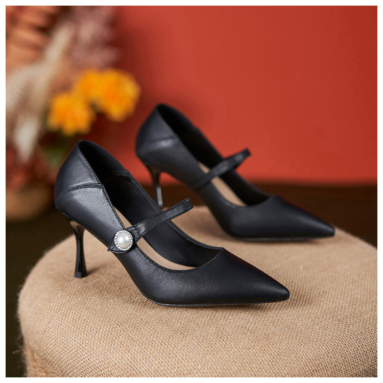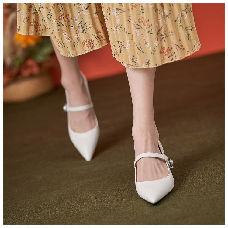 기질 사교계 명사 하이힐 여성 작은 사이즈 313233 부드러운 가죽 진주 로우힐 싱글 슈즈 여성 대형 사이즈 41 ~ 43스토어 가기