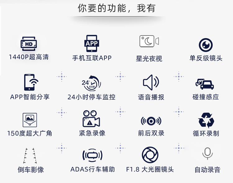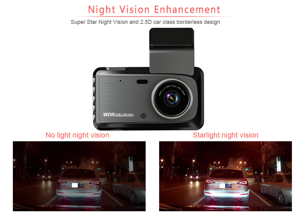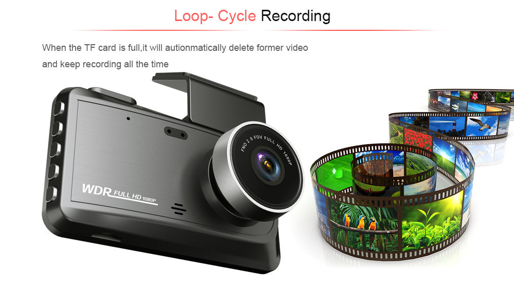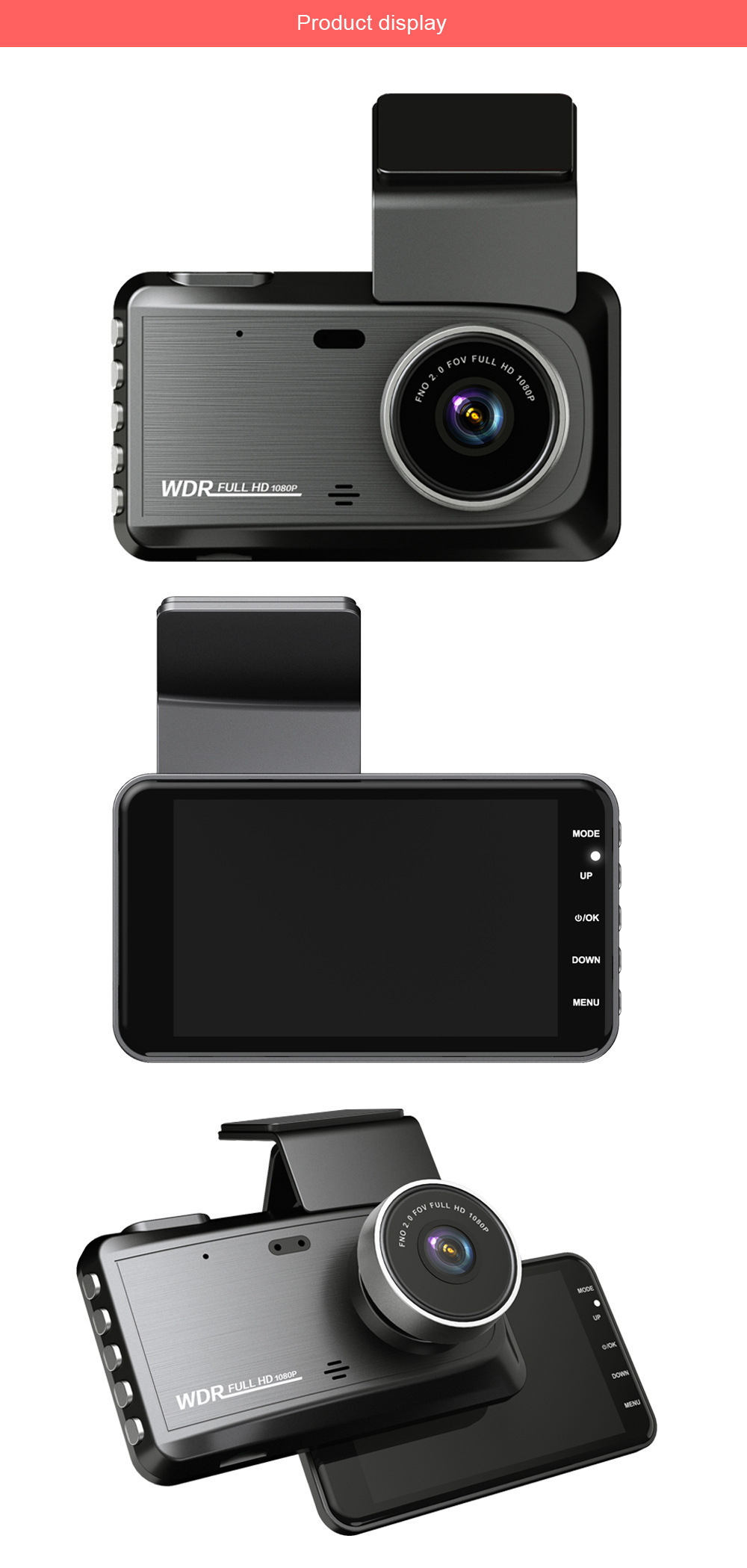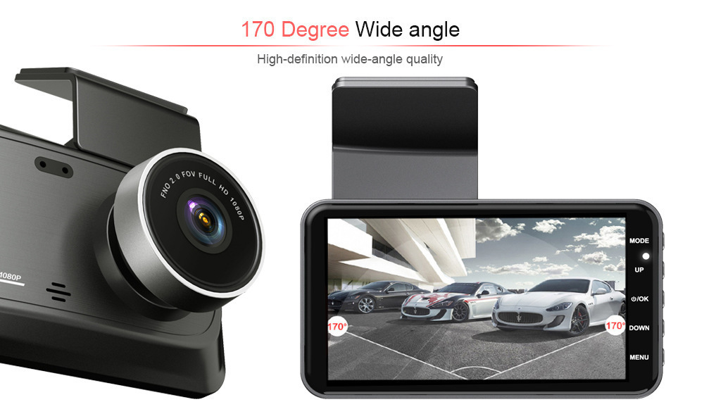 4 인치 터치 스크린 듀얼 렌즈 휴대폰 상호 연결 1080p HD 24 시간 주차 모니터링 WIFI 운전 레코더