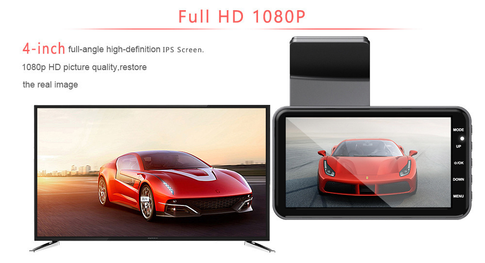 4 인치 터치 스크린 듀얼 렌즈 휴대폰 상호 연결 1080p HD 24 시간 주차 모니터링 WIFI 운전 레코더스토어 가기