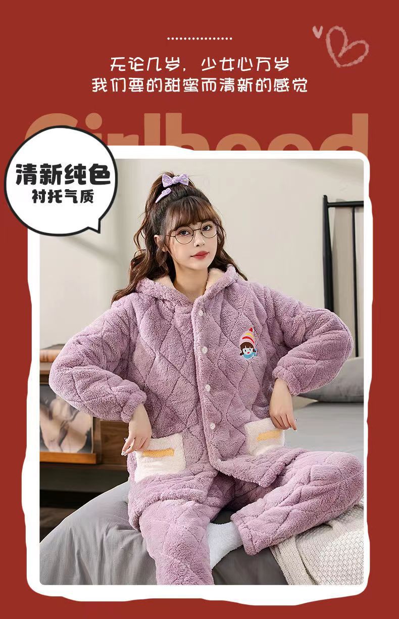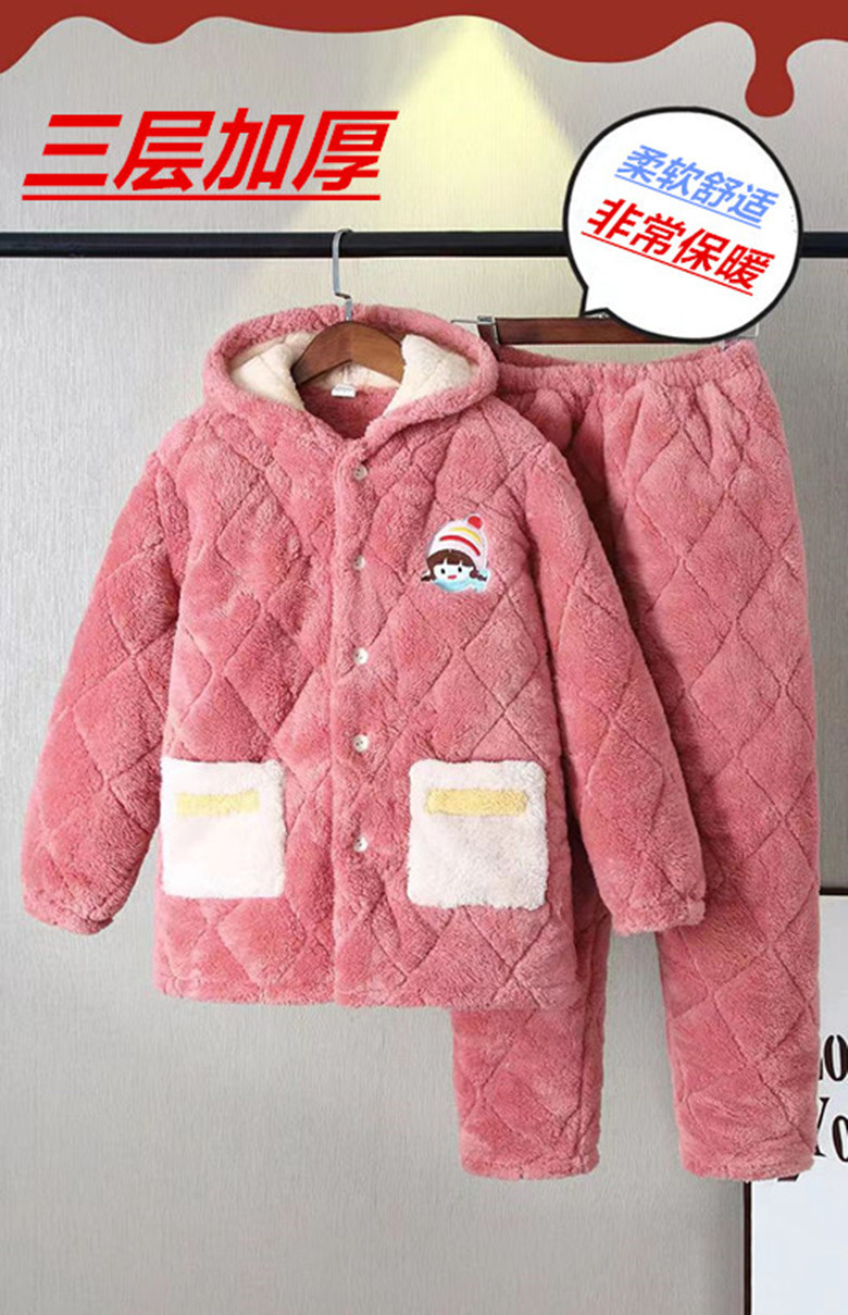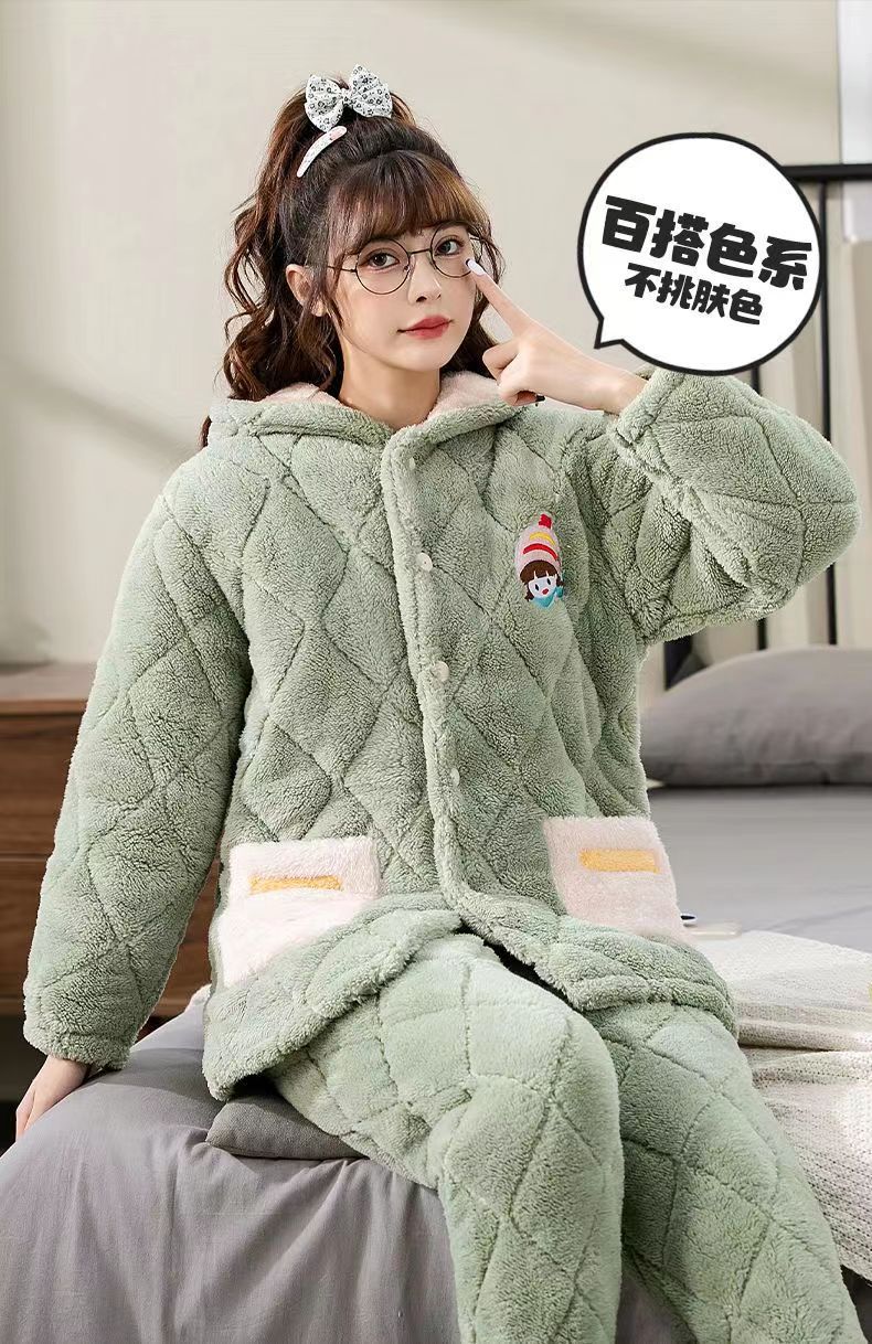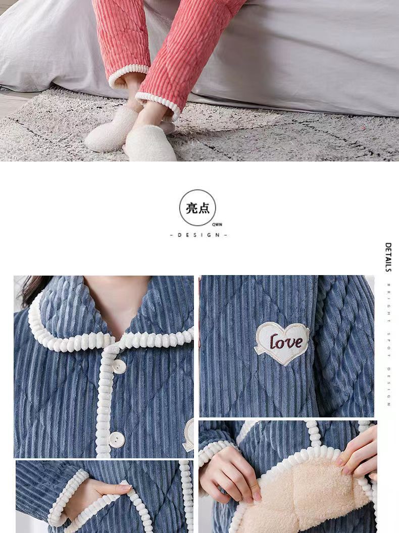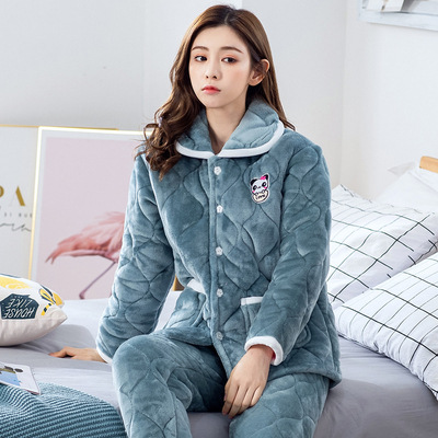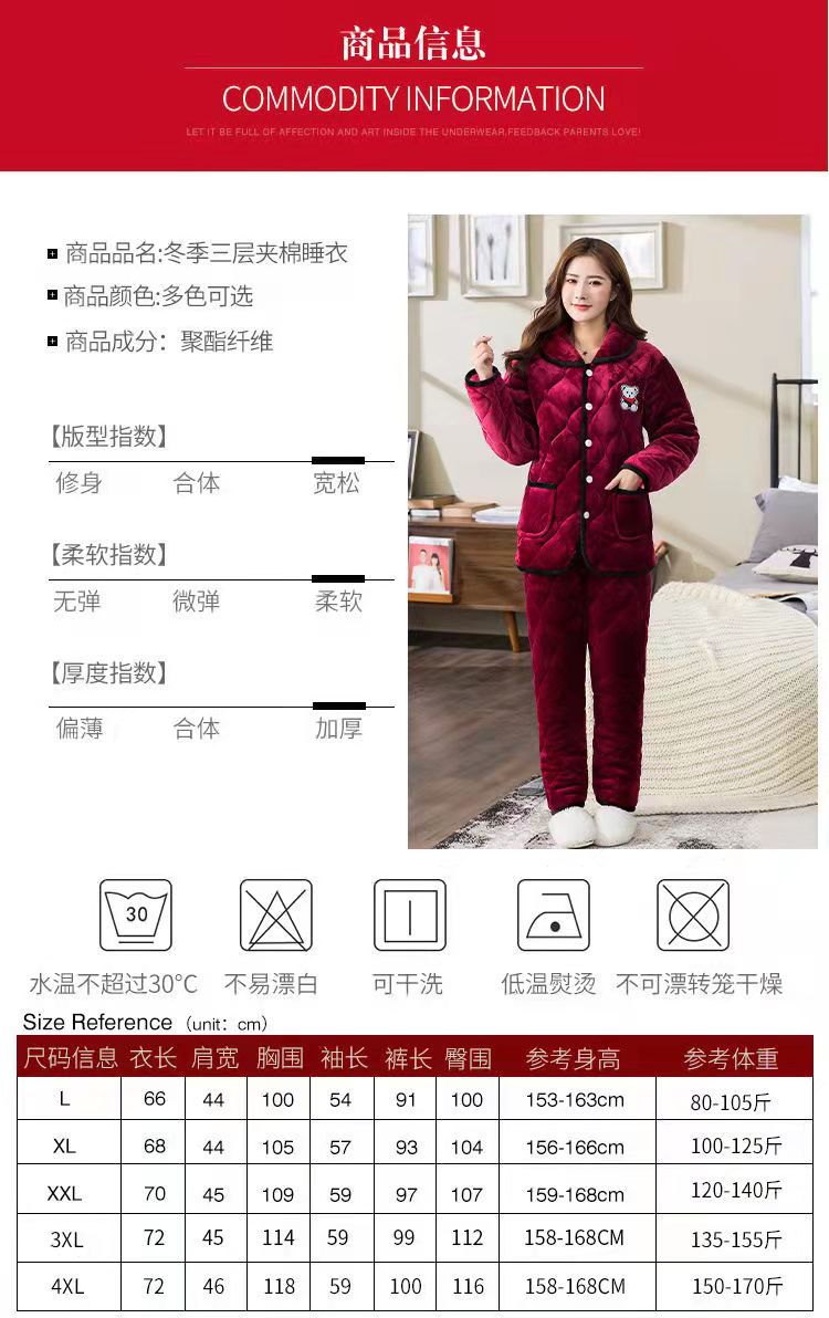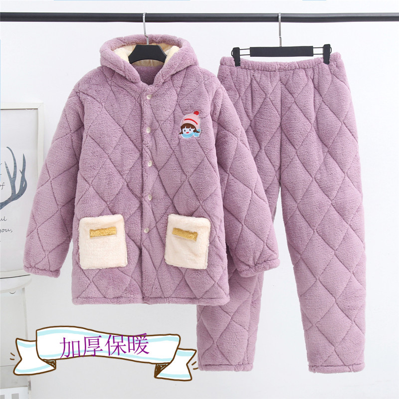 겨울 잠옷 여성용 중년 및 노년층용 플란넬 세트 3중 홈웨어 외출용 두꺼운 보온 코튼 자켓스토어 가기