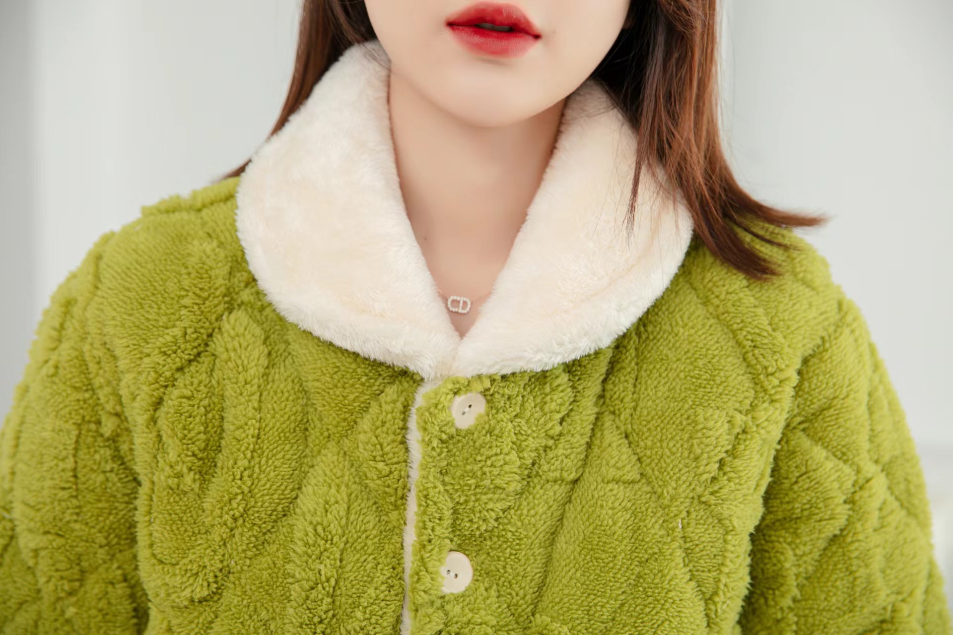 겨울 잠옷 여성용 중년 및 노년층용 플란넬 세트 3중 홈웨어 외출용 두꺼운 보온 코튼 자켓