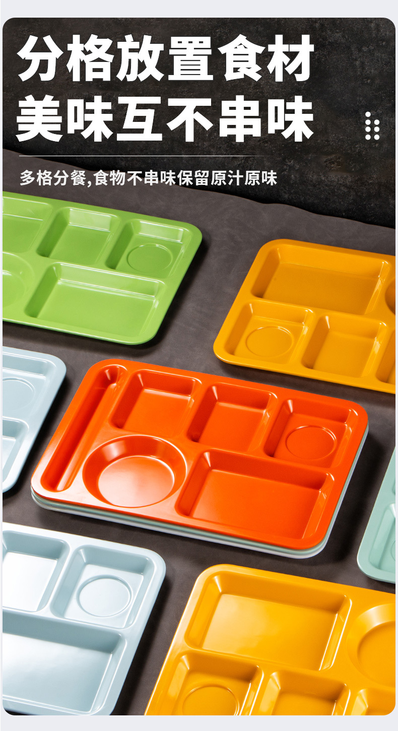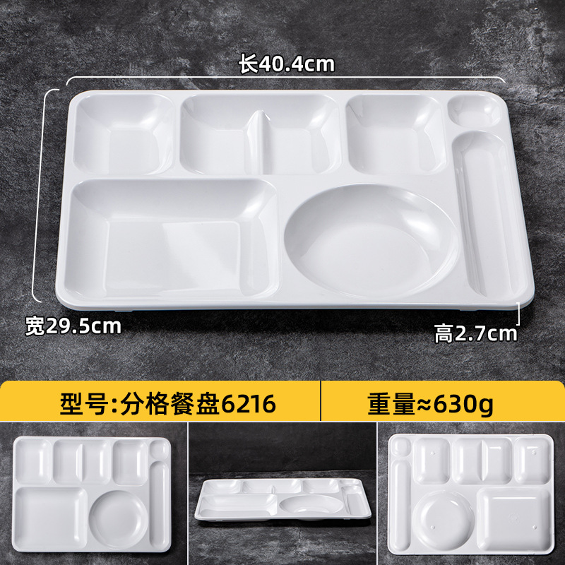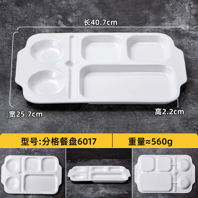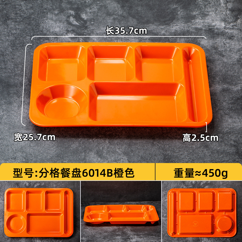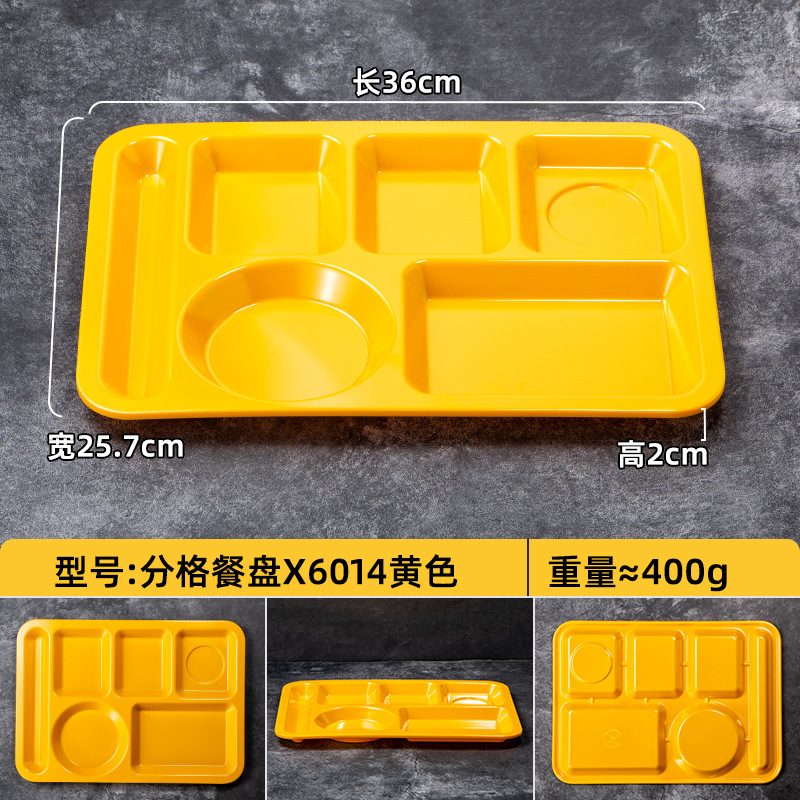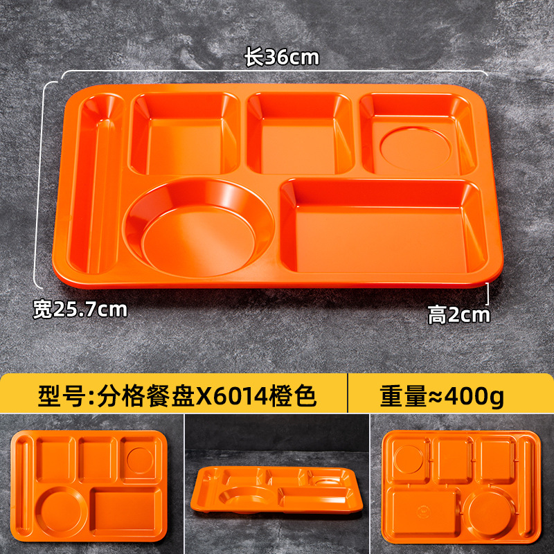 멜라민 분할 디너 플레이트 상업용 식품 등급 플라스틱 6칸 패스트 푸드 플레이트 기업 학교 직원 매점 멀티 그리드 디너 플레이트