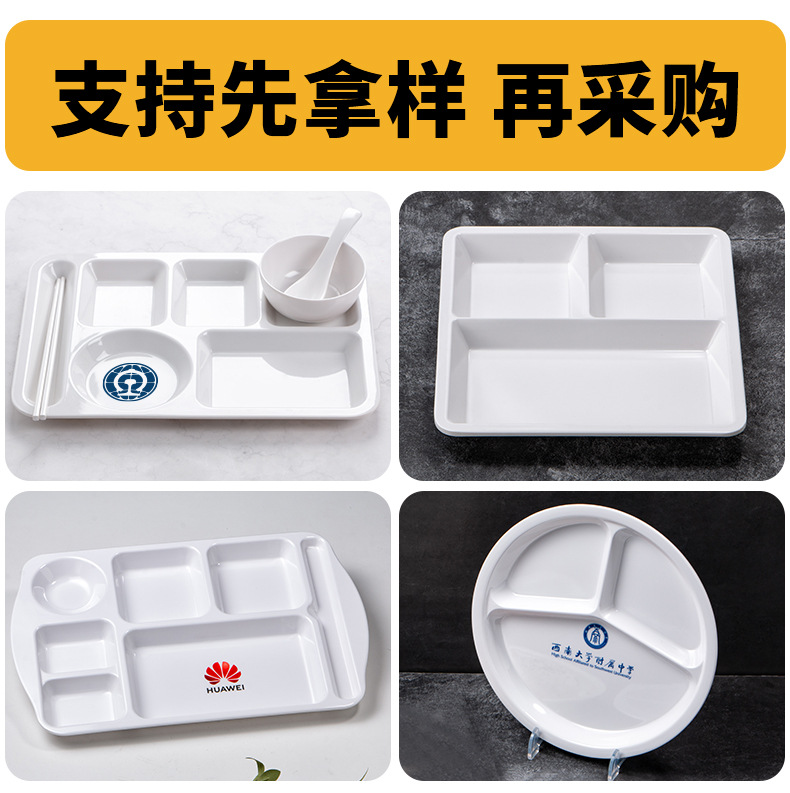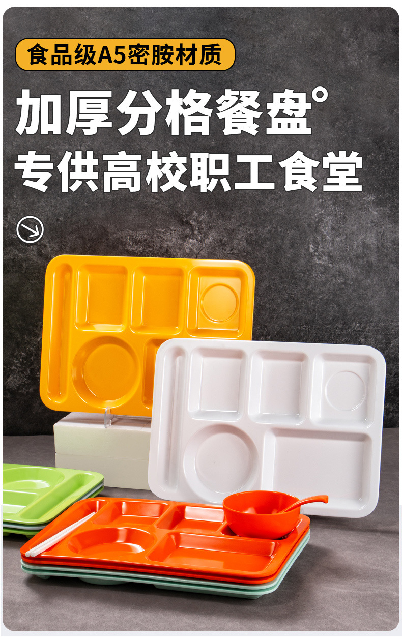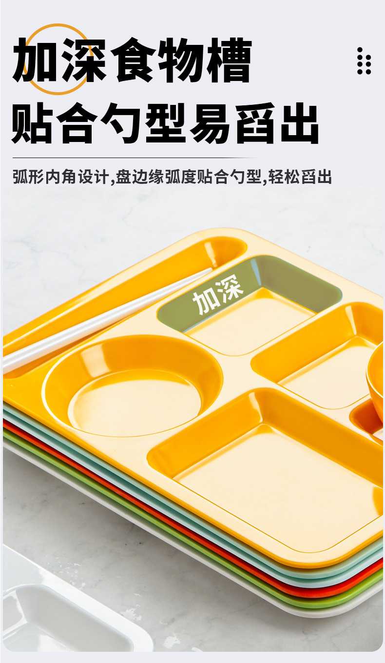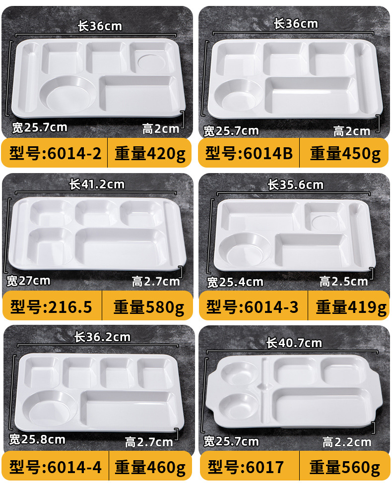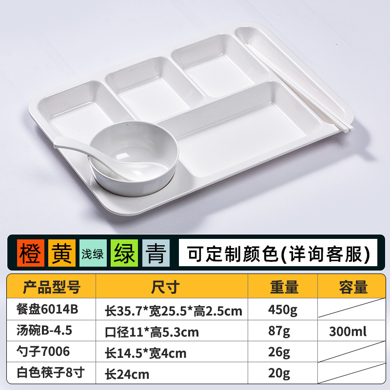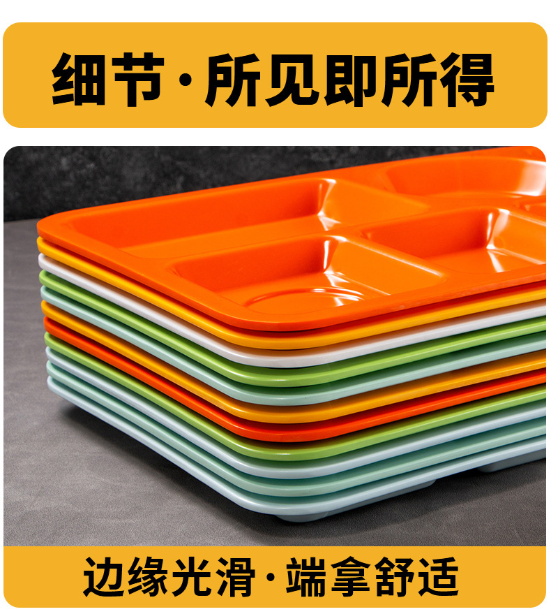 멜라민 분할 디너 플레이트 상업용 식품 등급 플라스틱 6칸 패스트 푸드 플레이트 기업 학교 직원 매점 멀티 그리드 디너 플레이트