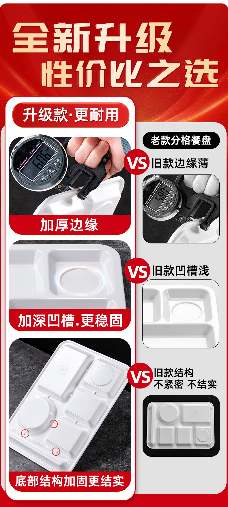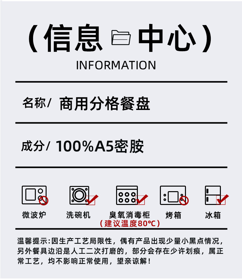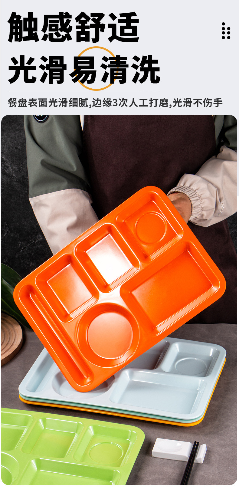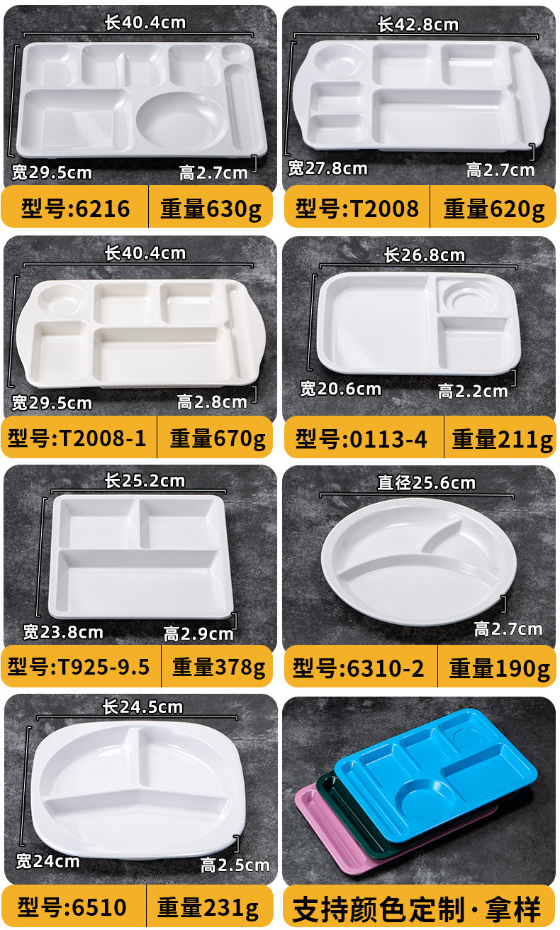 멜라민 분할 디너 플레이트 상업용 식품 등급 플라스틱 6칸 패스트 푸드 플레이트 기업 학교 직원 매점 멀티 그리드 디너 플레이트