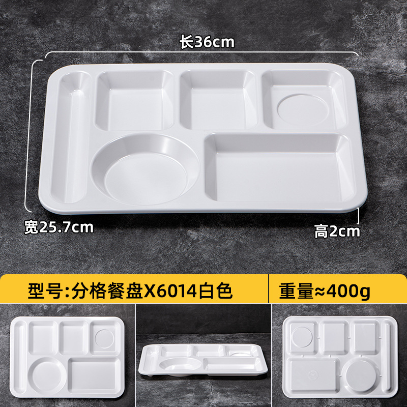 멜라민 분할 디너 플레이트 상업용 식품 등급 플라스틱 6칸 패스트 푸드 플레이트 기업 학교 직원 매점 멀티 그리드 디너 플레이트스토어 가기