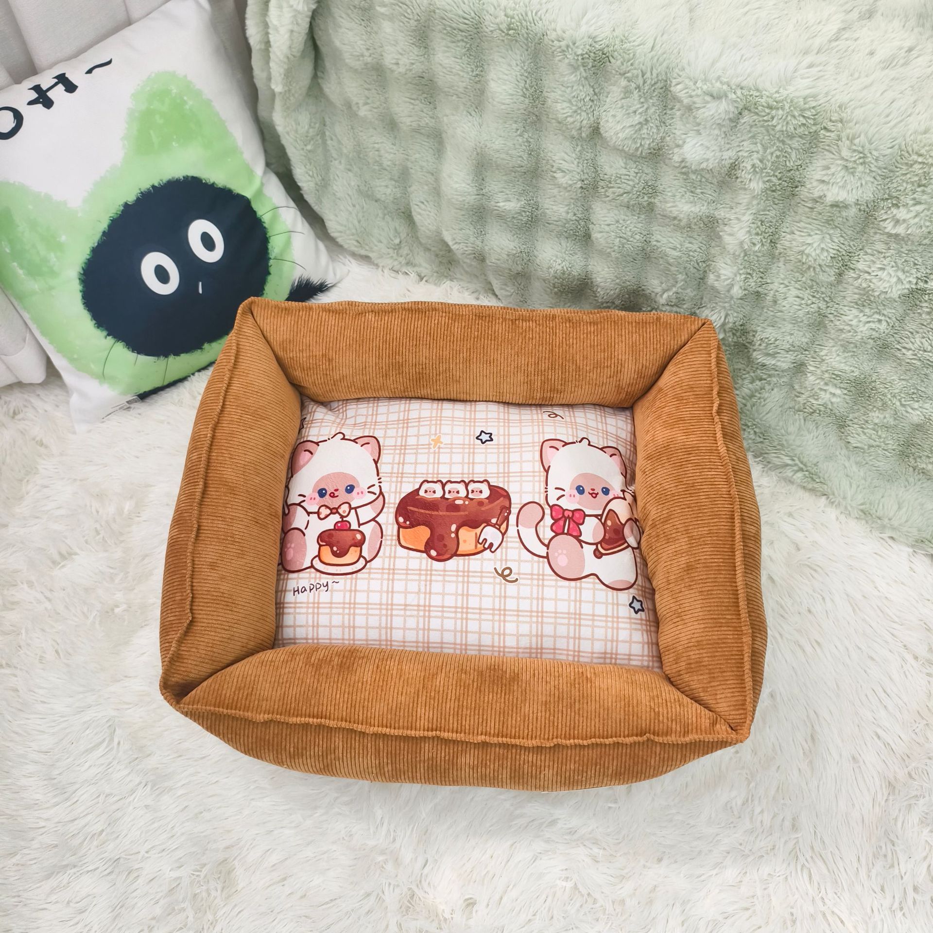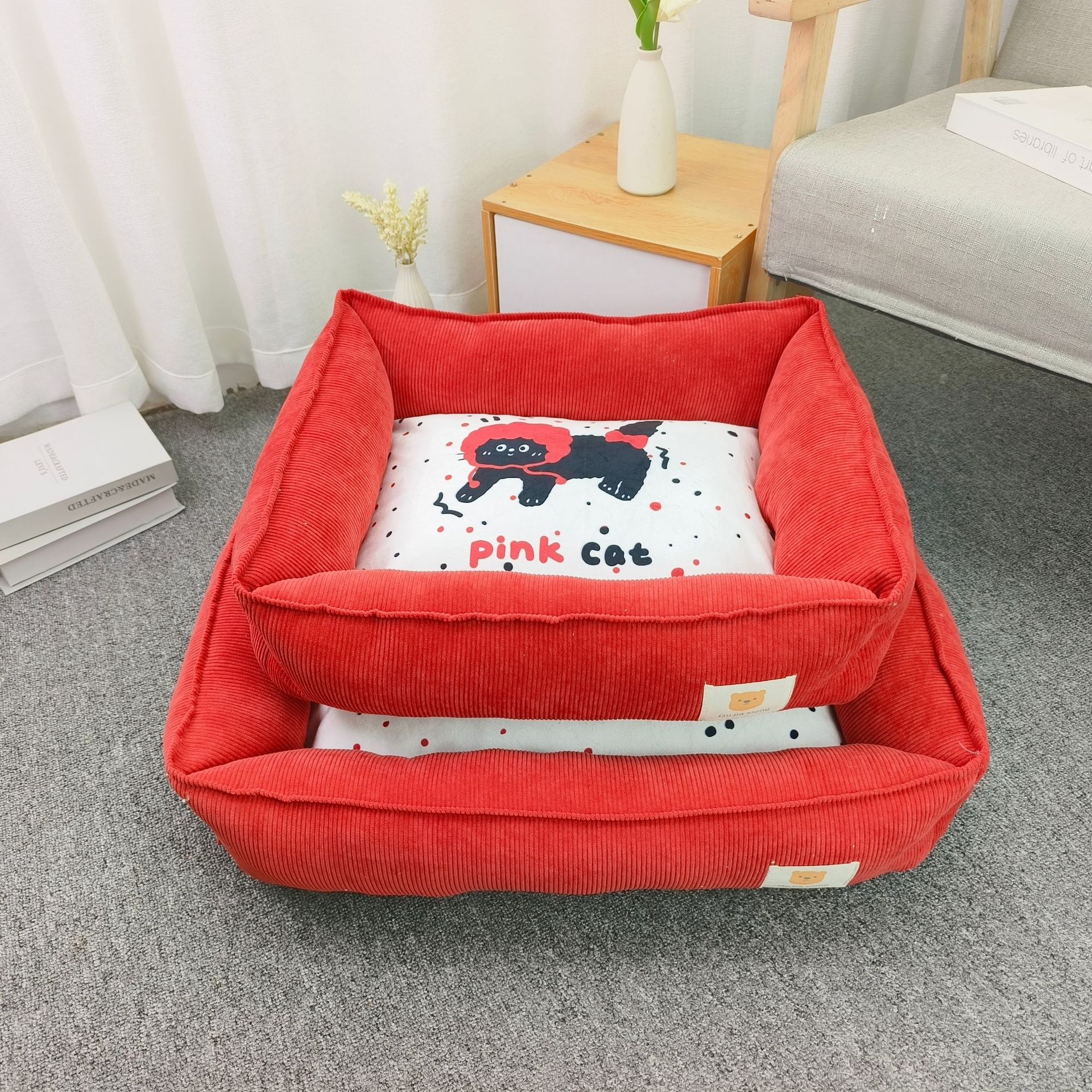 Ins 바람 직물 애완 동물 둥지 인쇄 사각형 고양이와 개 면화 둥지 매트리스 겨울 따뜻한 사계절 유니버설 공장 배치