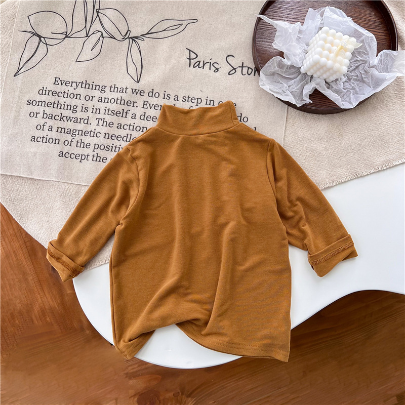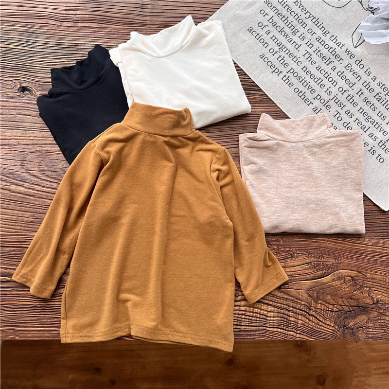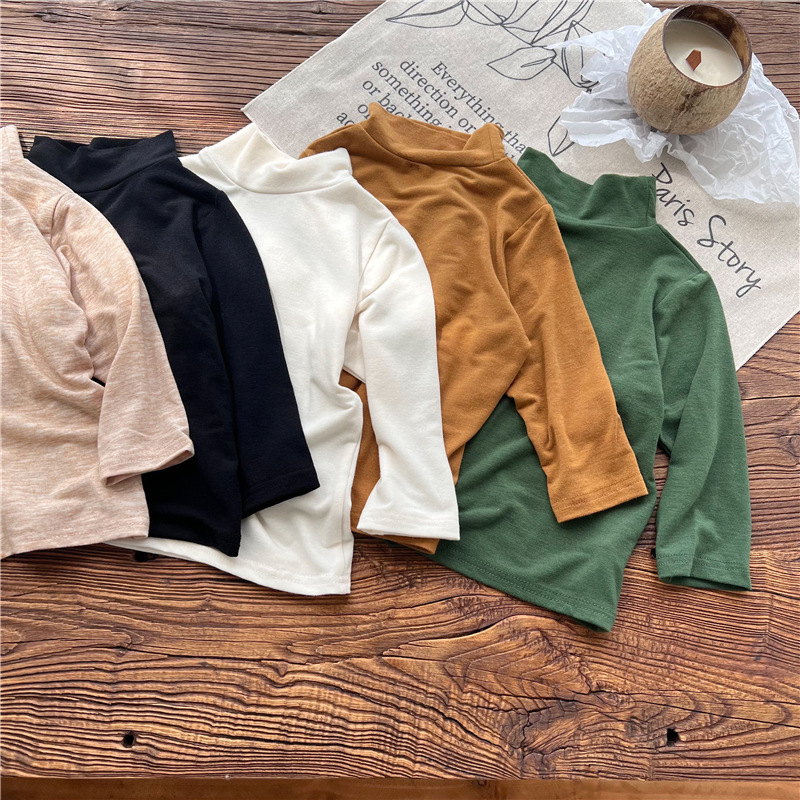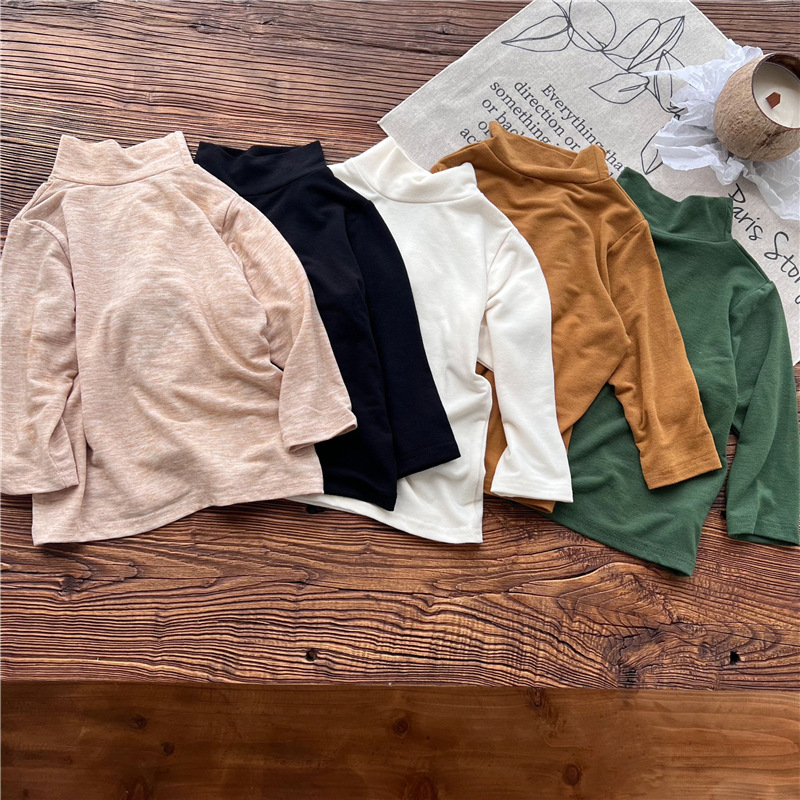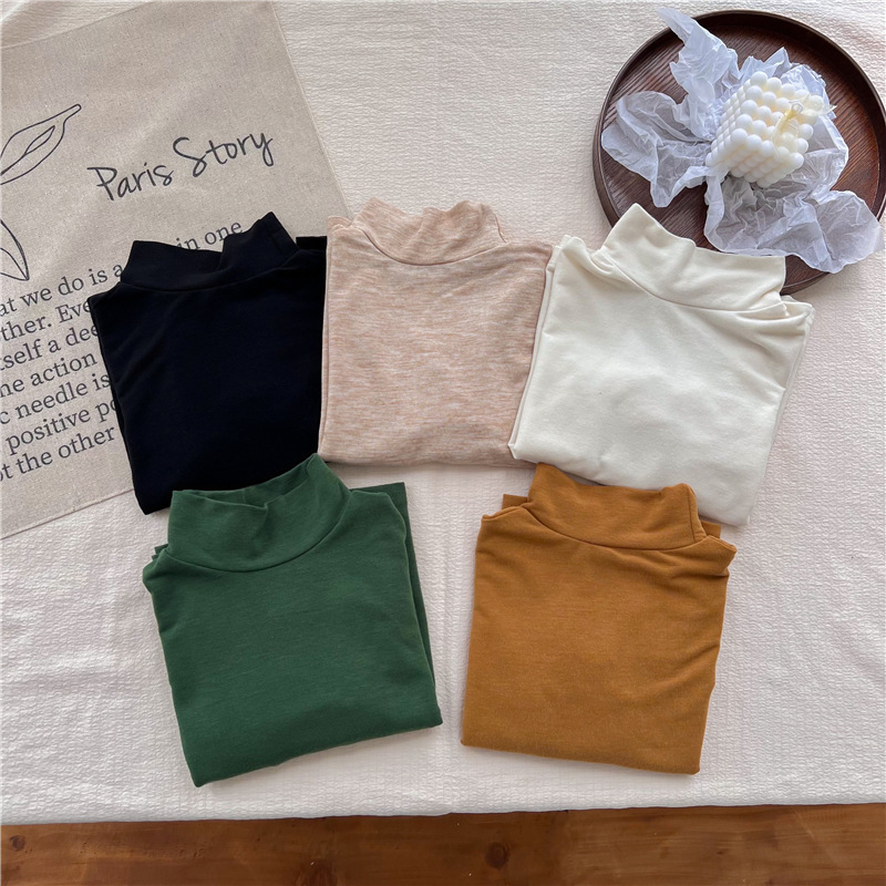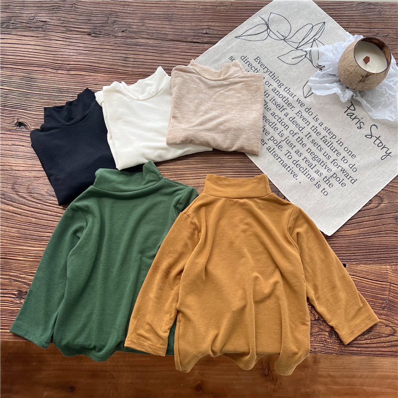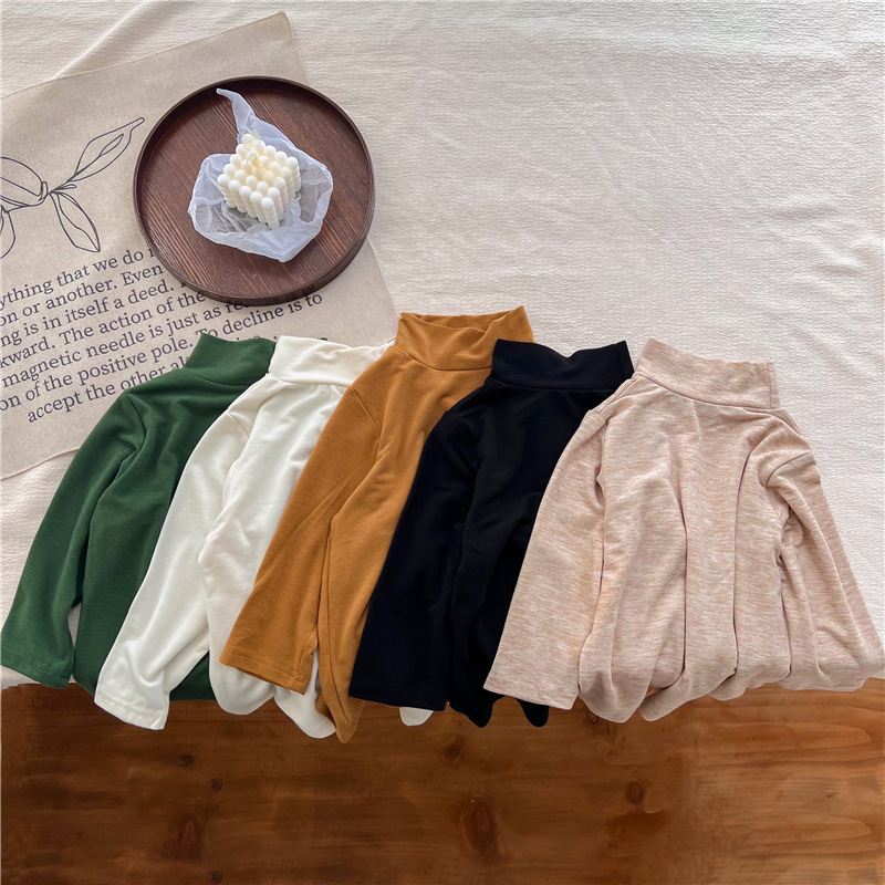 2023 소녀의 고탄력 느슨한 세련된 솔리드 컬러 베이스 셔츠 가을과 겨울 새로운 어린이 하이 칼라 탑 A289B스토어 가기