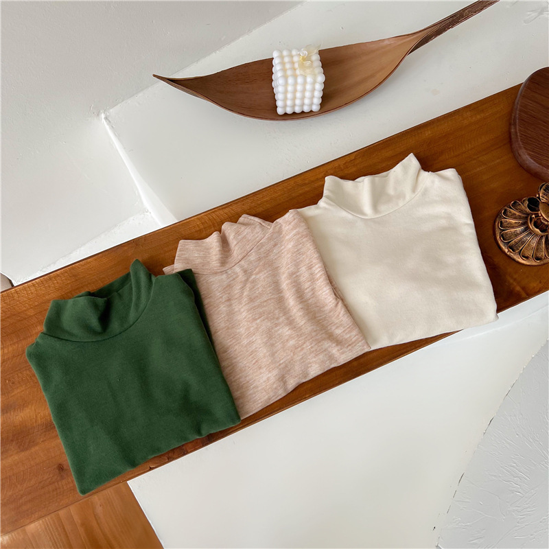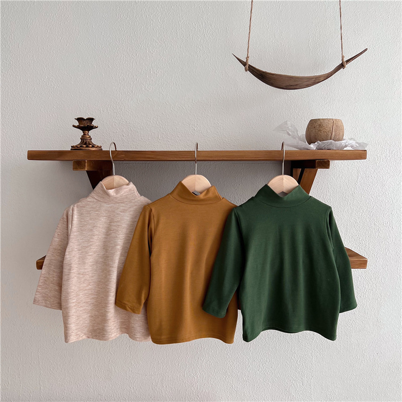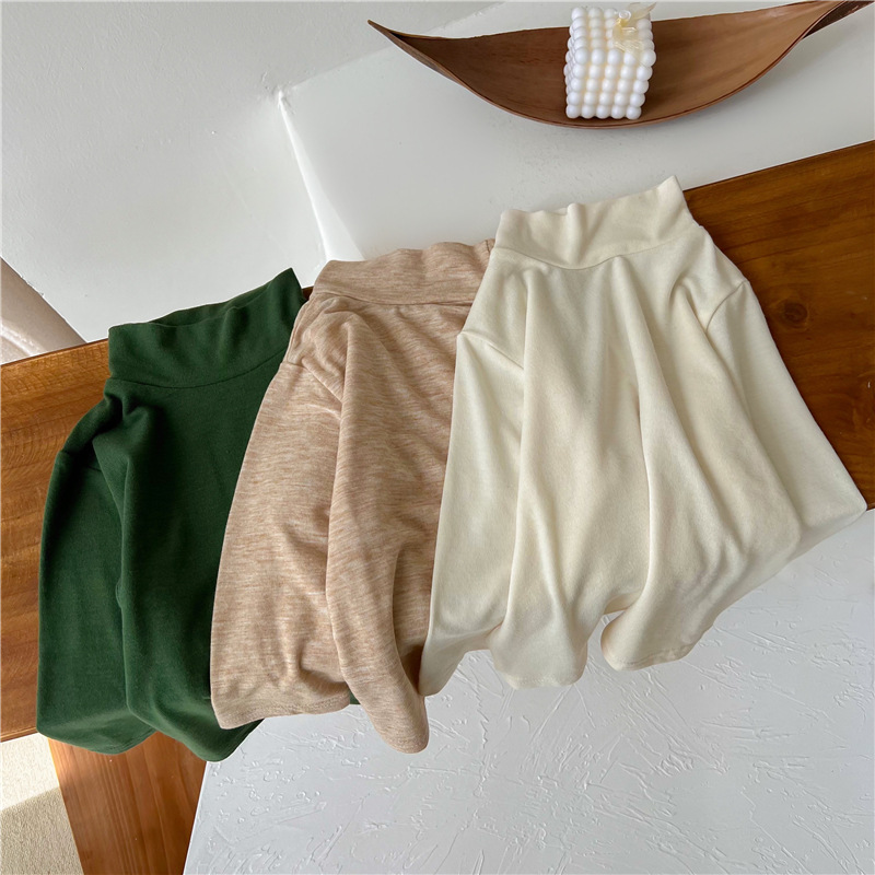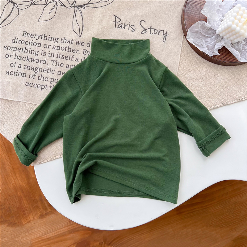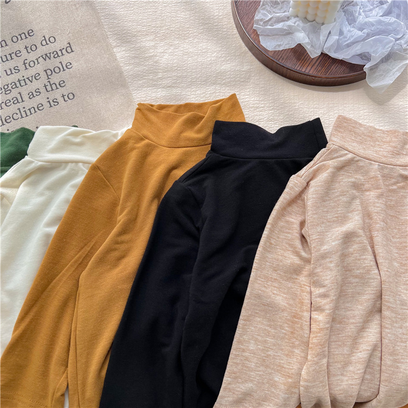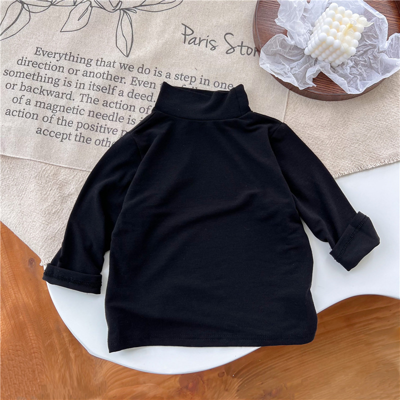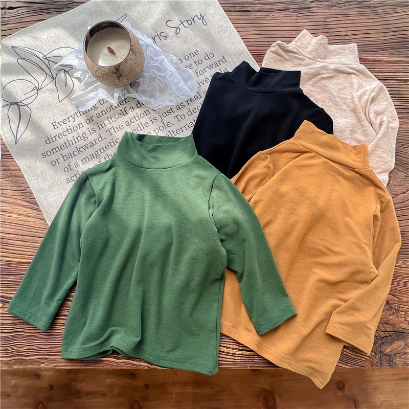 2023 소녀의 고탄력 느슨한 세련된 솔리드 컬러 베이스 셔츠 가을과 겨울 새로운 어린이 하이 칼라 탑 A289B스토어 가기