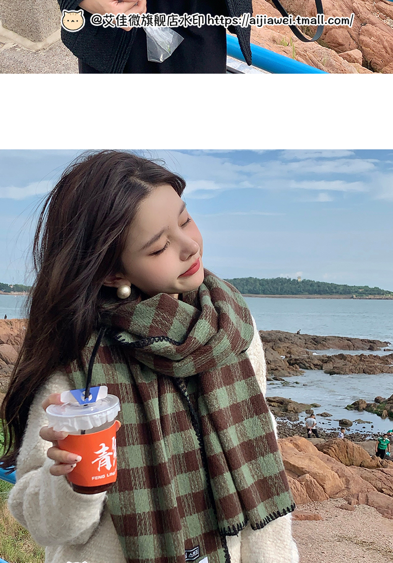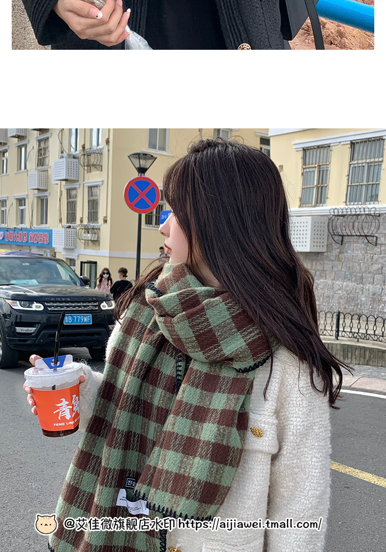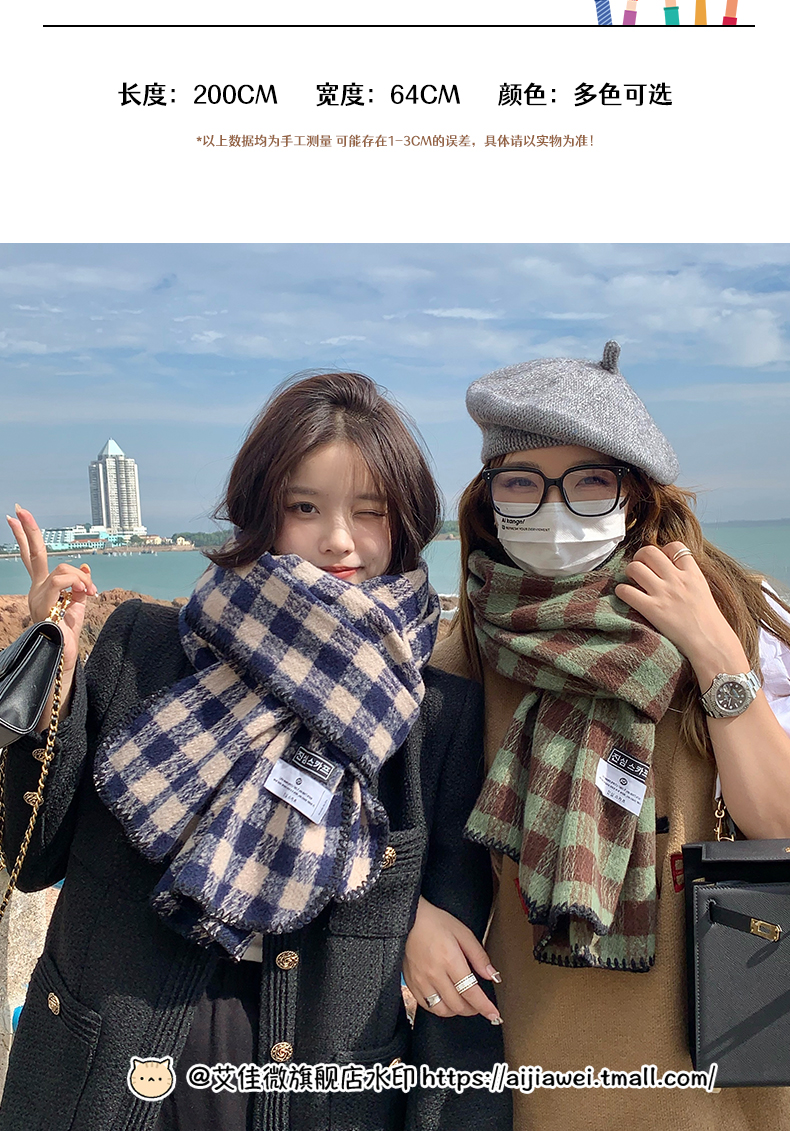 인 스카프 여자의 겨울 한국 스타일 모든 경기 가을과 겨울 새로운 스타일 학생 스카프 커플 따뜻한 일본식 격자 무늬 숄 여성스토어 가기