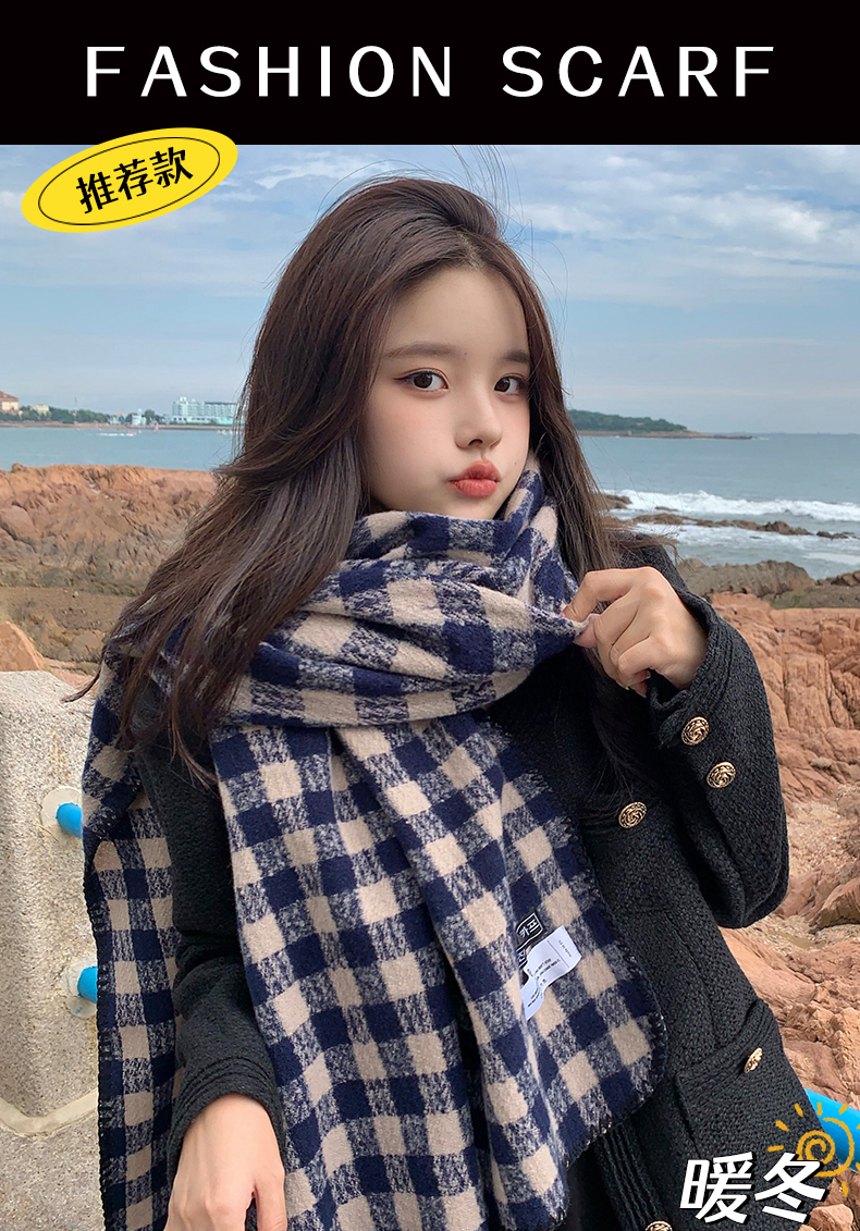 인 스카프 여자의 겨울 한국 스타일 모든 경기 가을과 겨울 새로운 스타일 학생 스카프 커플 따뜻한 일본식 격자 무늬 숄 여성