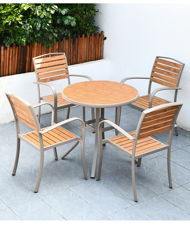 야외 테이블과 의자 부식 방지 나무 단단한 나무 플라스틱 나무 레저 야외 발코니 정원 우유 차 가게 식탁 조합 방수스토어 가기