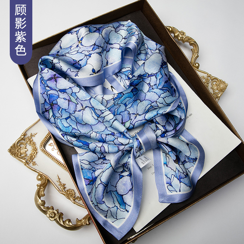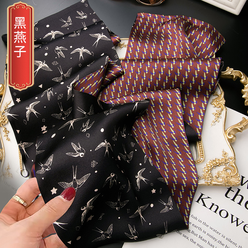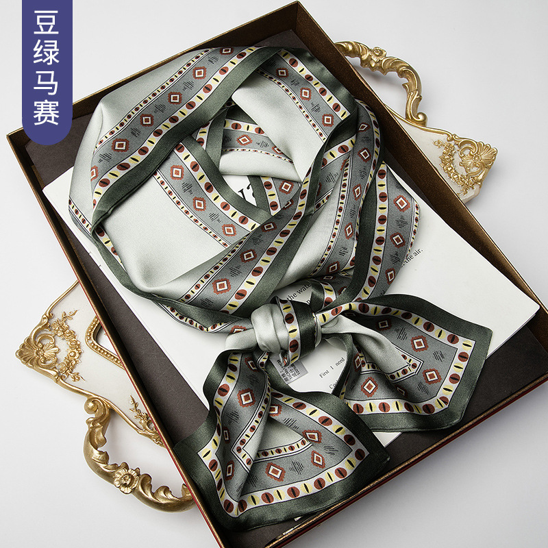 항주 뽕나무 실크 스카프 여성의 봄과 여름 실크 긴 지적 기질 간단한 더블 레이어 리본 도매