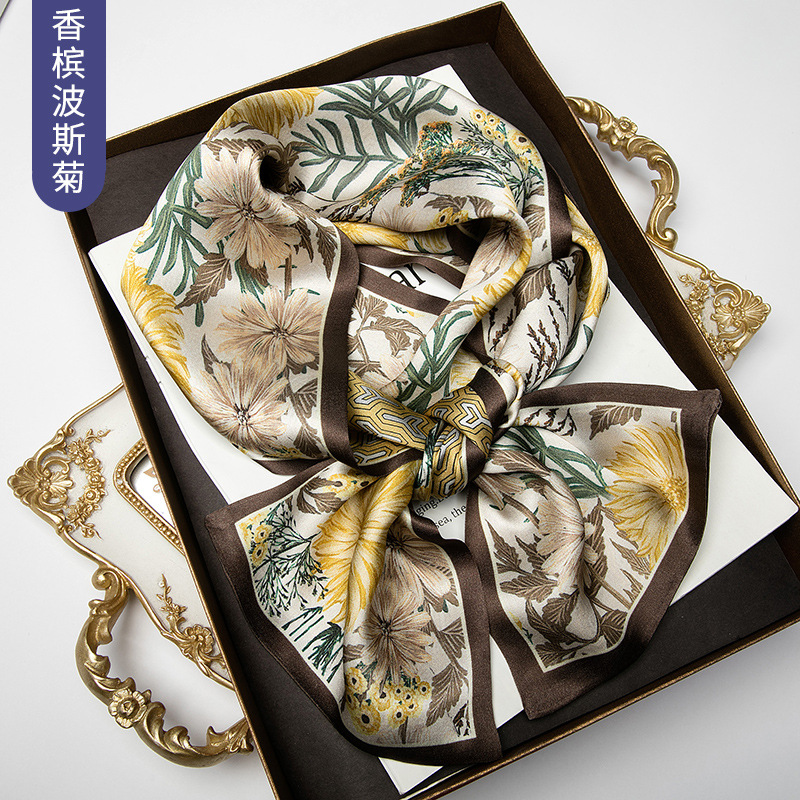 항주 뽕나무 실크 스카프 여성의 봄과 여름 실크 긴 지적 기질 간단한 더블 레이어 리본 도매스토어 가기