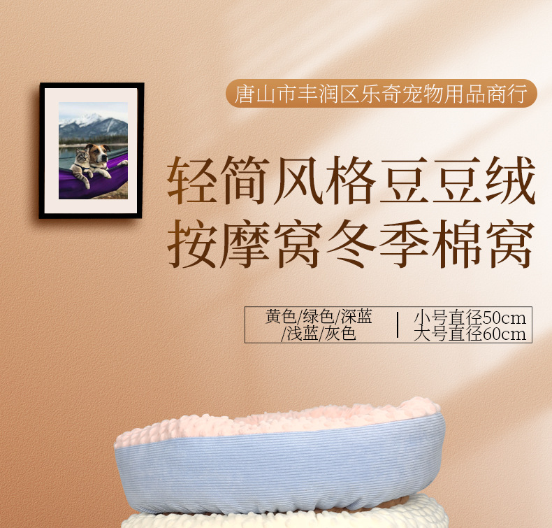 애완동물 고양이 개 사육장 가을과 겨울 라운드 따뜻한 면 침대 깊은 수면 등 간단 콩 벨벳 마사지 둥지 공장 도매스토어 가기