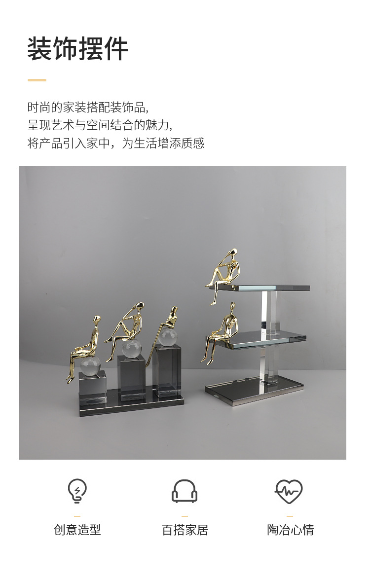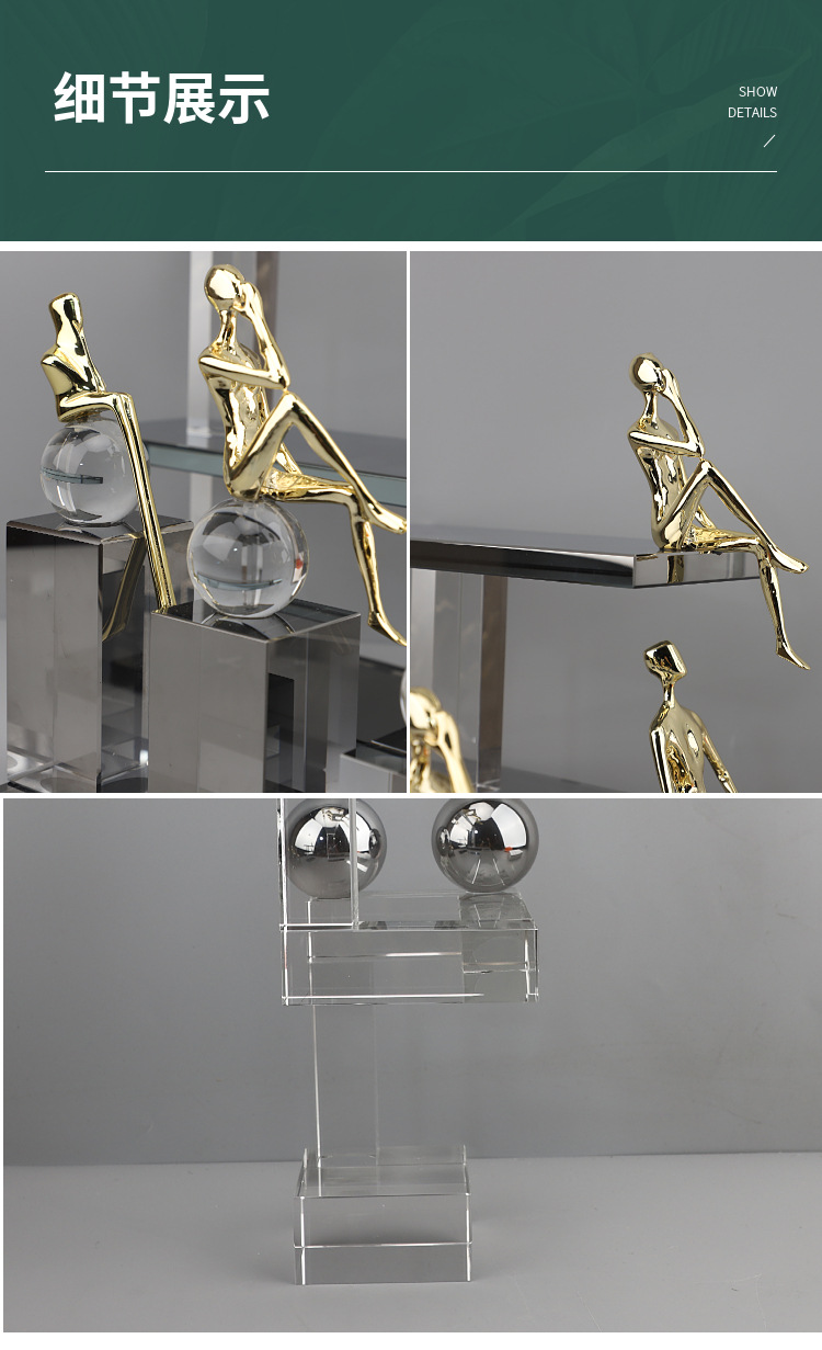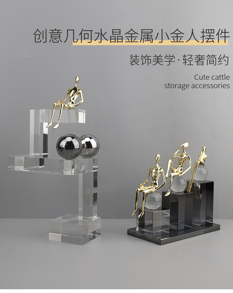 북유럽 크리 에이 티브 기하학적 크리스탈 금속 황금 남자 장식품 거실 입구 TV 캐비닛 모델 룸 홈 장식스토어 가기