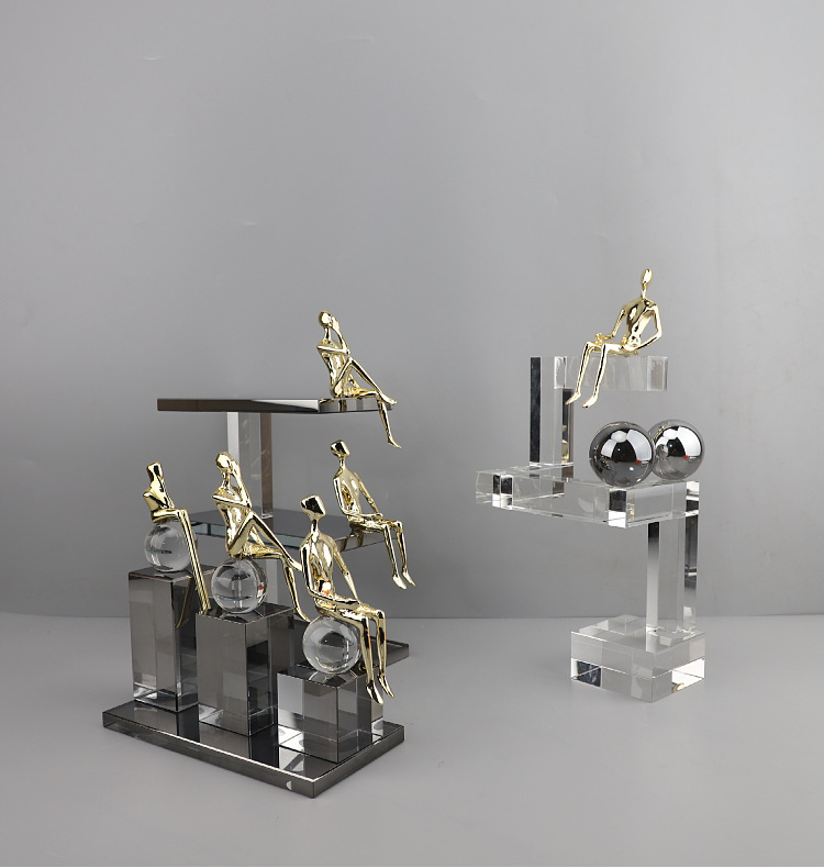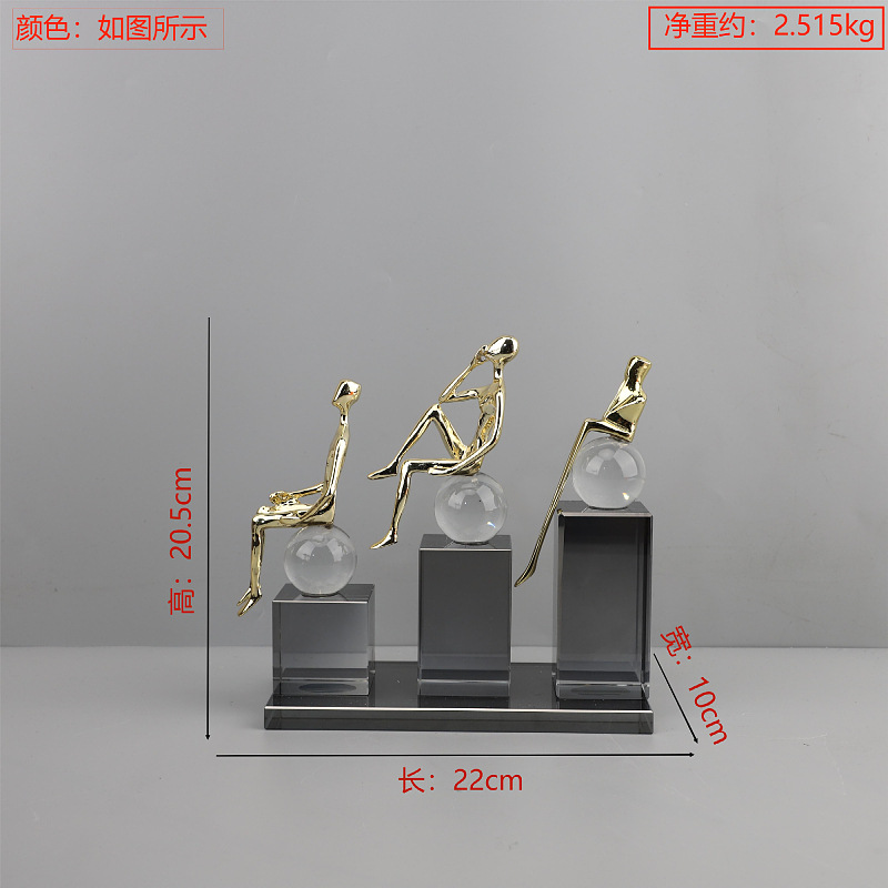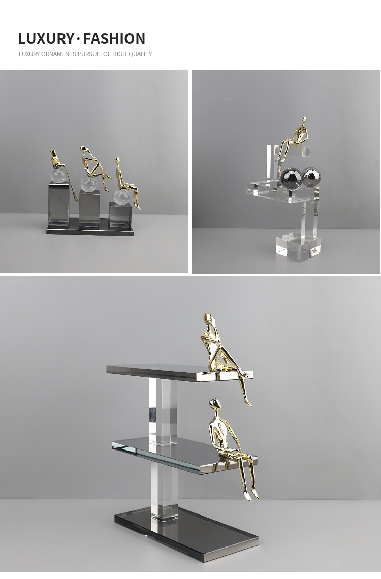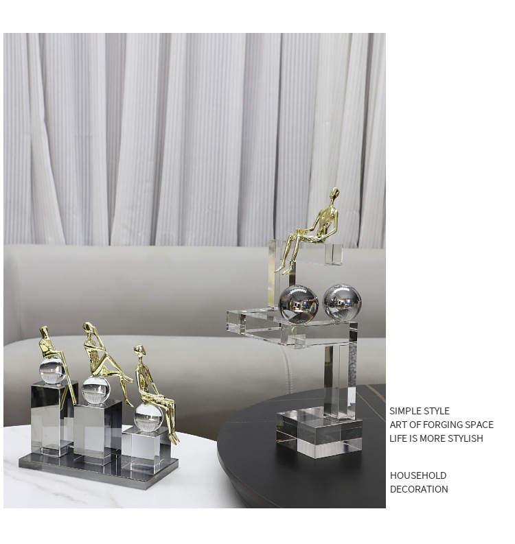 북유럽 크리 에이 티브 기하학적 크리스탈 금속 황금 남자 장식품 거실 입구 TV 캐비닛 모델 룸 홈 장식