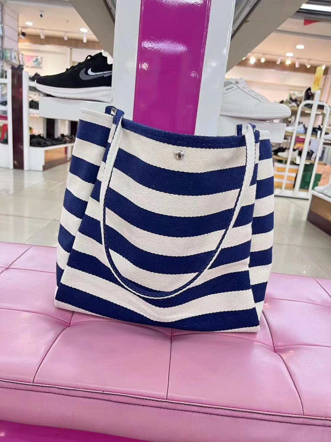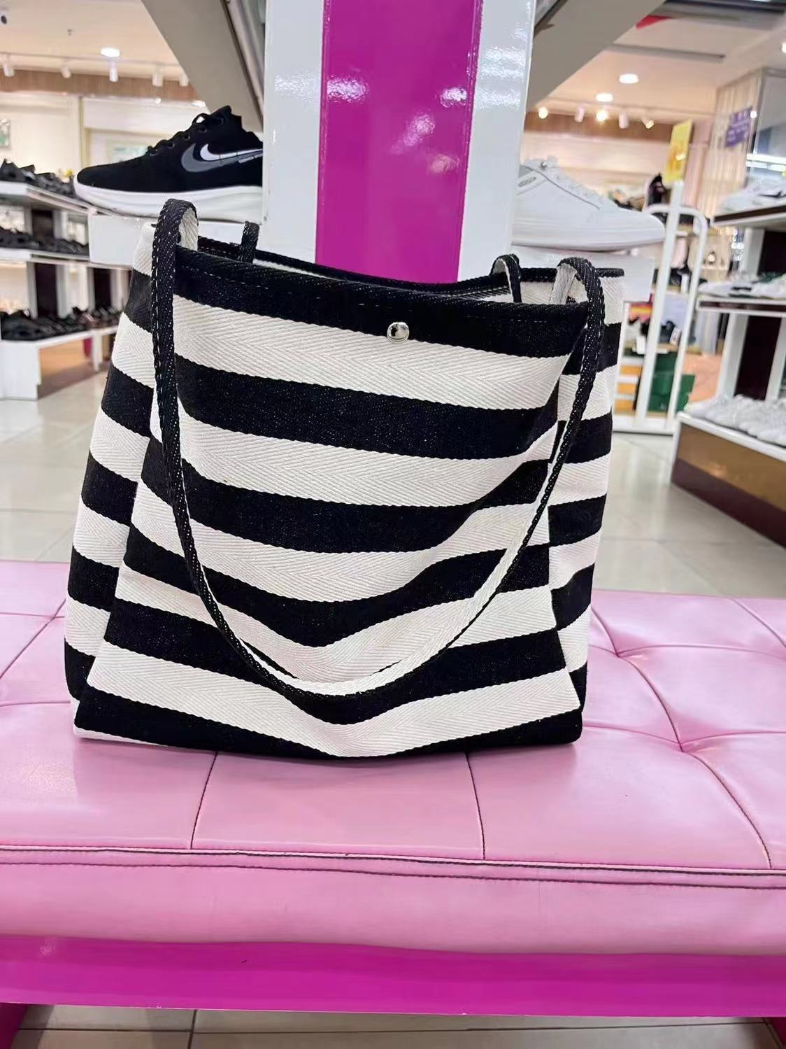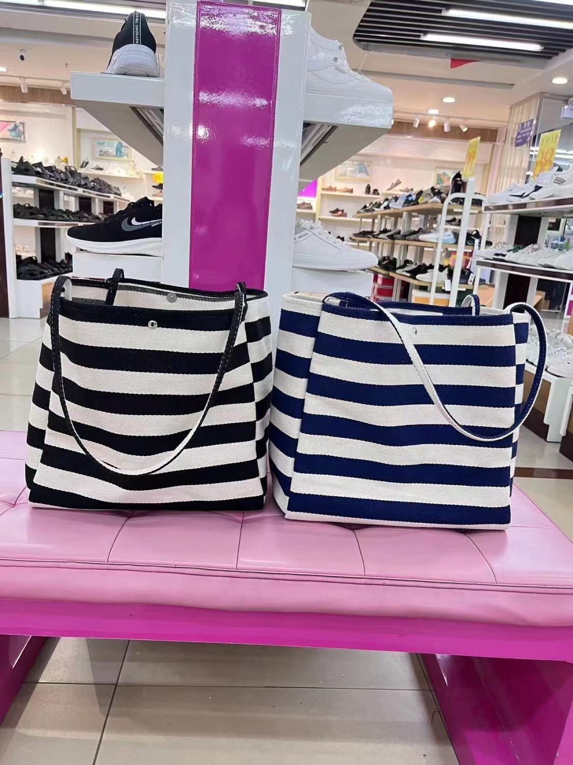 캔버스 빅 백 2023 새로운 패션 대비 컬러 스트라이프 토트 백 여성용 대용량 숄더백 클래스 통근 가방스토어 가기