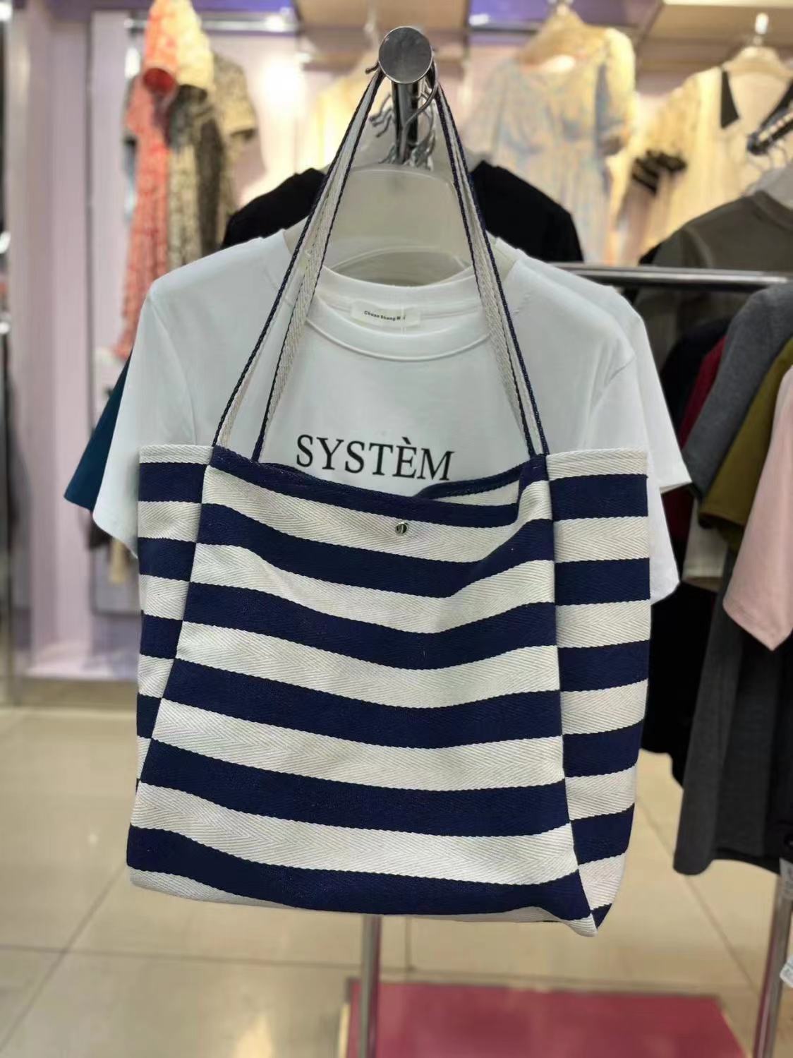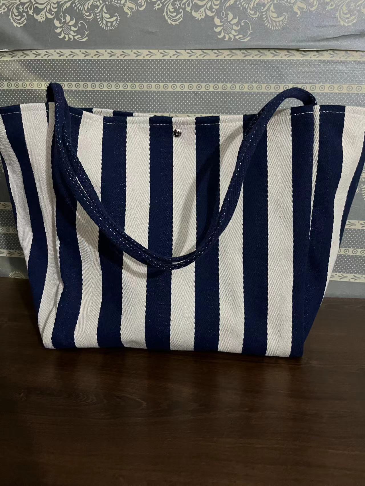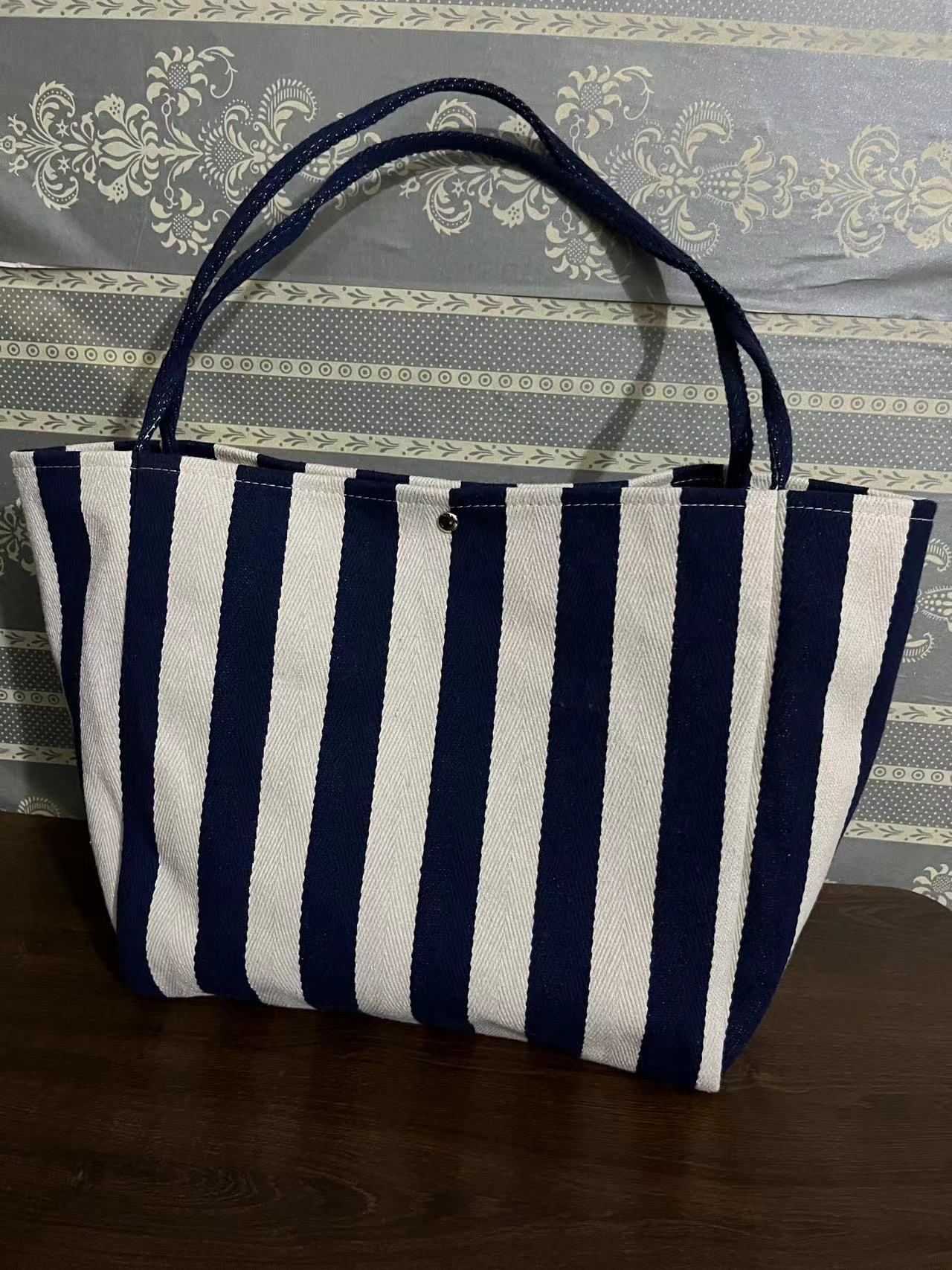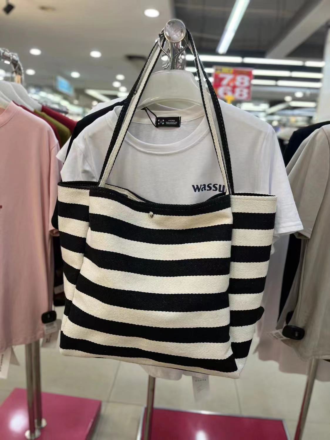 캔버스 빅 백 2023 새로운 패션 대비 컬러 스트라이프 토트 백 여성용 대용량 숄더백 클래스 통근 가방스토어 가기