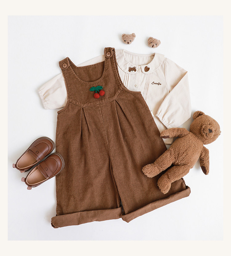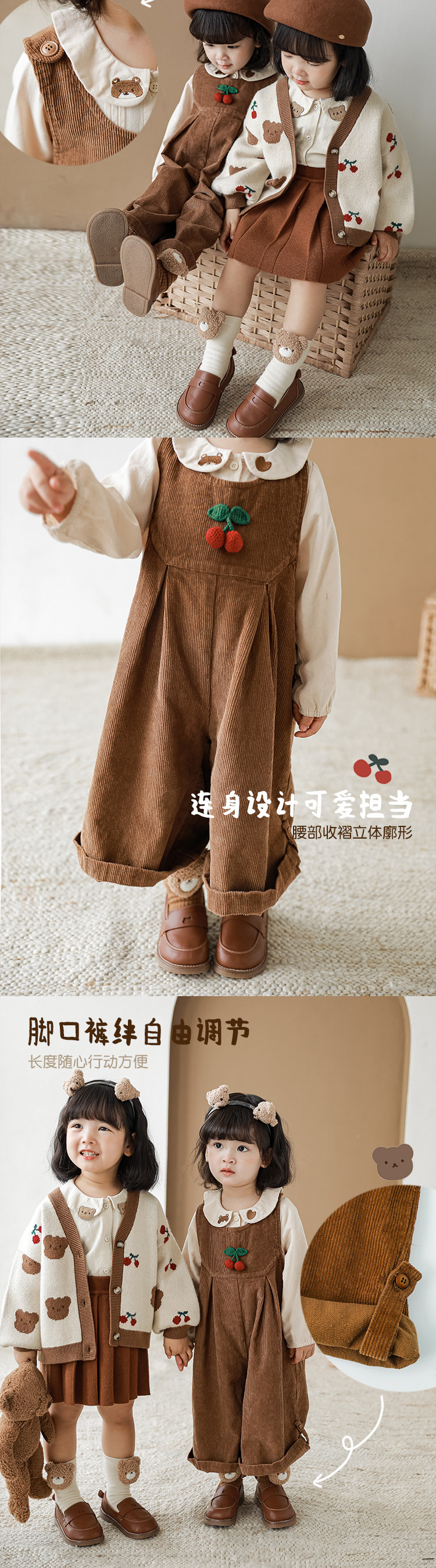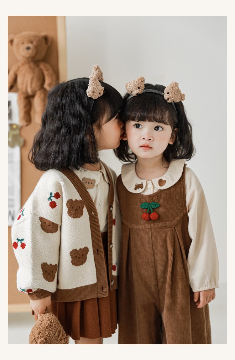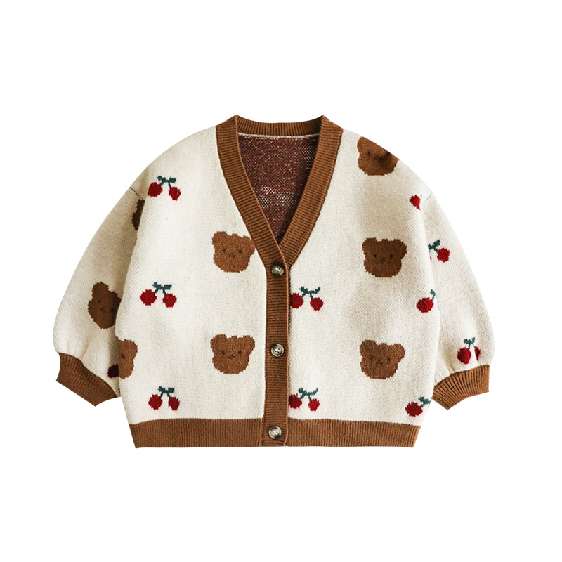 Wurib 소녀의 복고풍 니트 카디건 세트 귀여운 체리 곰 재킷 어린이 가을 바지스토어 가기