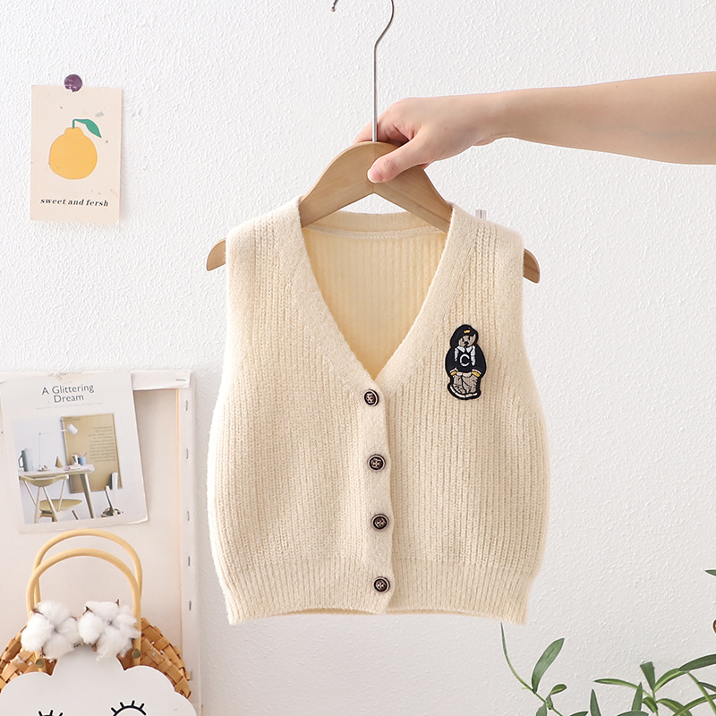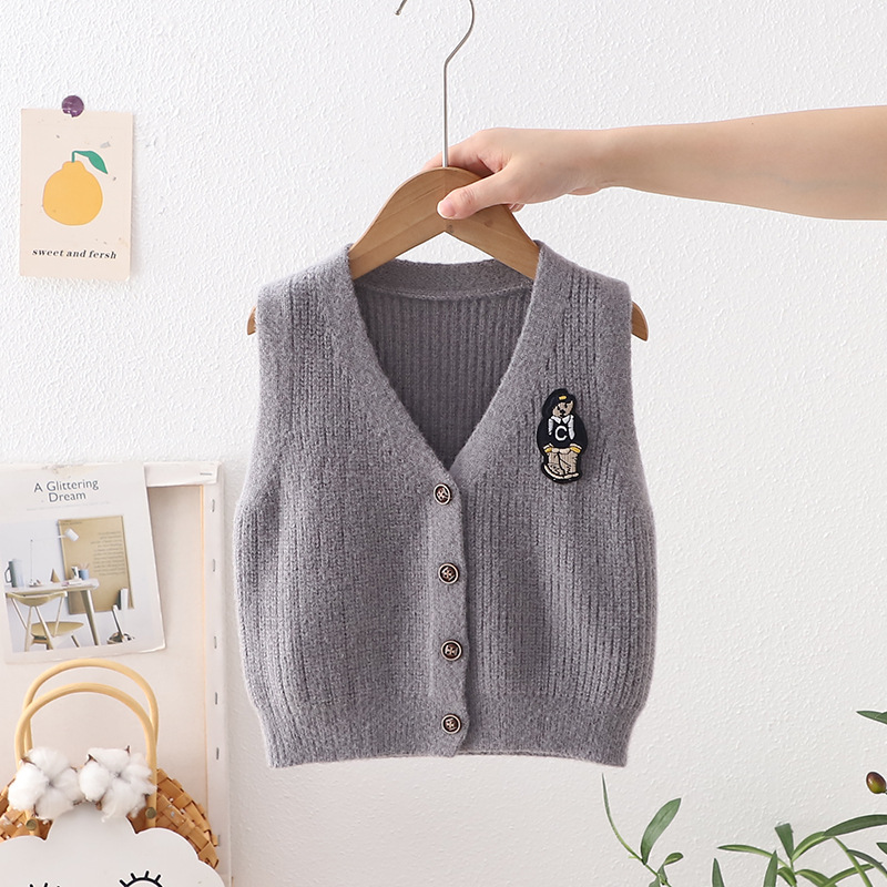 가을 2023 새로운 어린이 조끼 가디건 아기 곰 스웨터 조끼 한국 어린이 조끼