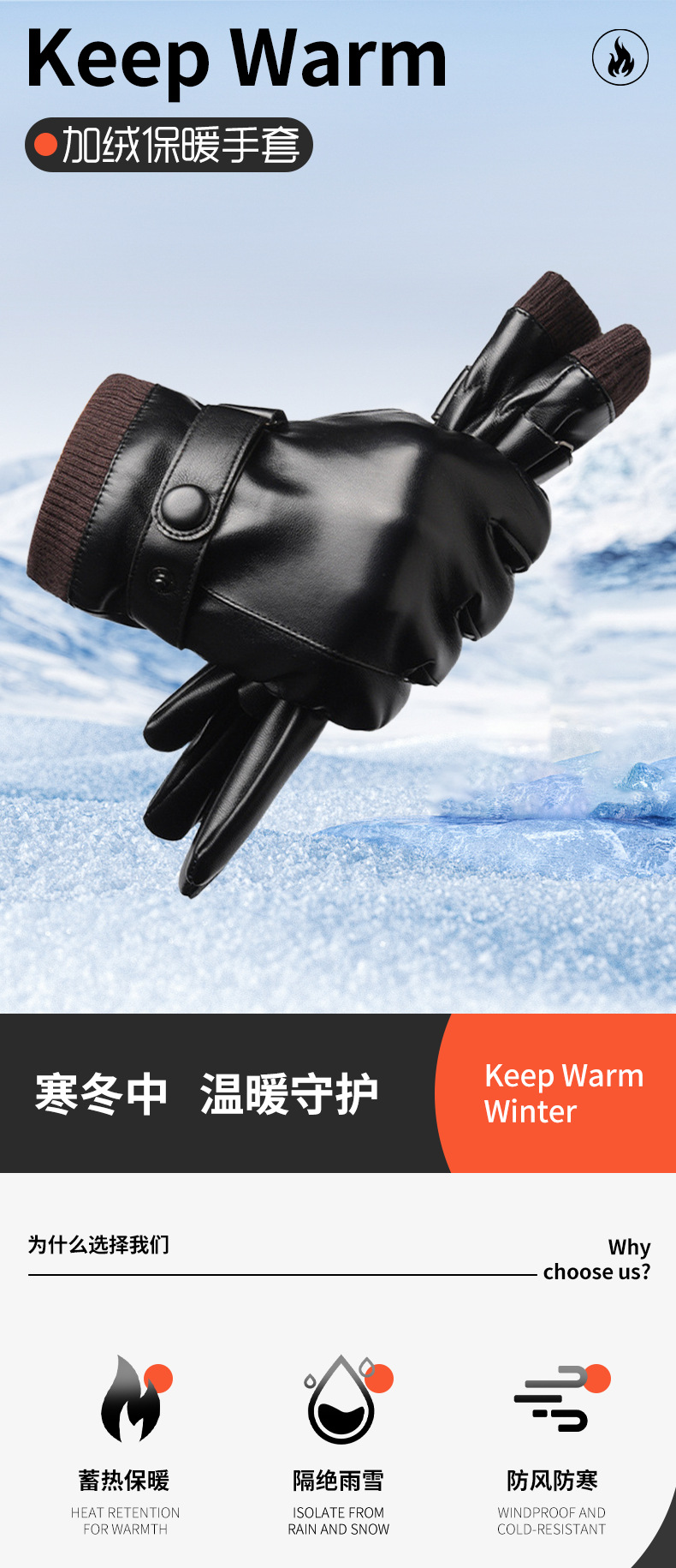 겨울 가죽 기모 따뜻한 장갑 남성용 방풍 사이클링 장갑 터치 스크린 방수 장갑 방한 따뜻한 장갑