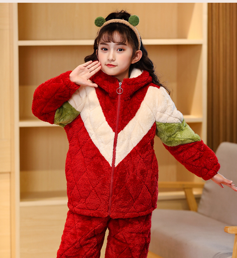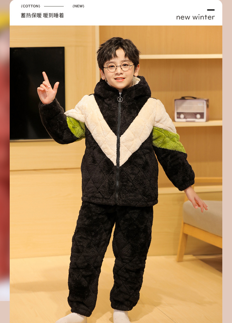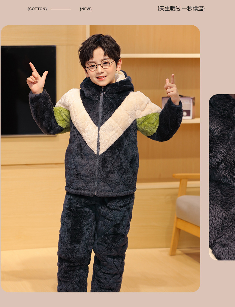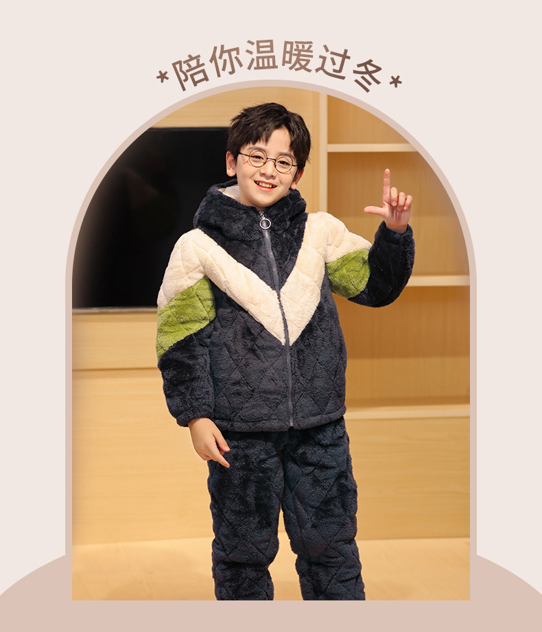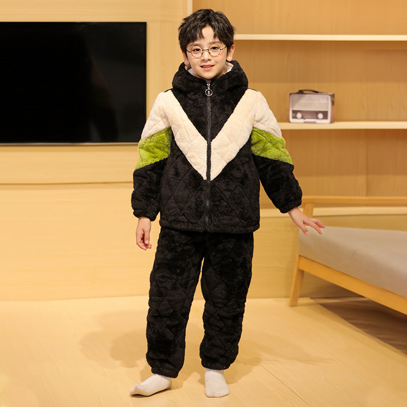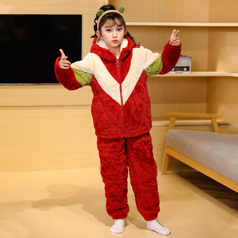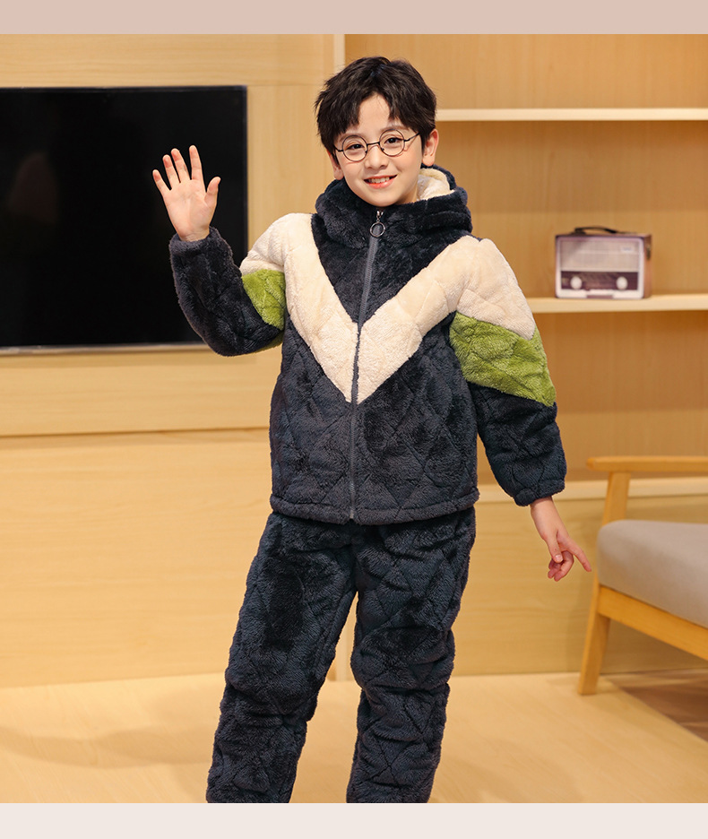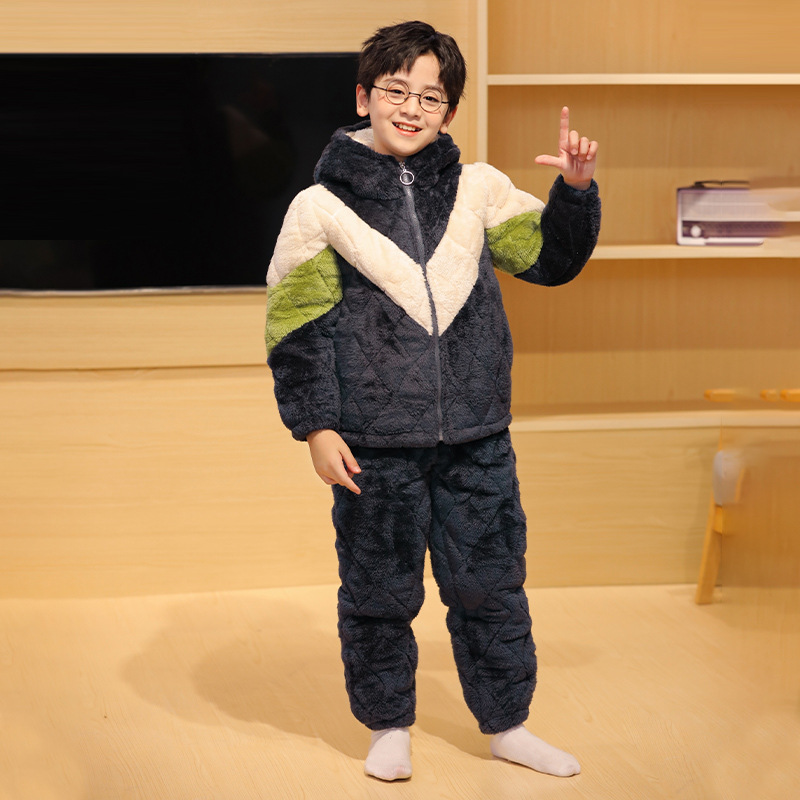 소년을위한 어린이 잠옷 큰 어린이와 소녀를위한 겨울 두꺼운 플란넬 3 층 퀼트 산호 양털 가정 의류 도매