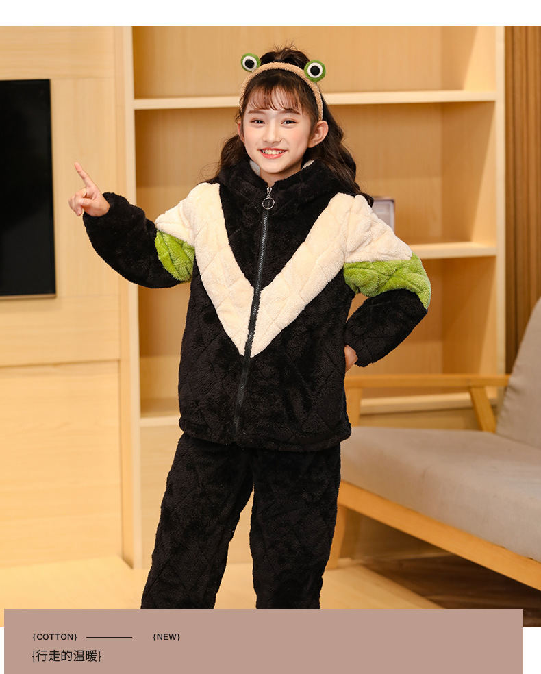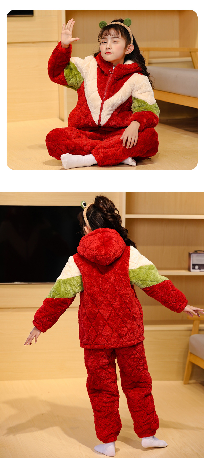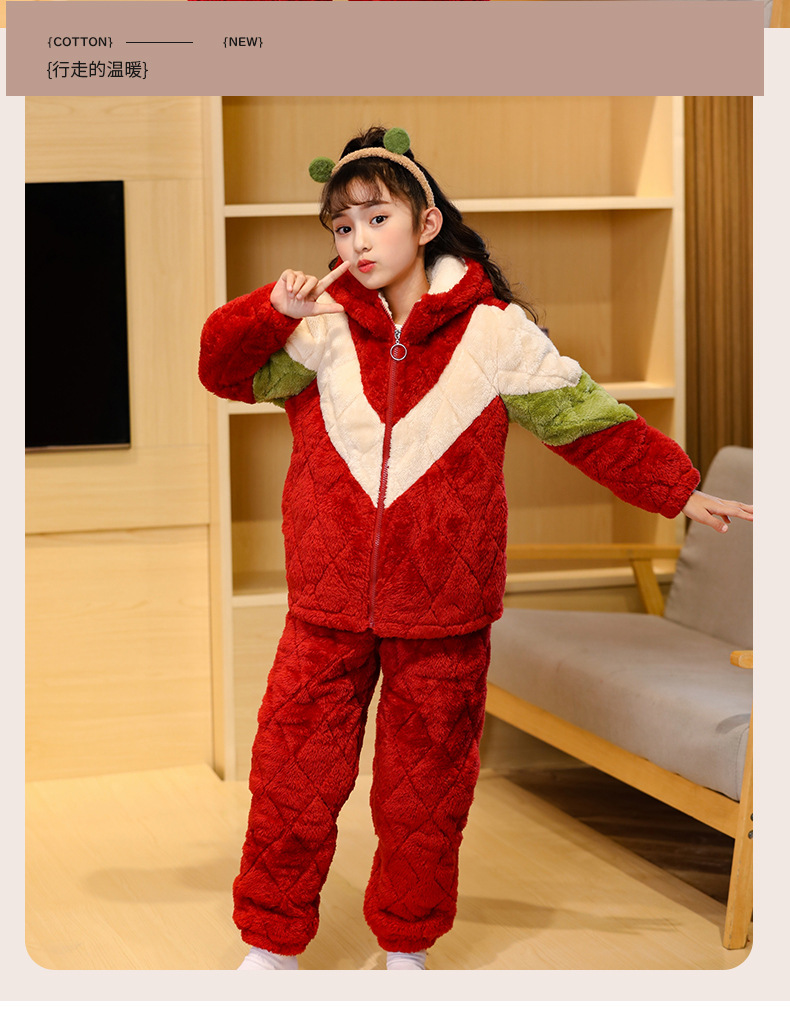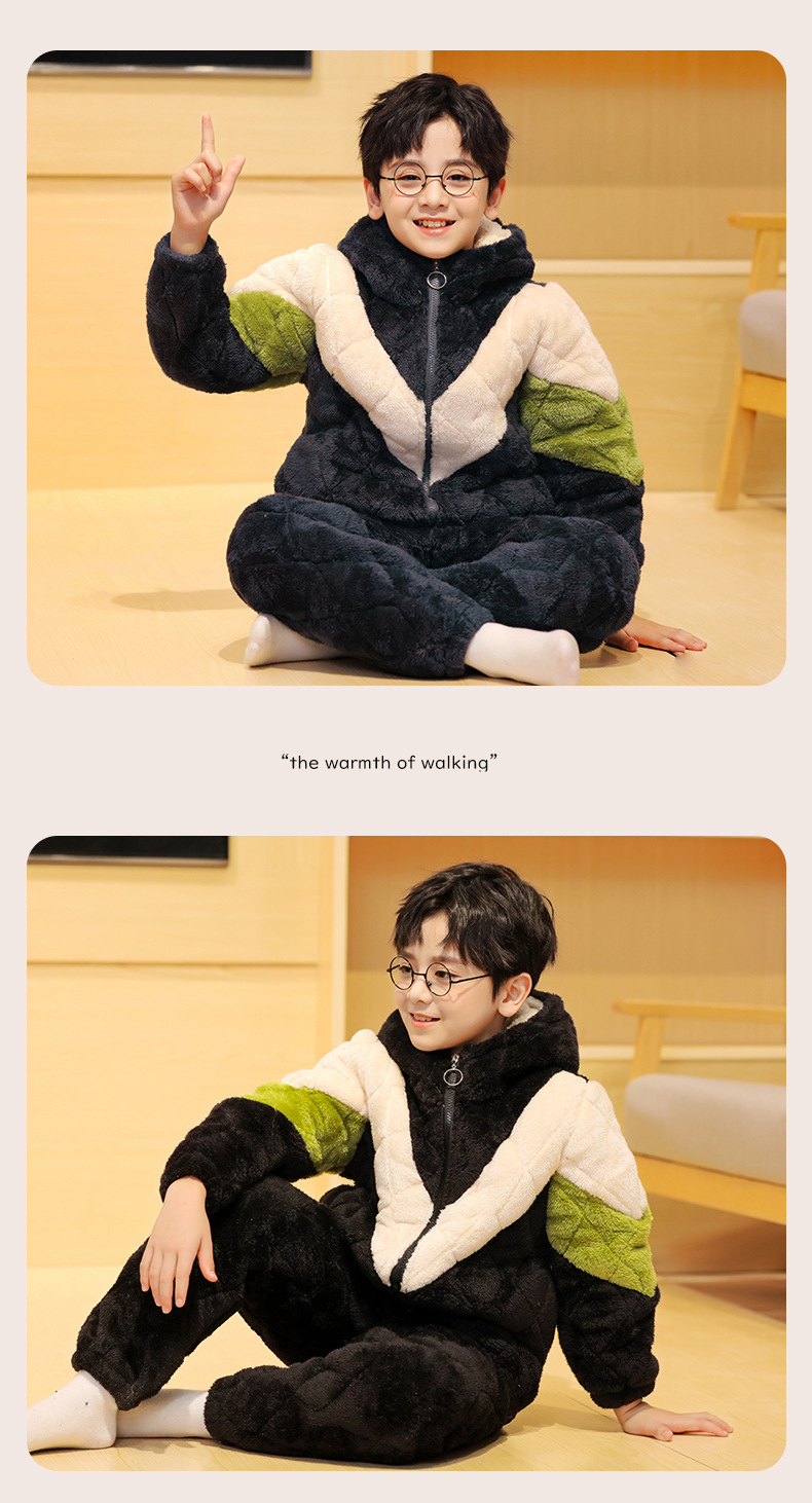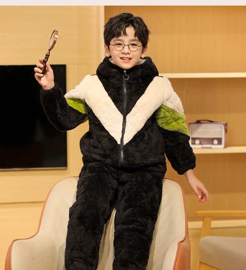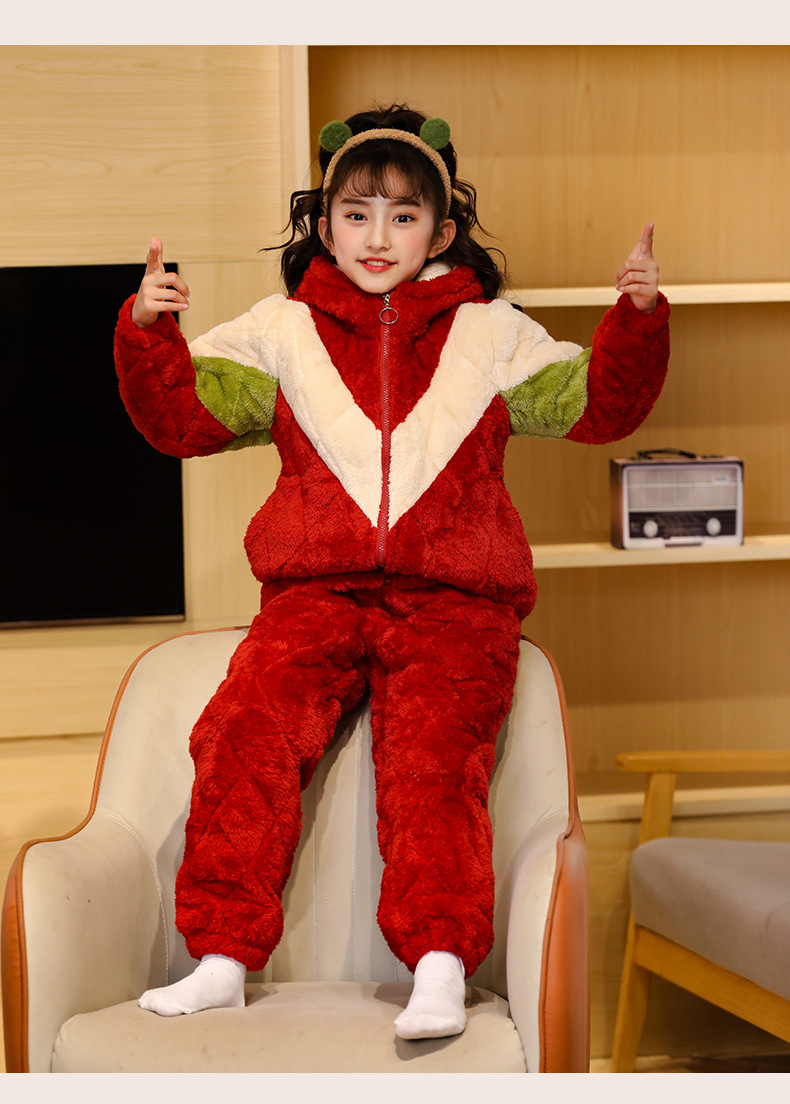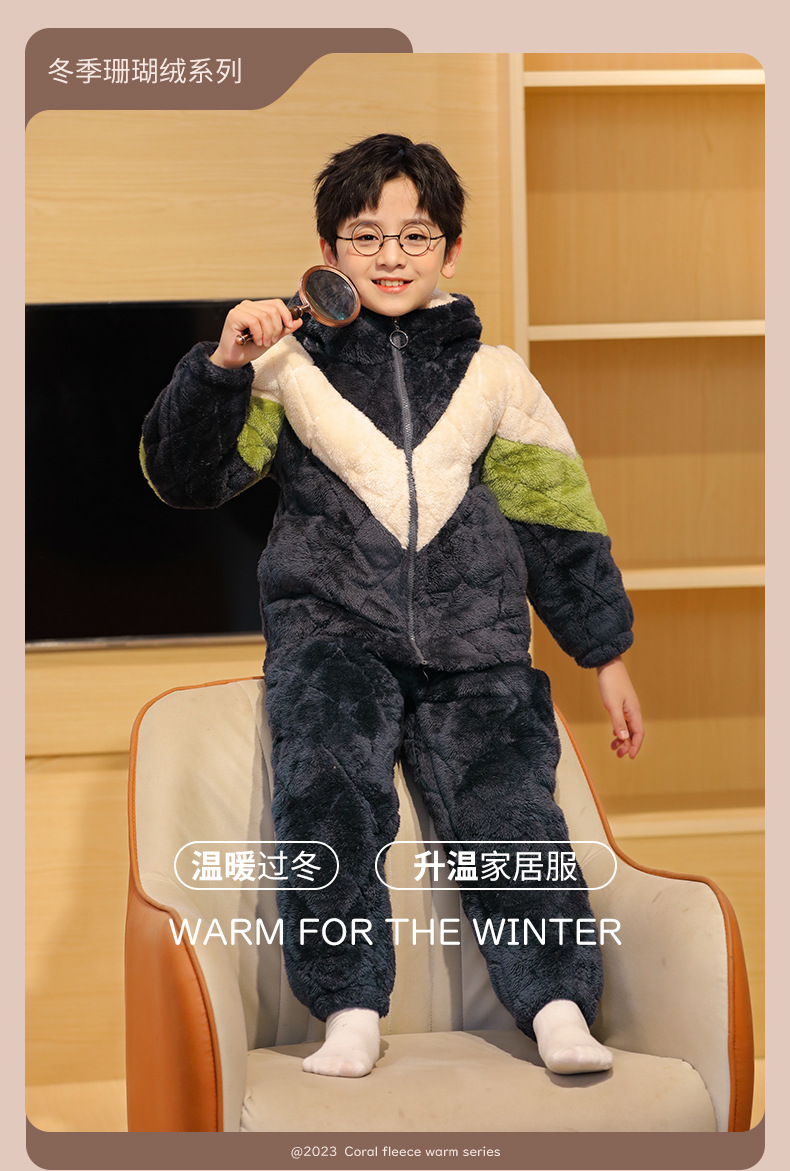 소년을위한 어린이 잠옷 큰 어린이와 소녀를위한 겨울 두꺼운 플란넬 3 층 퀼트 산호 양털 가정 의류 도매