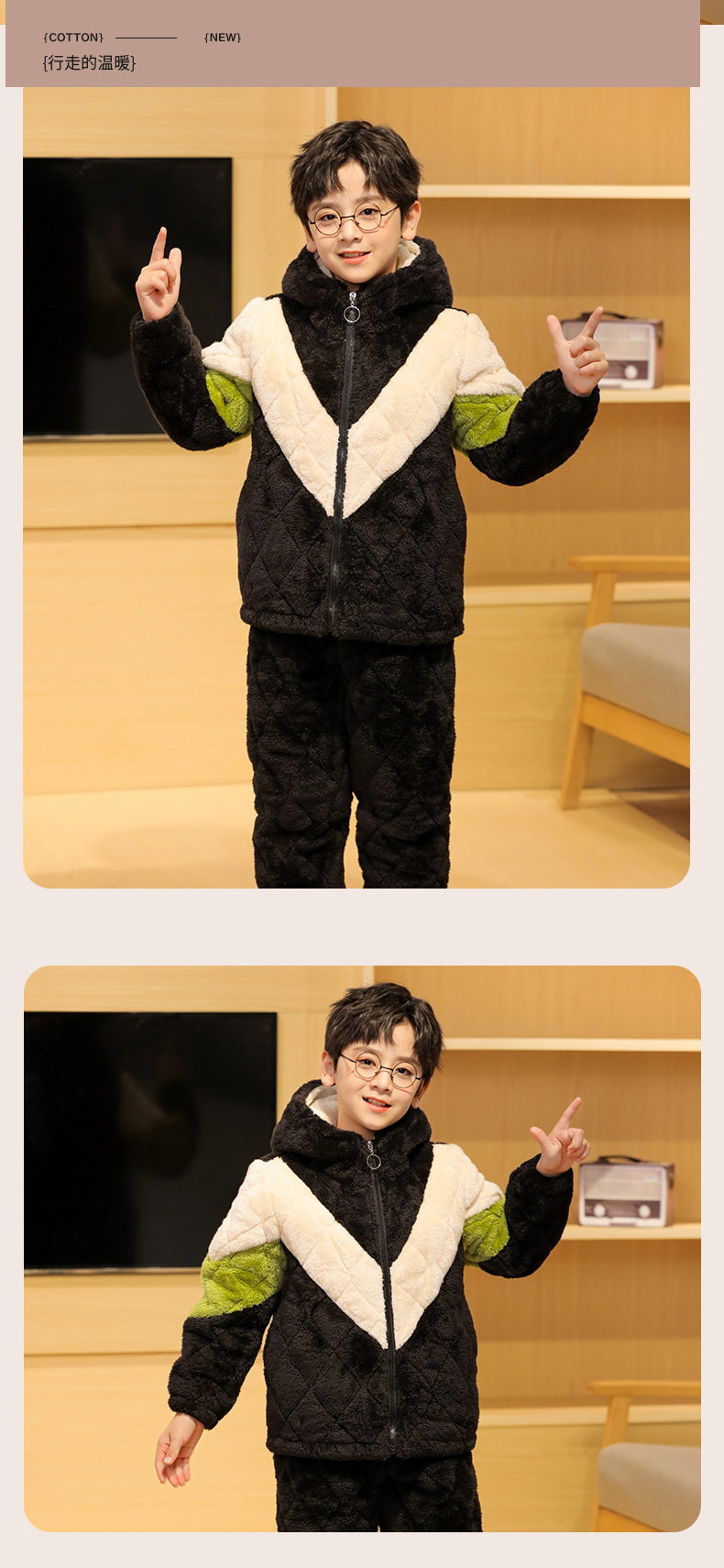 소년을위한 어린이 잠옷 큰 어린이와 소녀를위한 겨울 두꺼운 플란넬 3 층 퀼트 산호 양털 가정 의류 도매스토어 가기