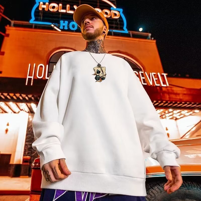크루넥 스웨터 남자의 아메리칸 스타일 풀오버 레트로 긴팔 플러스 사이즈 남성용 탑 인 프린트 루즈한 트렌디 스포츠웨어스토어 가기