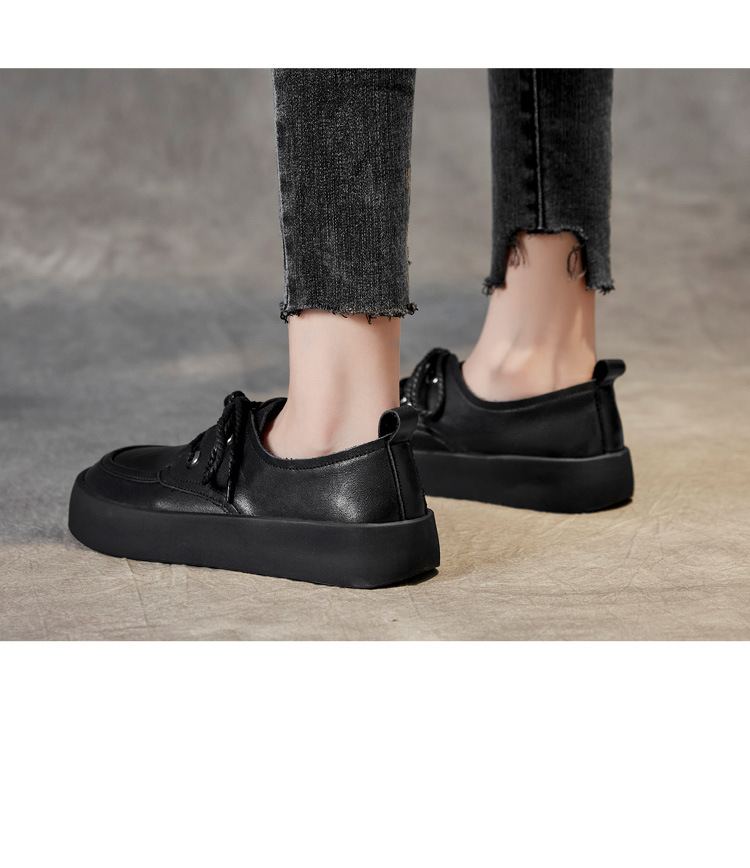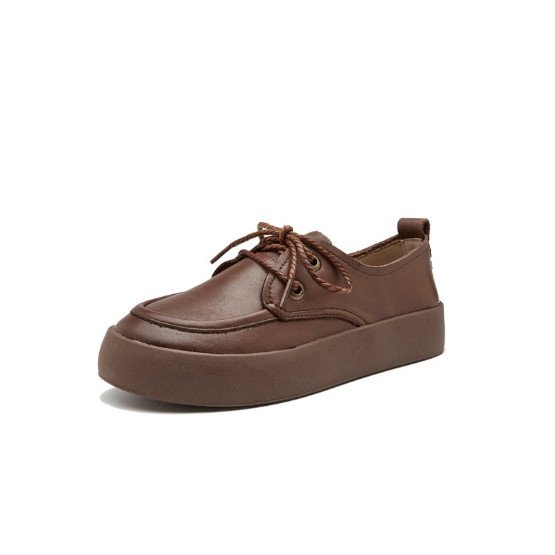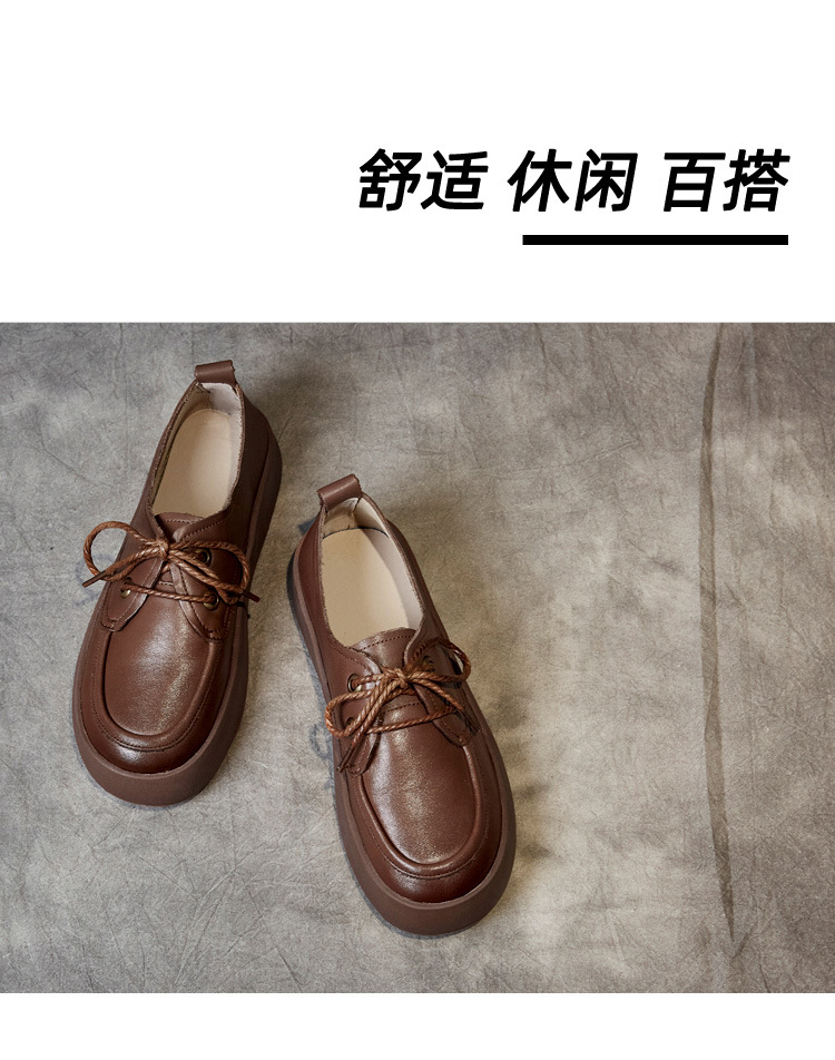 빈티지 수제 암소 가죽 레이스 업 로퍼 여성용 2023 가을 새로운 영국 스타일 캐주얼 플랫 싱글 레이어 신발