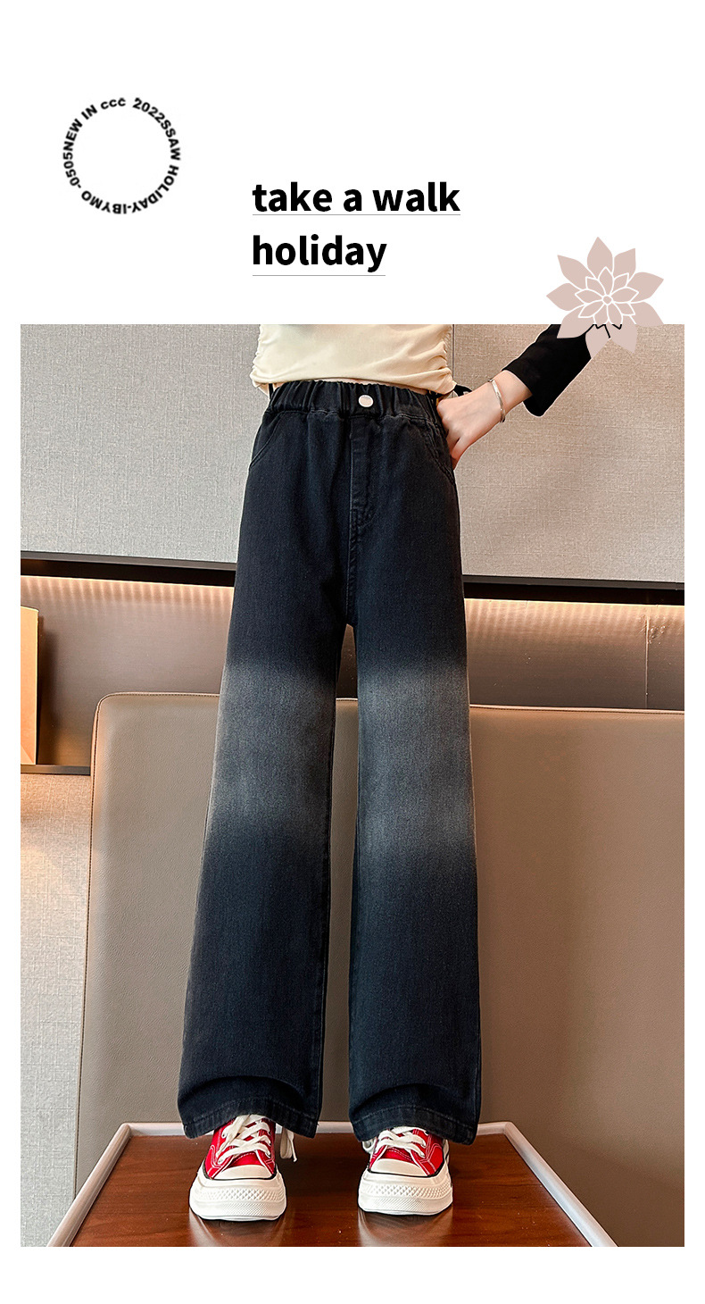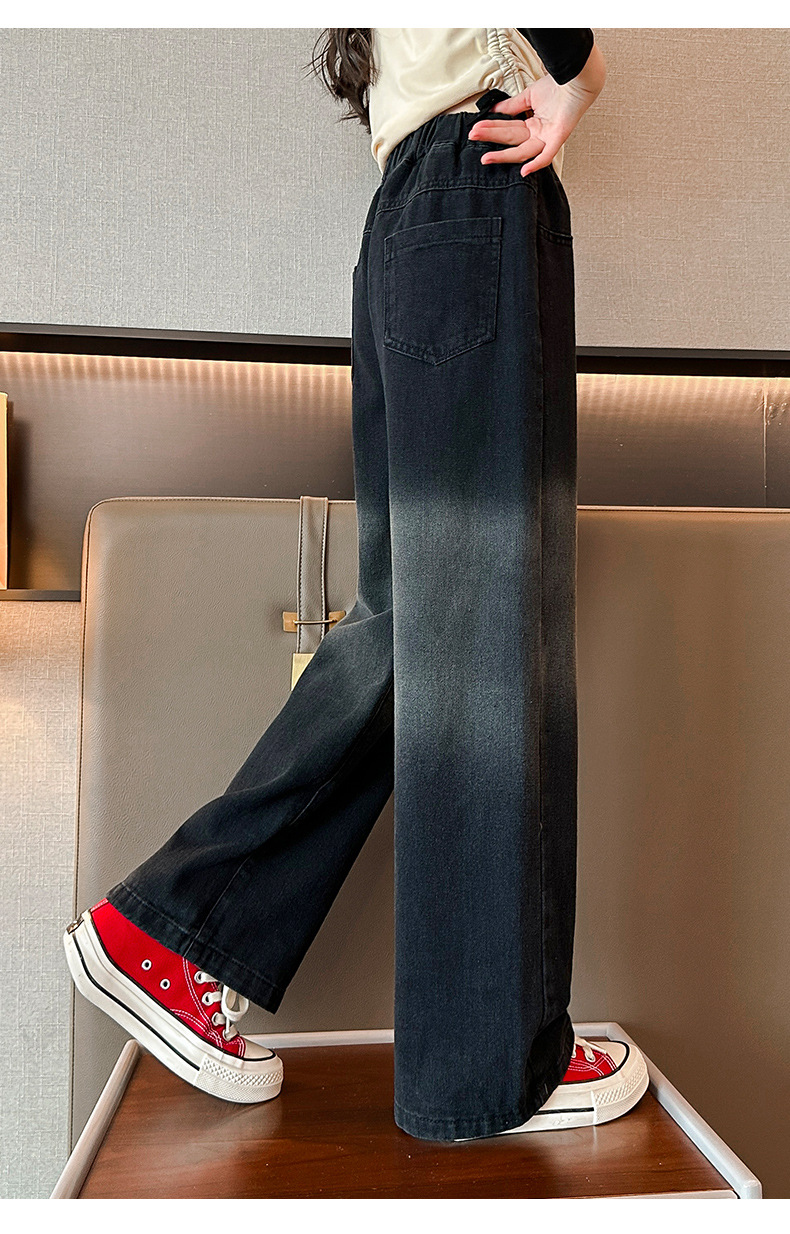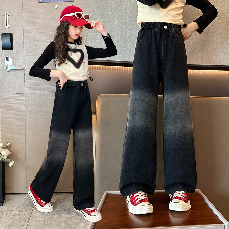 여아 청바지 가을 2023 새로운 서양식 느슨한 와이드 레그 팬츠 봄과 가을 중형 어린이 그라디언트 스트레이트 팬츠