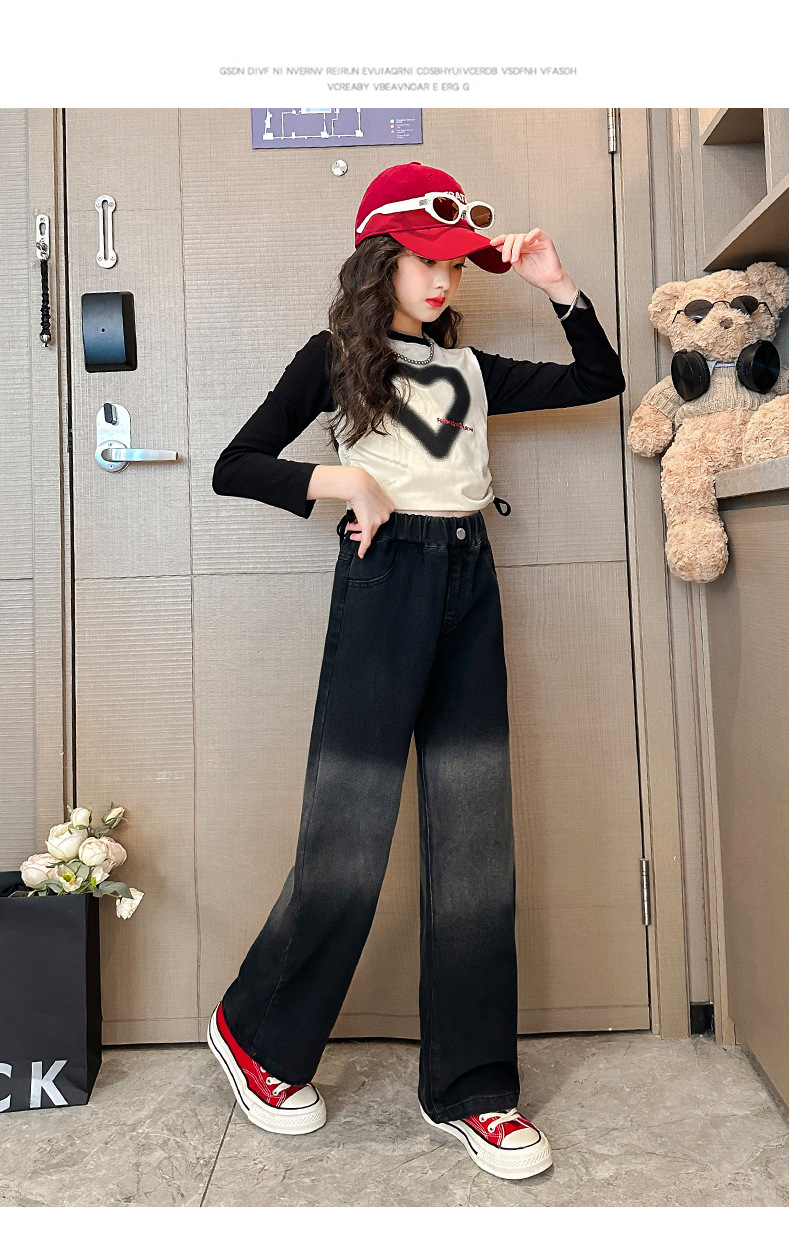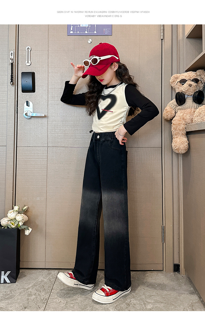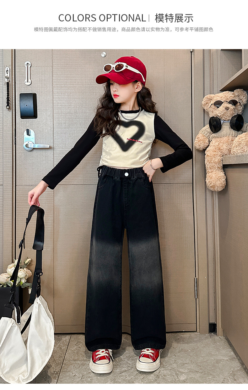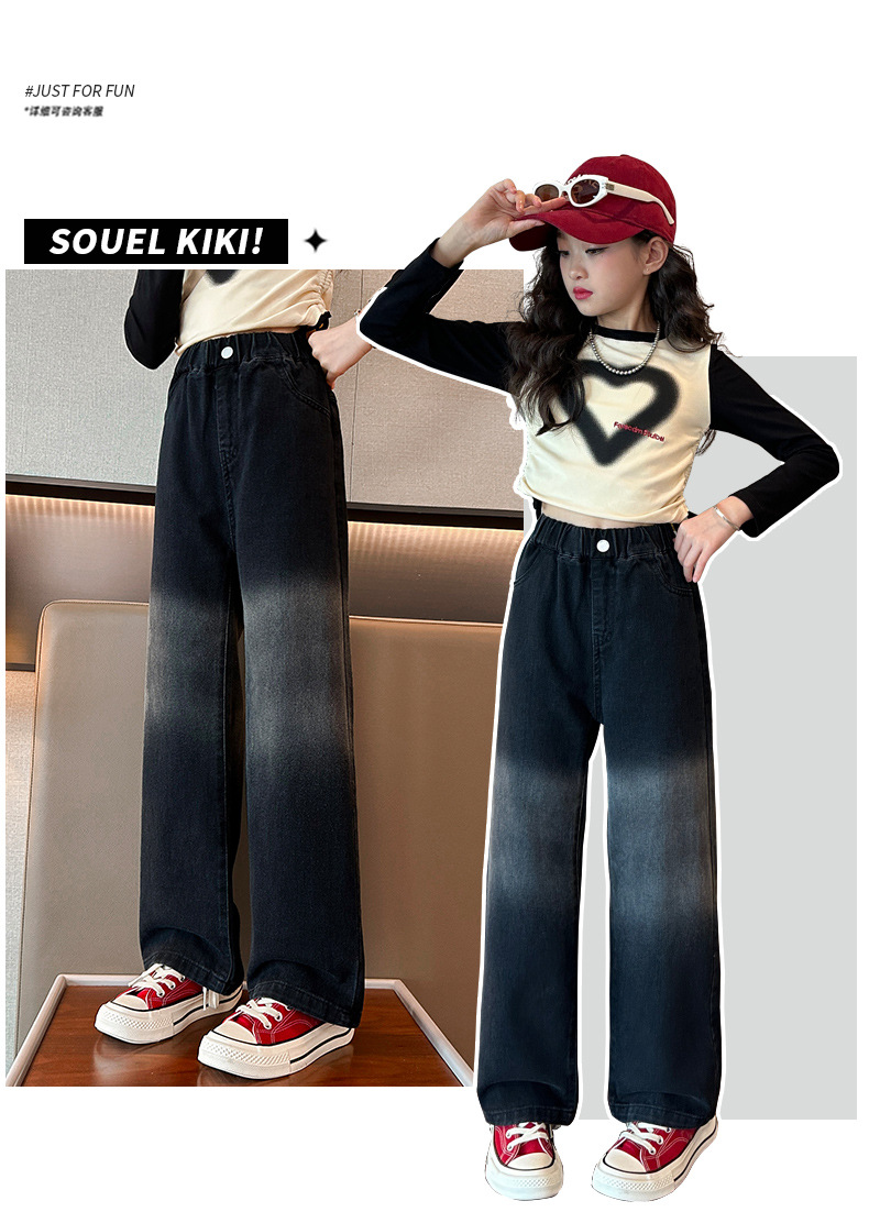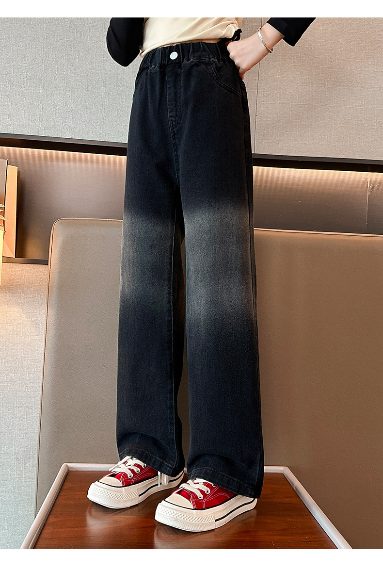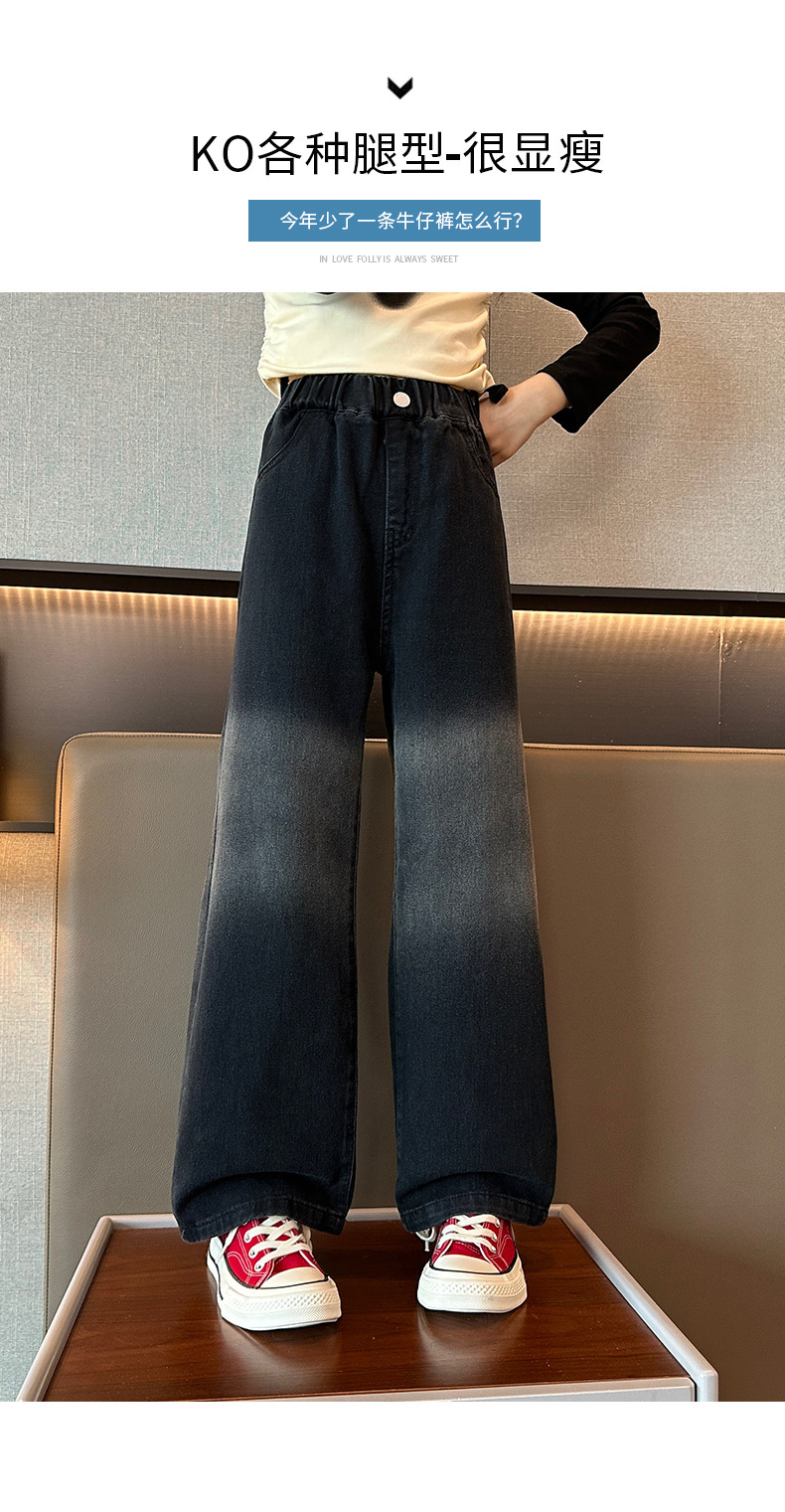 여아 청바지 가을 2023 새로운 서양식 느슨한 와이드 레그 팬츠 봄과 가을 중형 어린이 그라디언트 스트레이트 팬츠스토어 가기