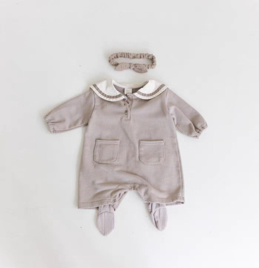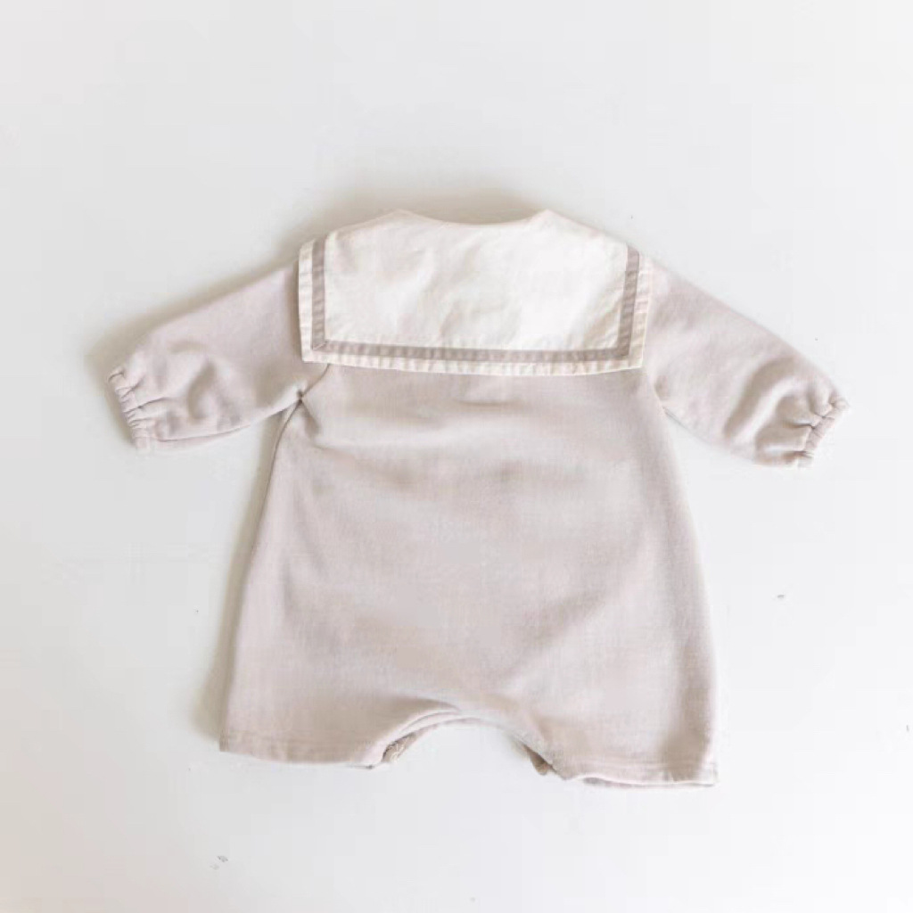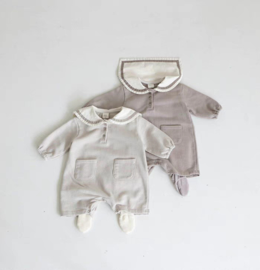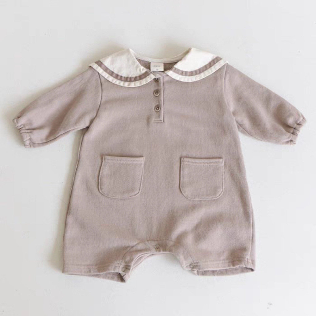 한국식 네이비 스타일의 긴팔 짧은 등반 2 포켓 단색 토끼 옷깃 아기 아동복 단색 모든 일치
