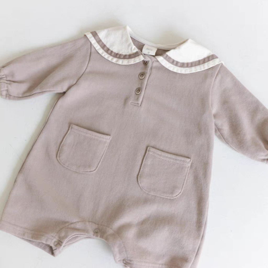 한국식 네이비 스타일의 긴팔 짧은 등반 2 포켓 단색 토끼 옷깃 아기 아동복 단색 모든 일치스토어 가기