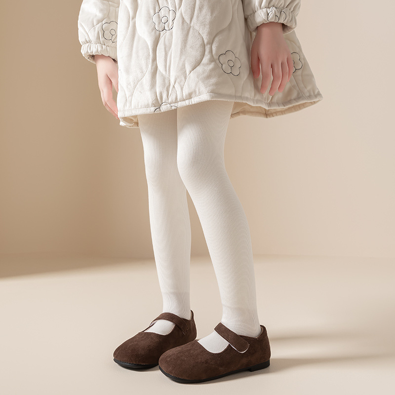 가을 겨울용 벨벳 안감 화이트 보온 아동용 레깅스, 아기용 대형 PP 오픈형 세로 줄무늬 허리 보호 여아용 팬티스타킹스토어 가기