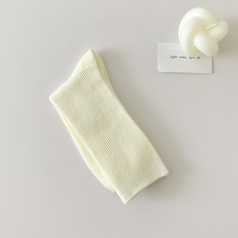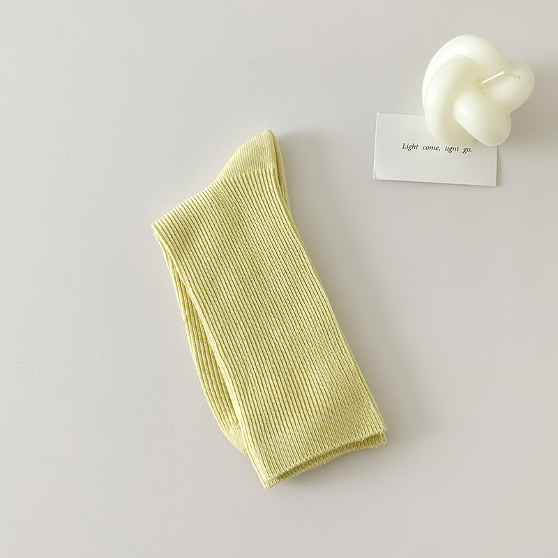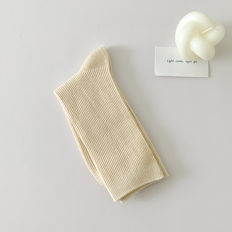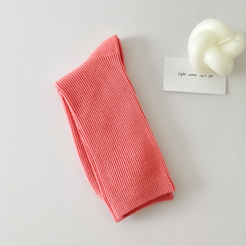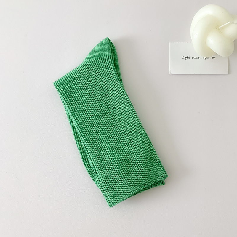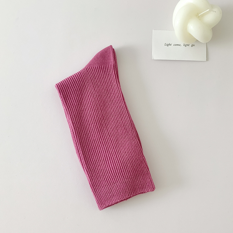 가을 겨울 신상 심플 단색 양말 여성 중목 양말 캔디 컬러 여성용 외출용 컬러풀 더블 니트 얇은 줄무늬 양말