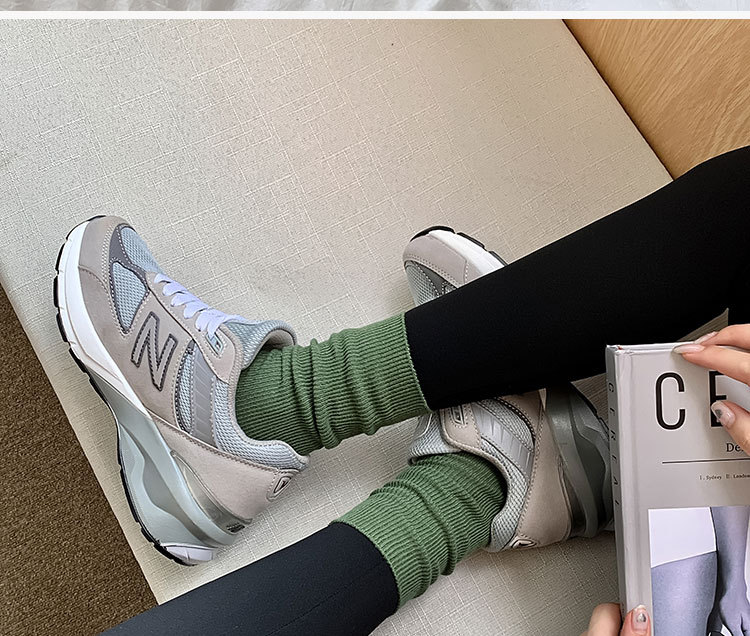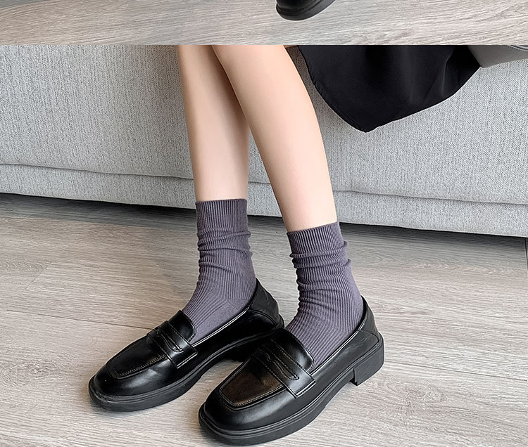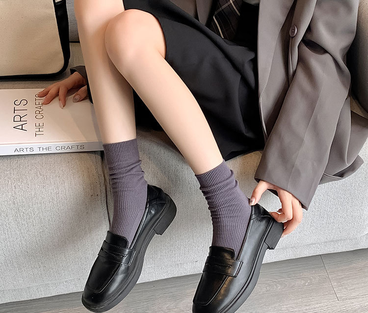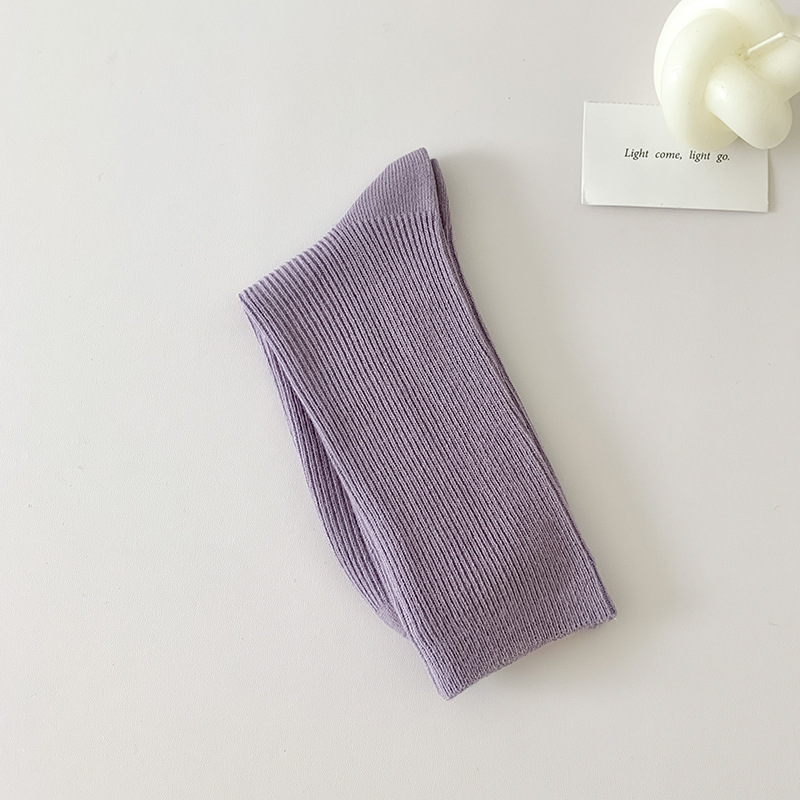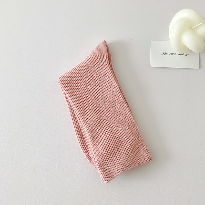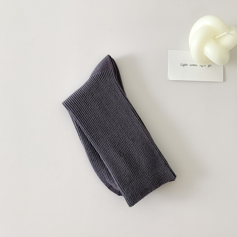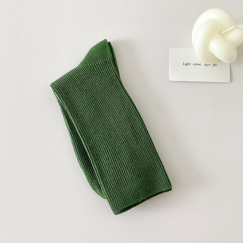 가을 겨울 신상 심플 단색 양말 여성 중목 양말 캔디 컬러 여성용 외출용 컬러풀 더블 니트 얇은 줄무늬 양말