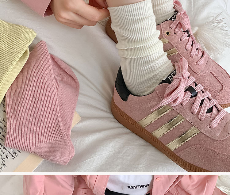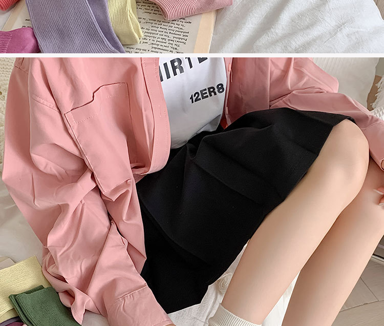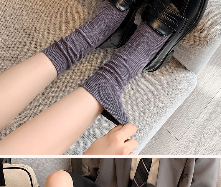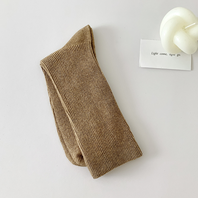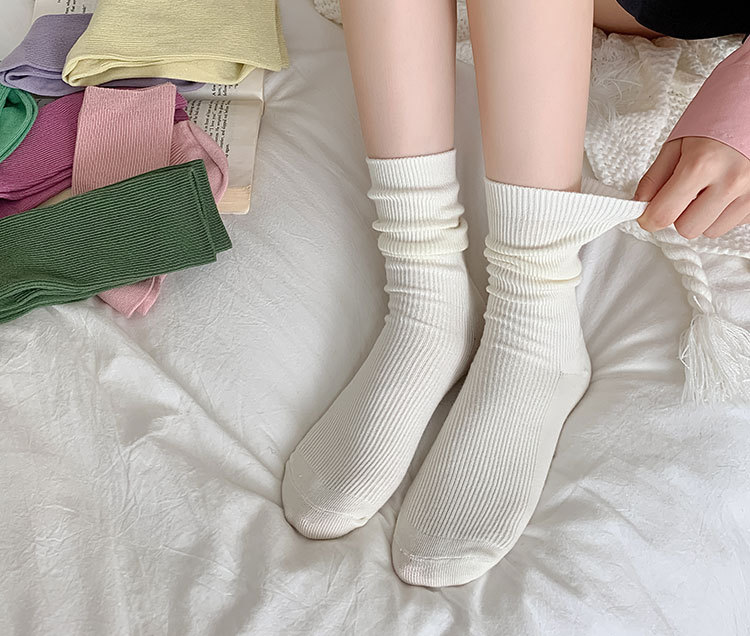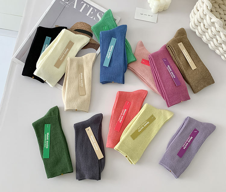 가을 겨울 신상 심플 단색 양말 여성 중목 양말 캔디 컬러 여성용 외출용 컬러풀 더블 니트 얇은 줄무늬 양말스토어 가기