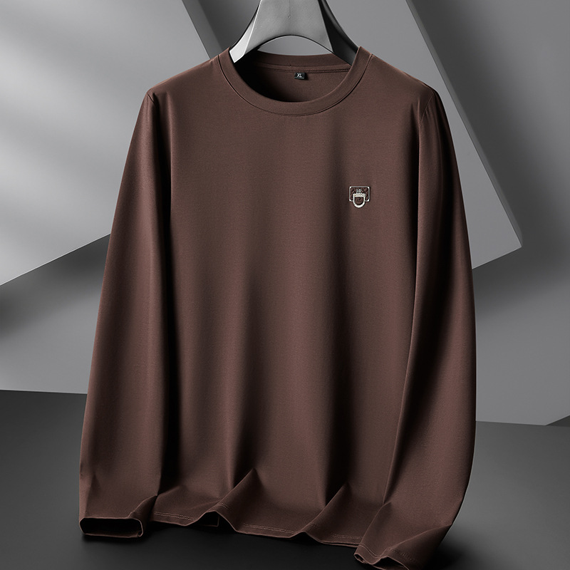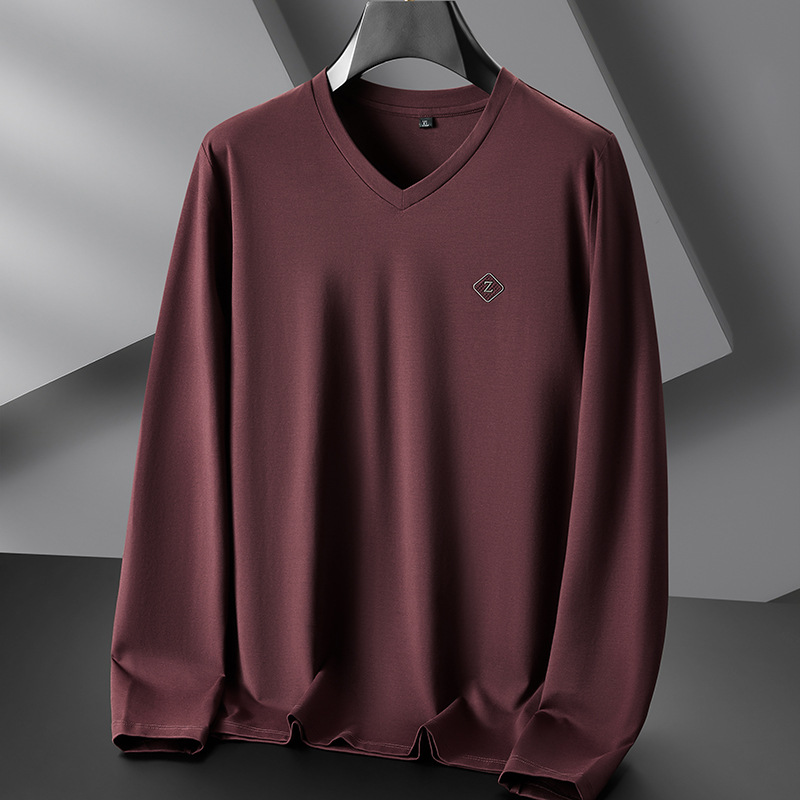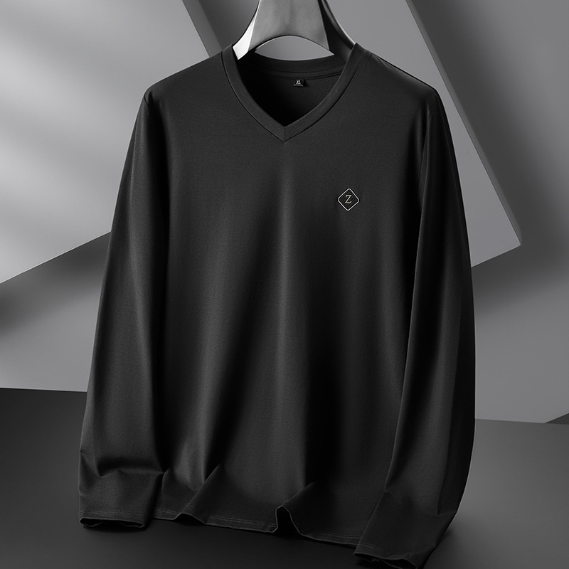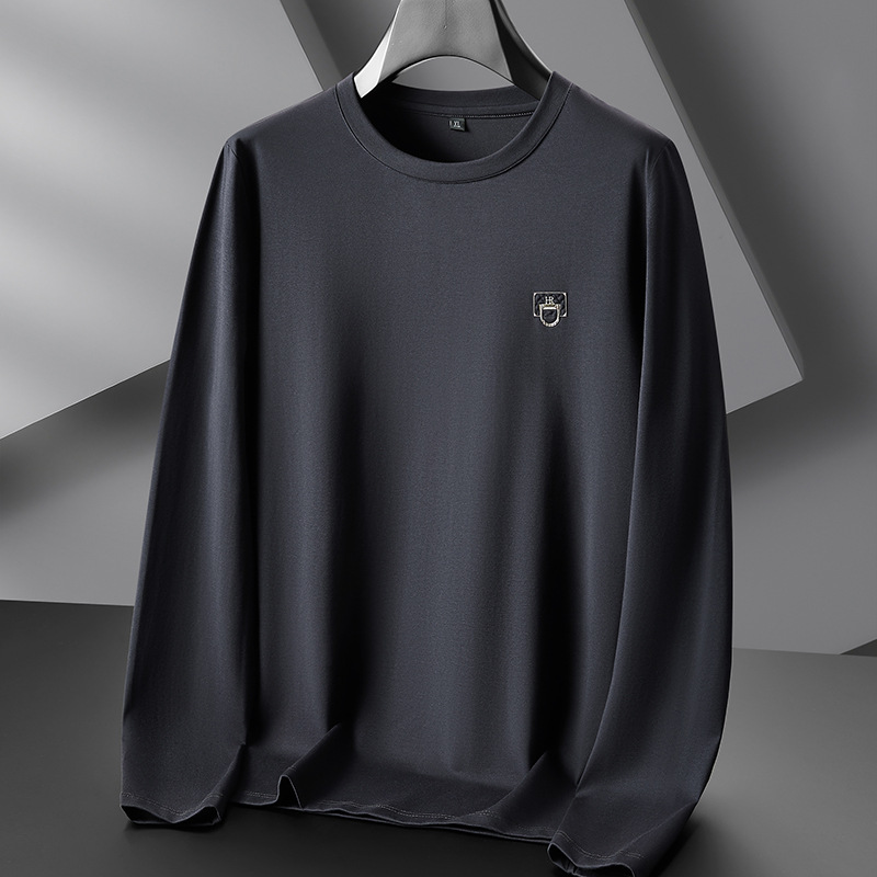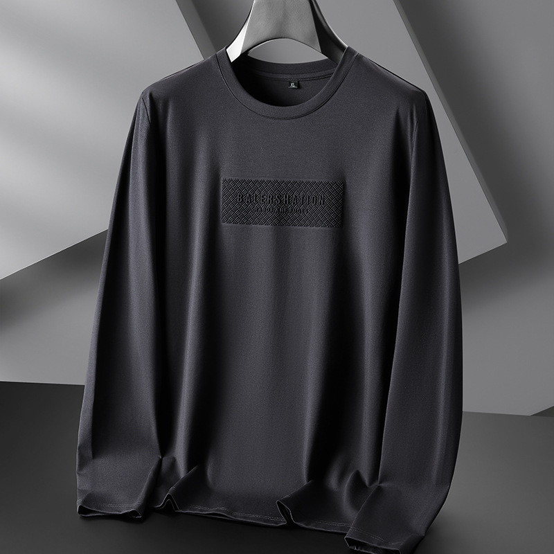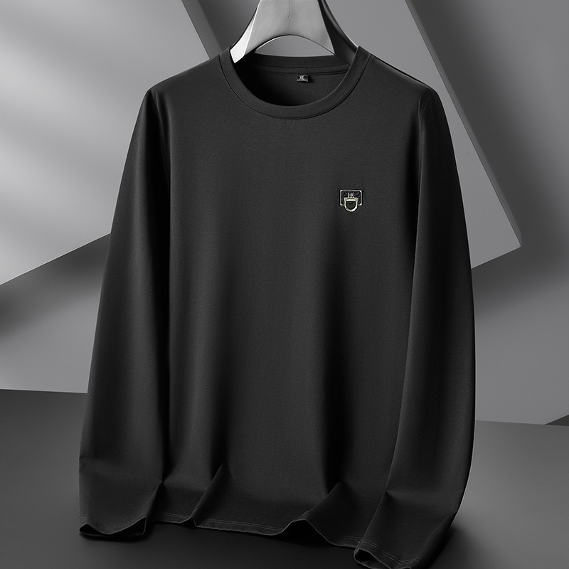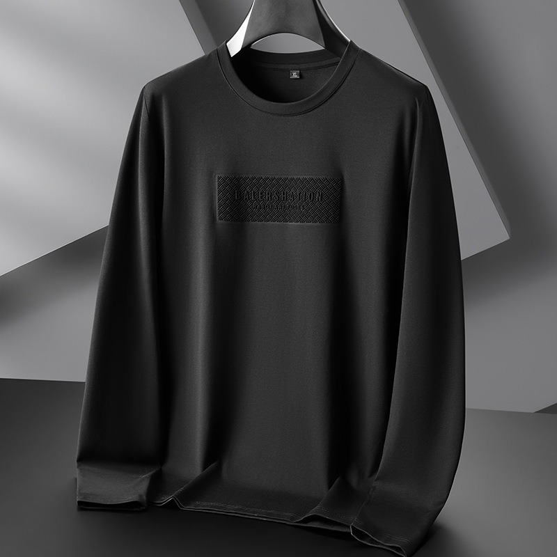 Fat Man 2025 가을 남성 플러스 사이즈 플러스 사이즈 V 넥 라운드 넥 모달 긴팔 티셔츠 라운드 넥 캐주얼 바닥 셔츠