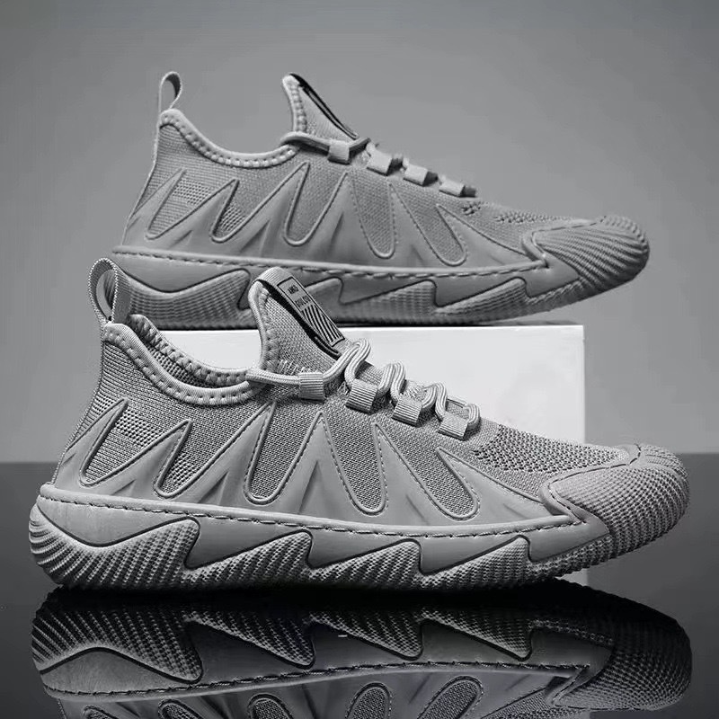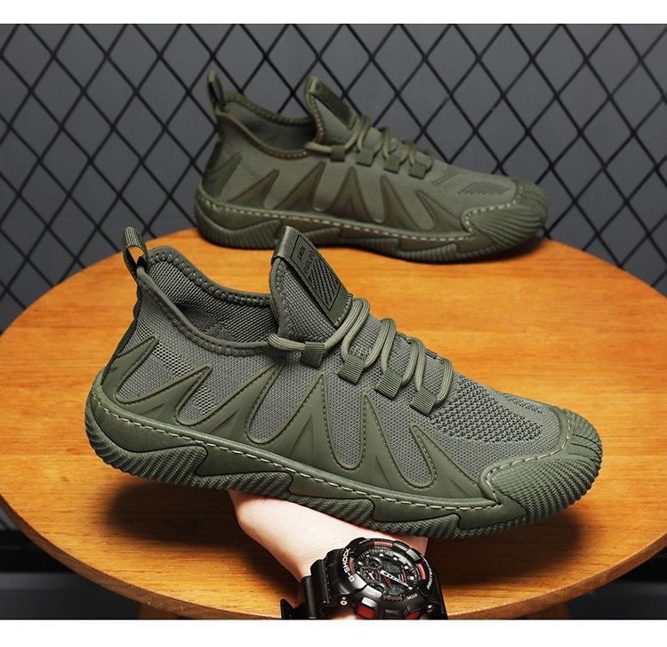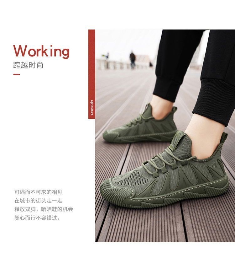 재고 새로운 남성 비행 짠 메쉬 통기성 작업 신발 남성 한국 스타일의 다재다능한 트렌디 한 남성 캐주얼 보드 신발