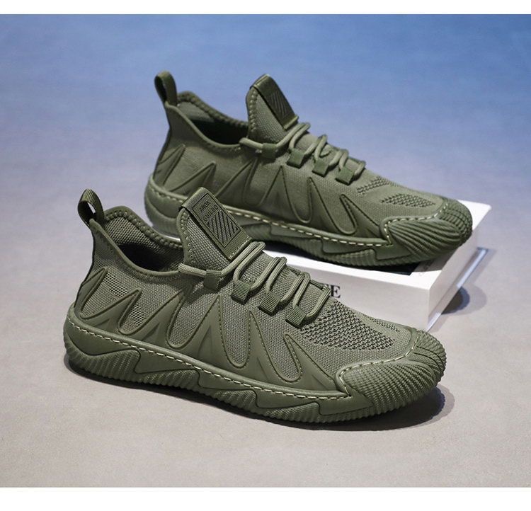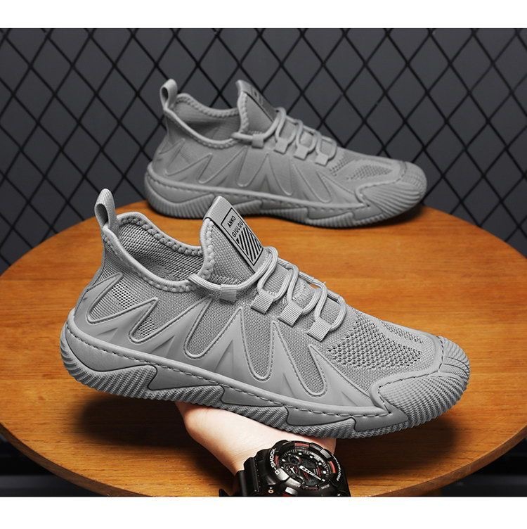 재고 새로운 남성 비행 짠 메쉬 통기성 작업 신발 남성 한국 스타일의 다재다능한 트렌디 한 남성 캐주얼 보드 신발스토어 가기